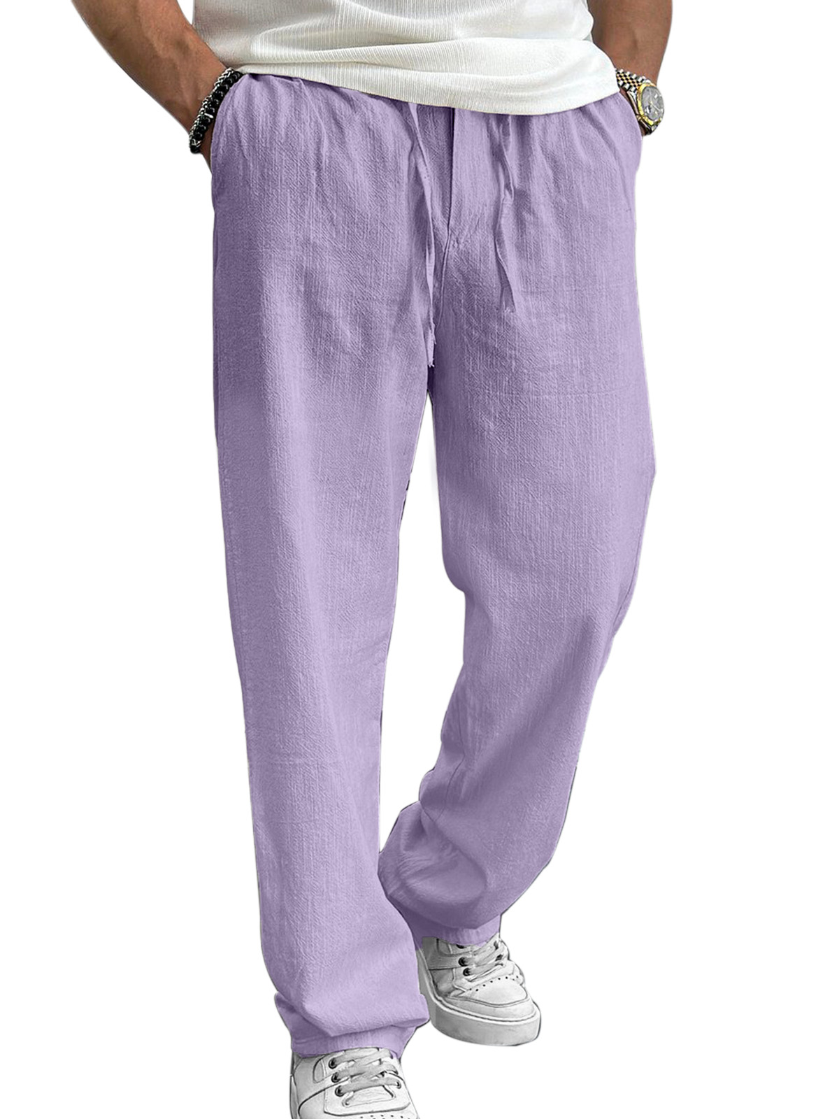 Men's Casual And Comfortable Hawaiian Solid Color Loose Trousers