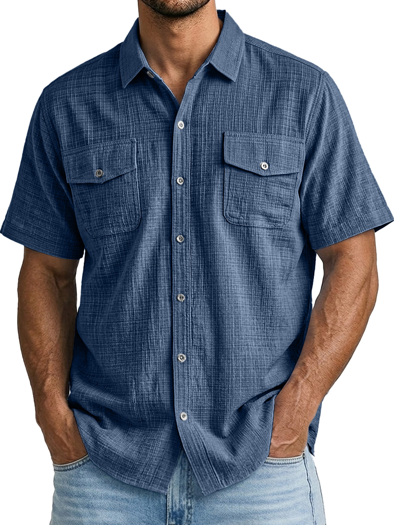 Men's Casual Bamboo-Style Linen Multi-Pocket Work Shirt