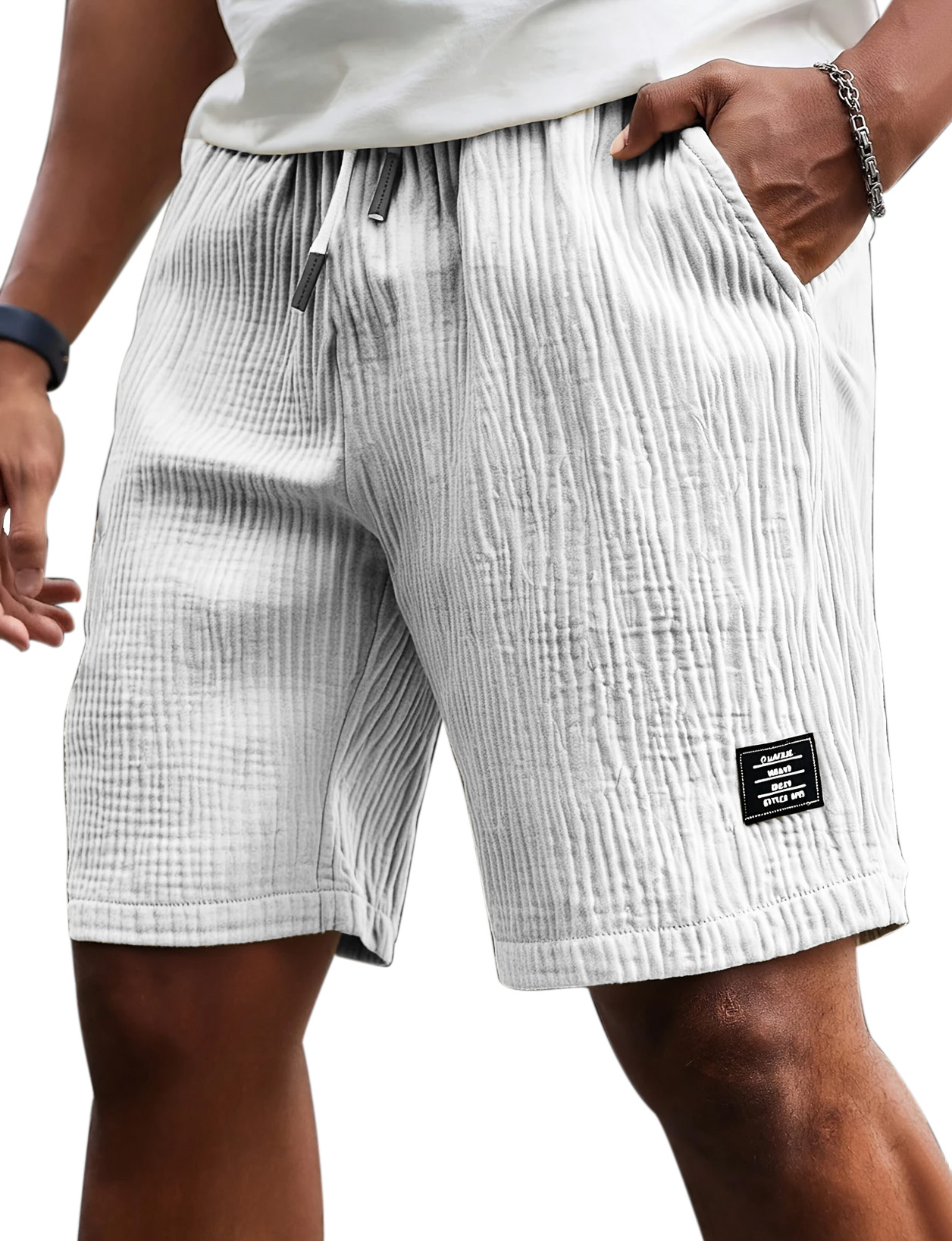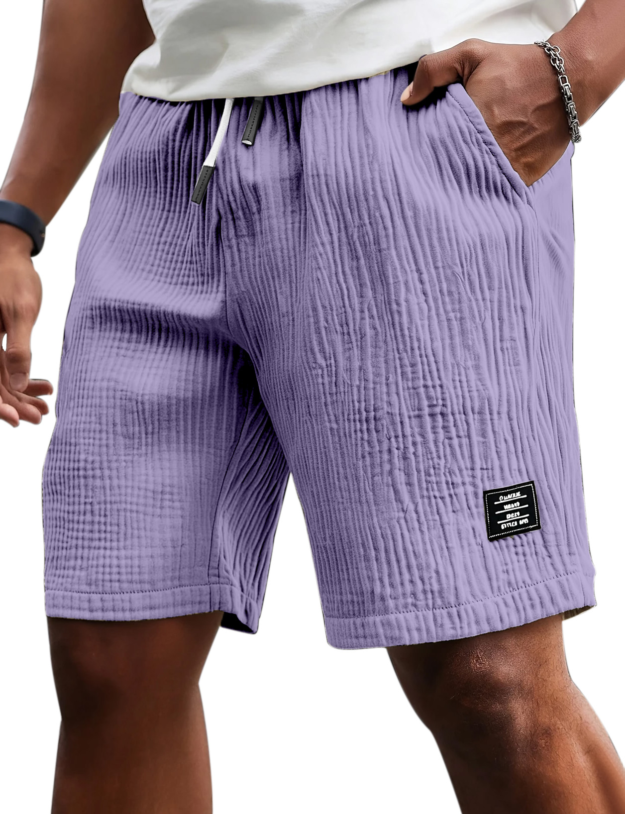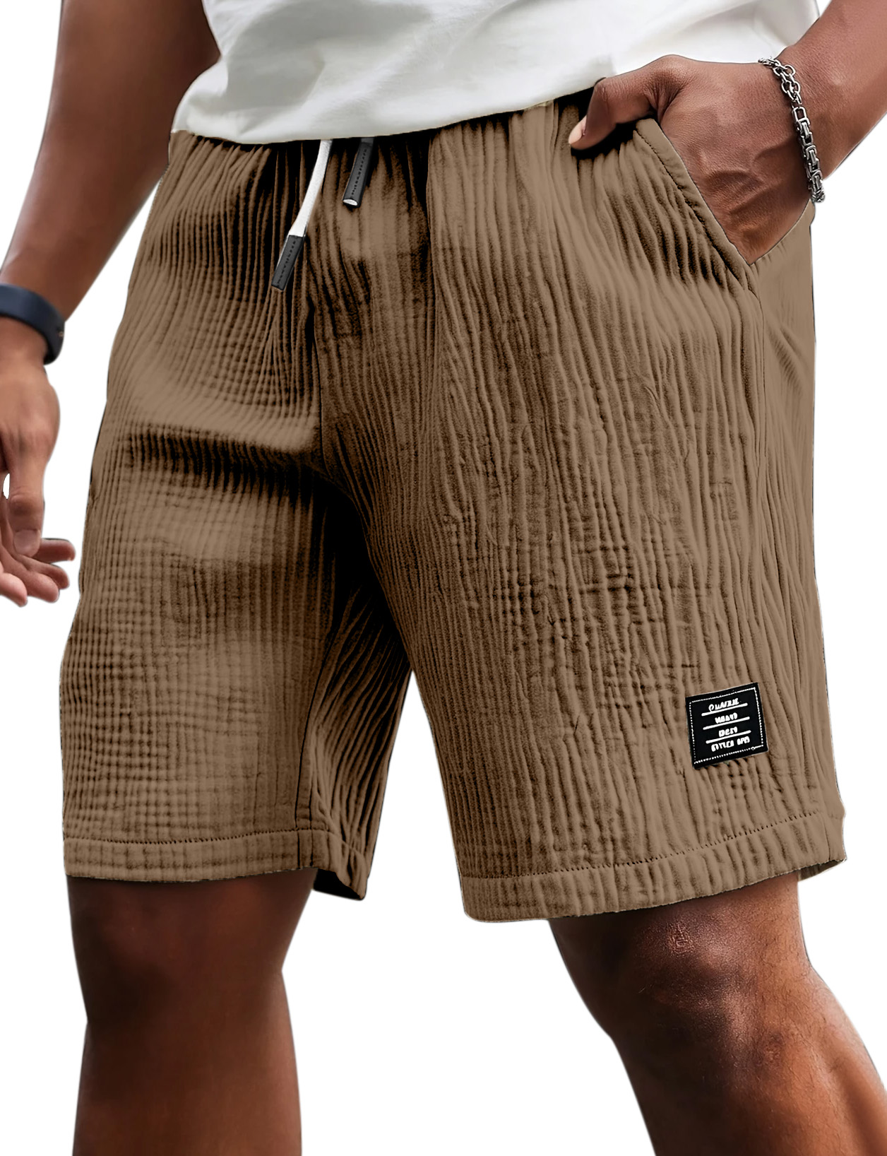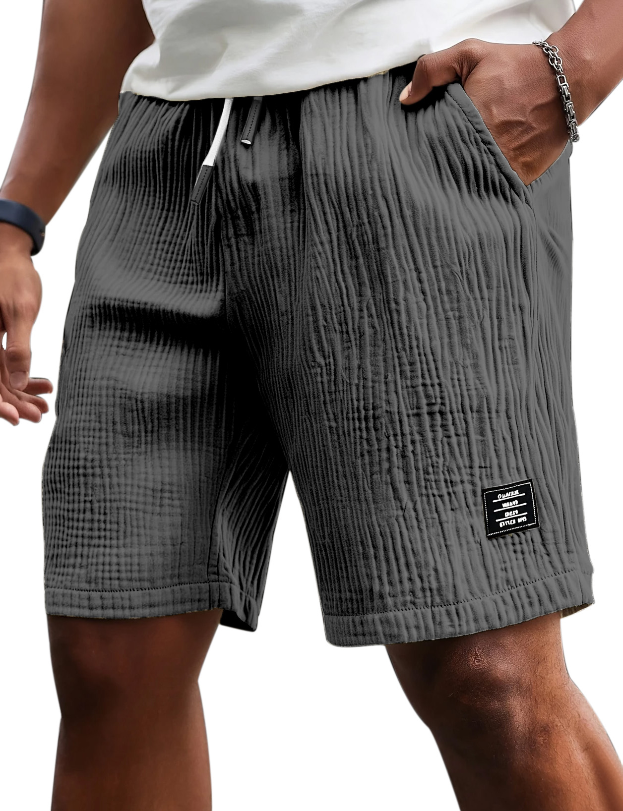Men's Casual Comfort Pleated Textured Logo Solid Color Shorts