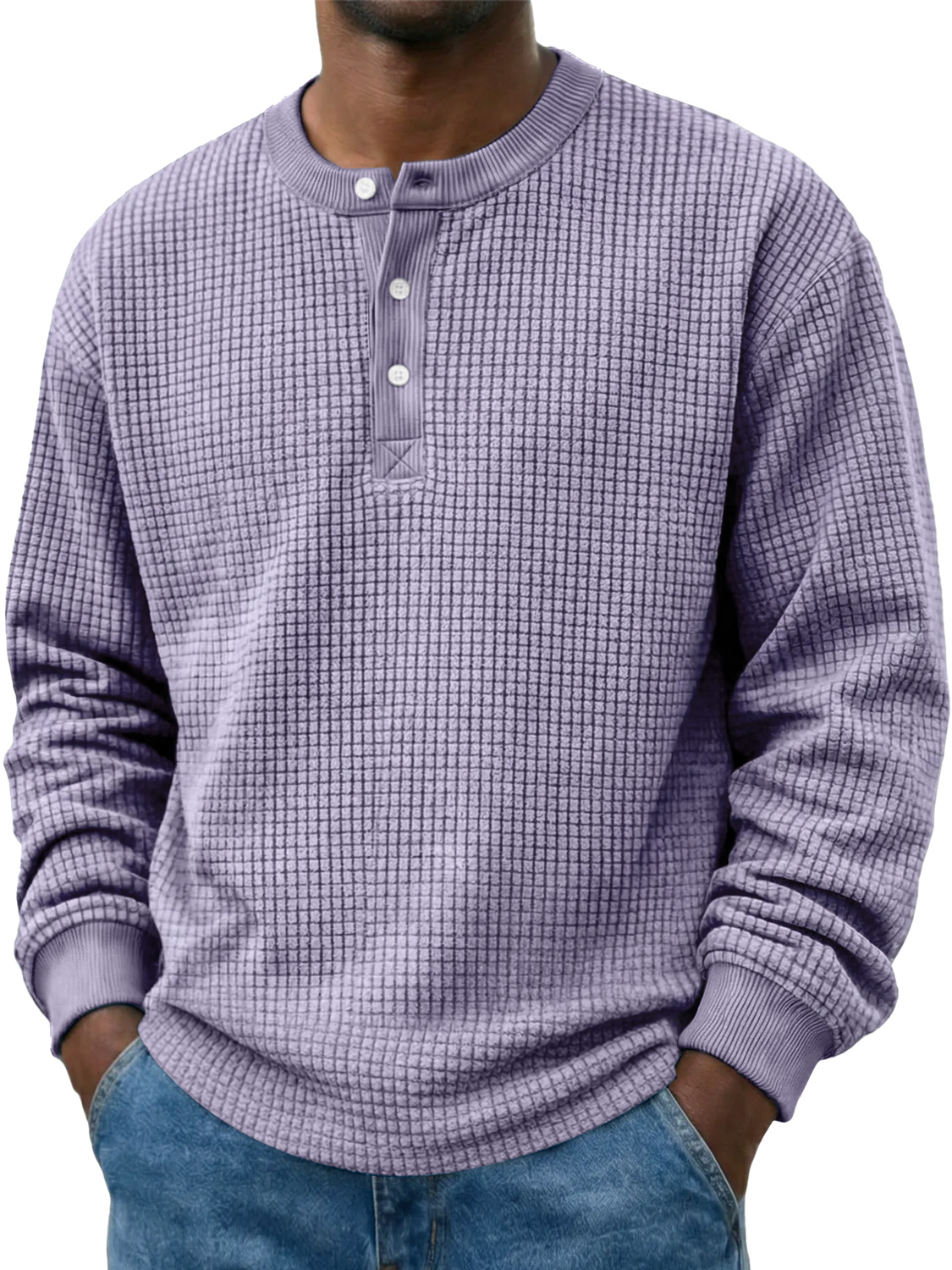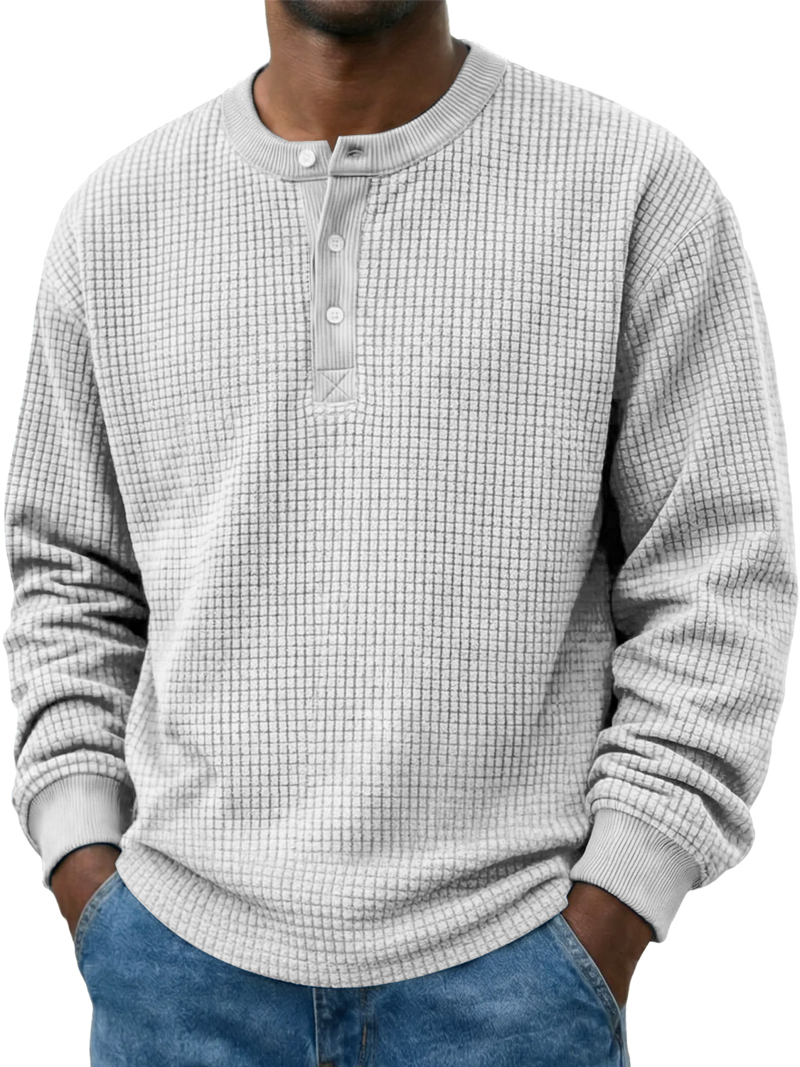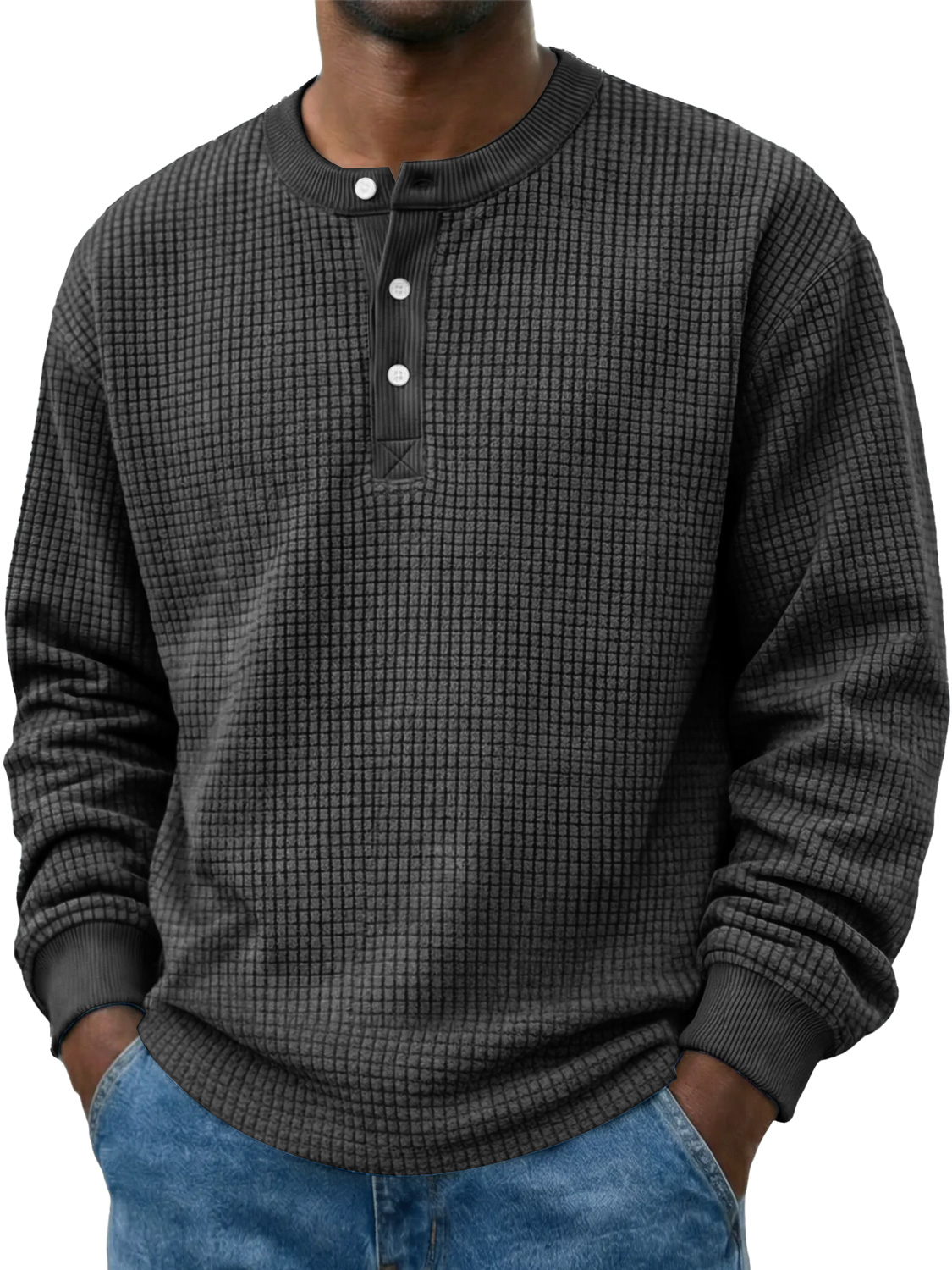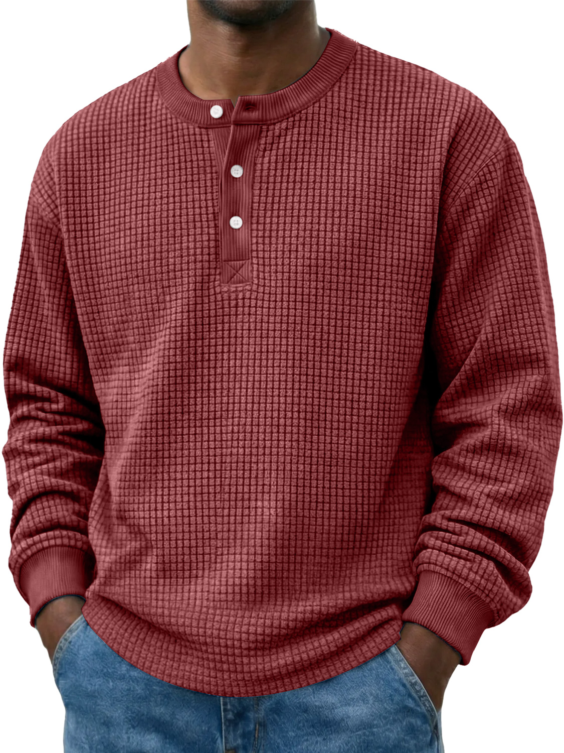 Men's Casual Corduroy Waffle-knit Solid Color Long-sleeved Henley Shirt