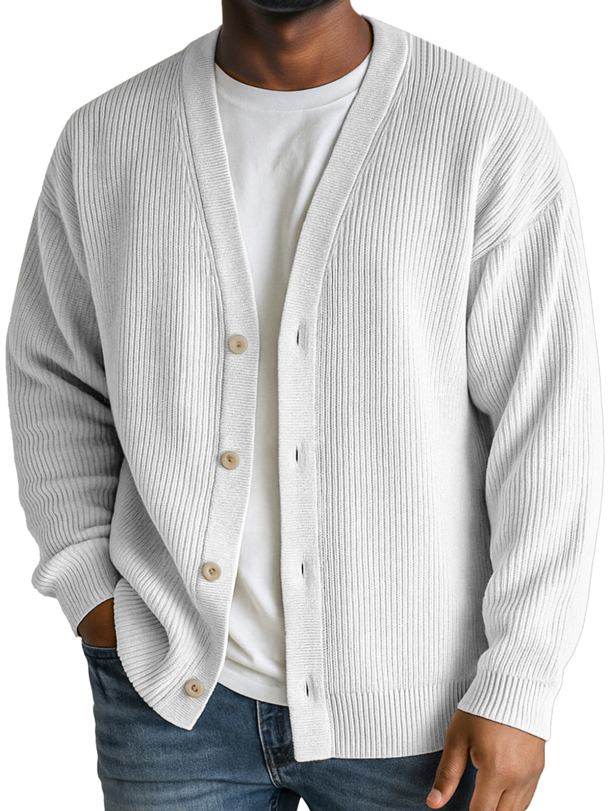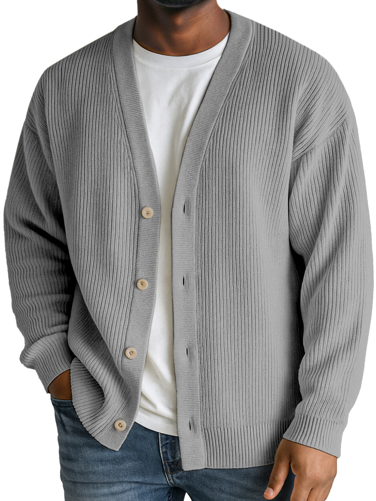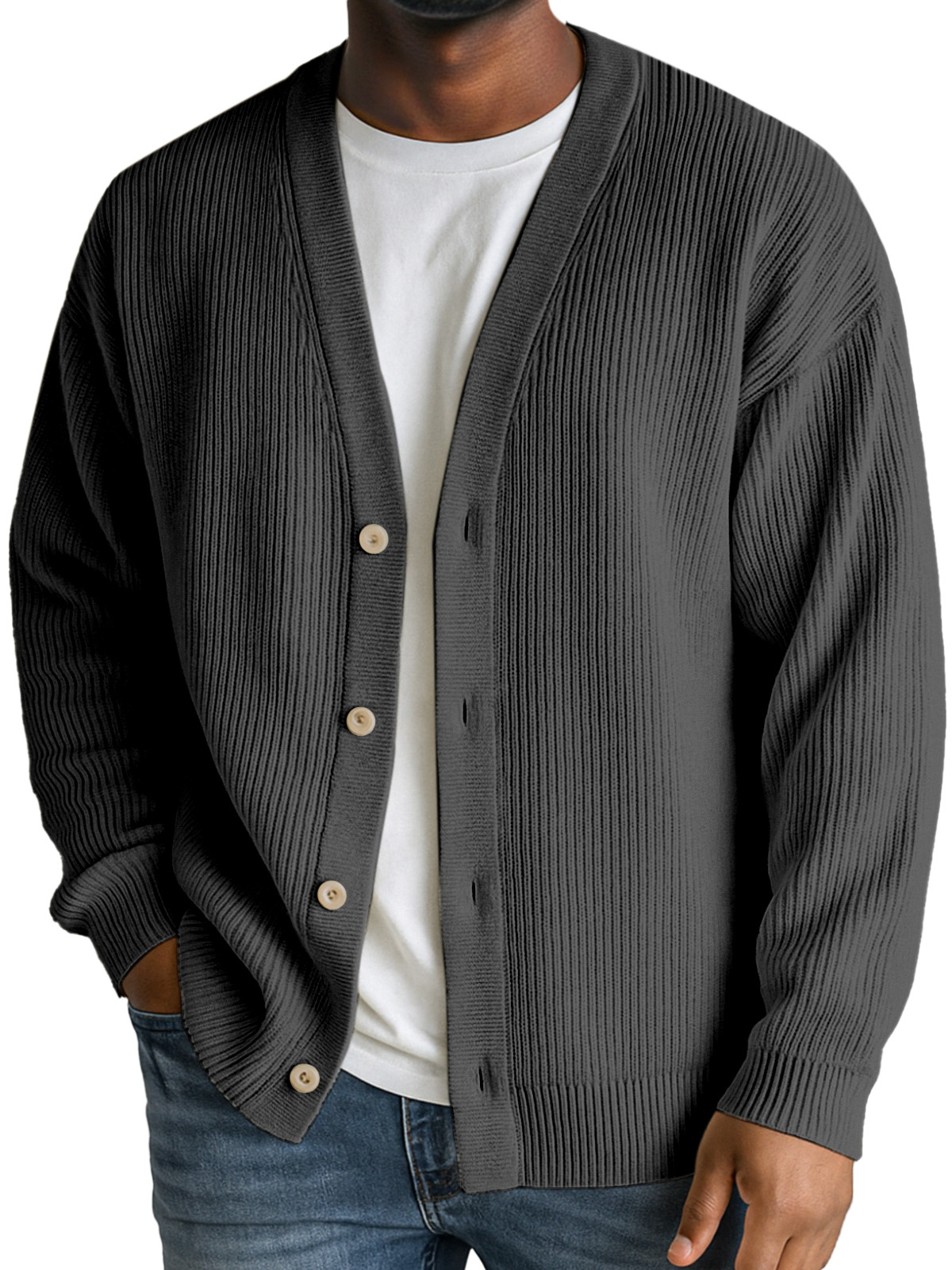 Men's Casual Daily Solid Color Vertical Pit Button V-neck Jacket Cardigan