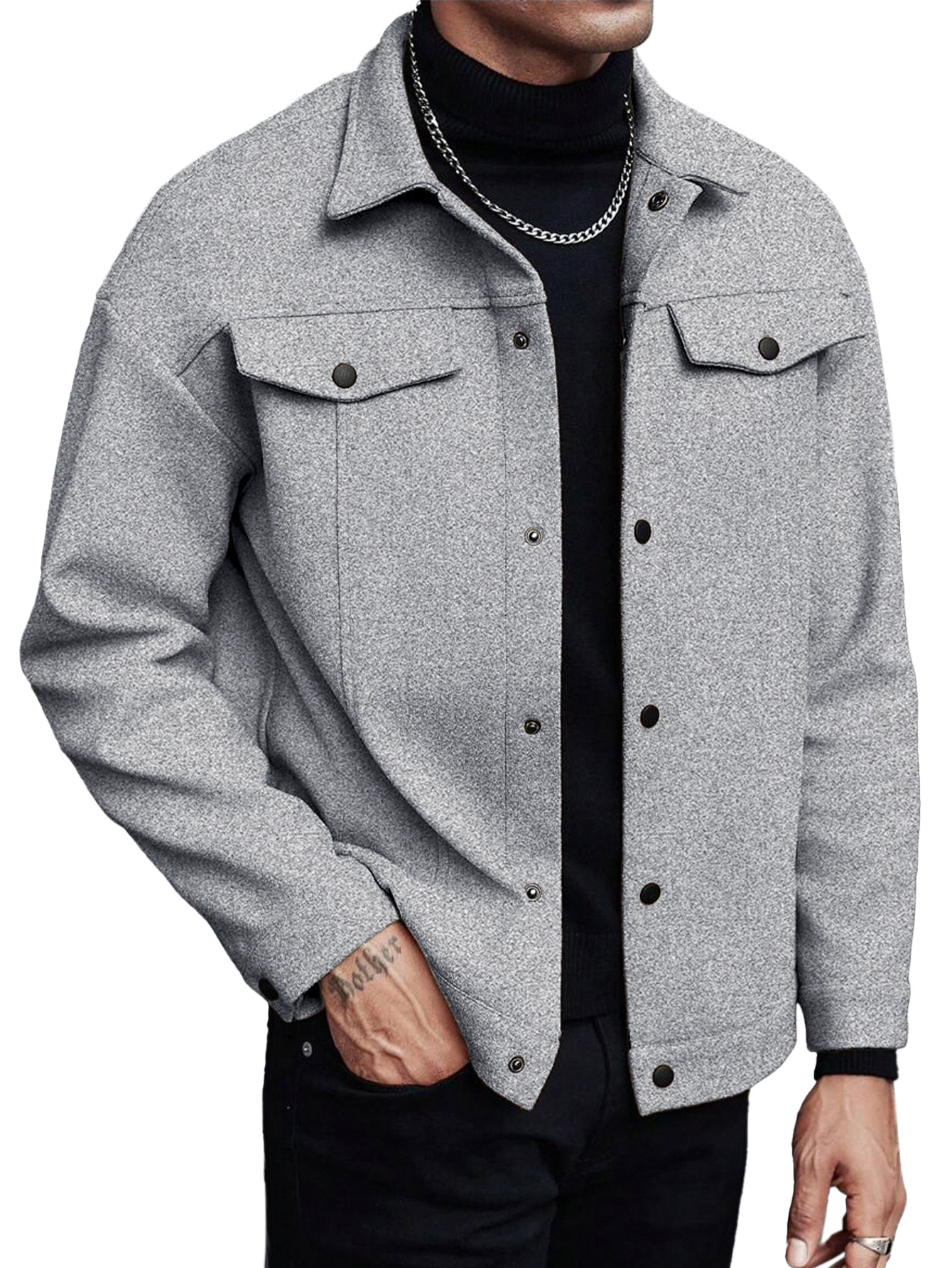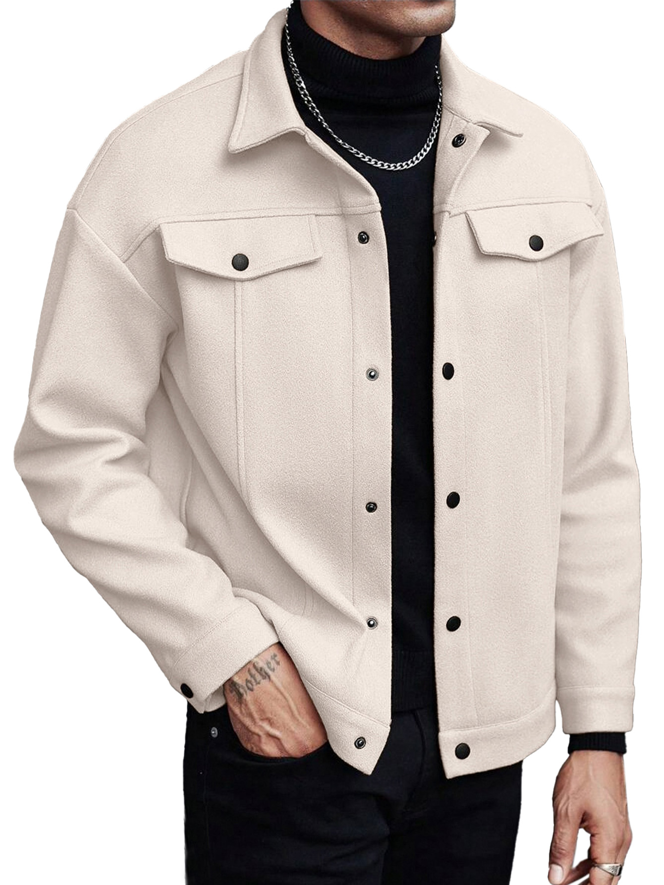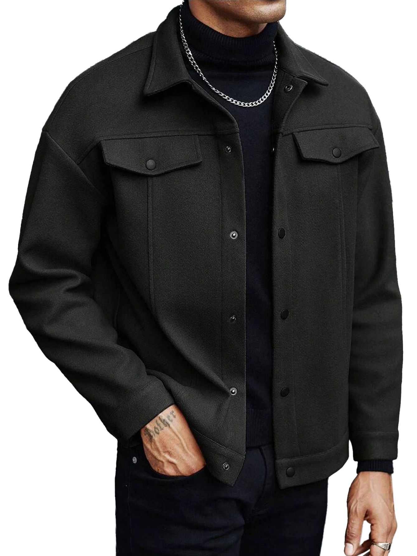Men's Casual Fashion Solid Color Woolen Jacket
