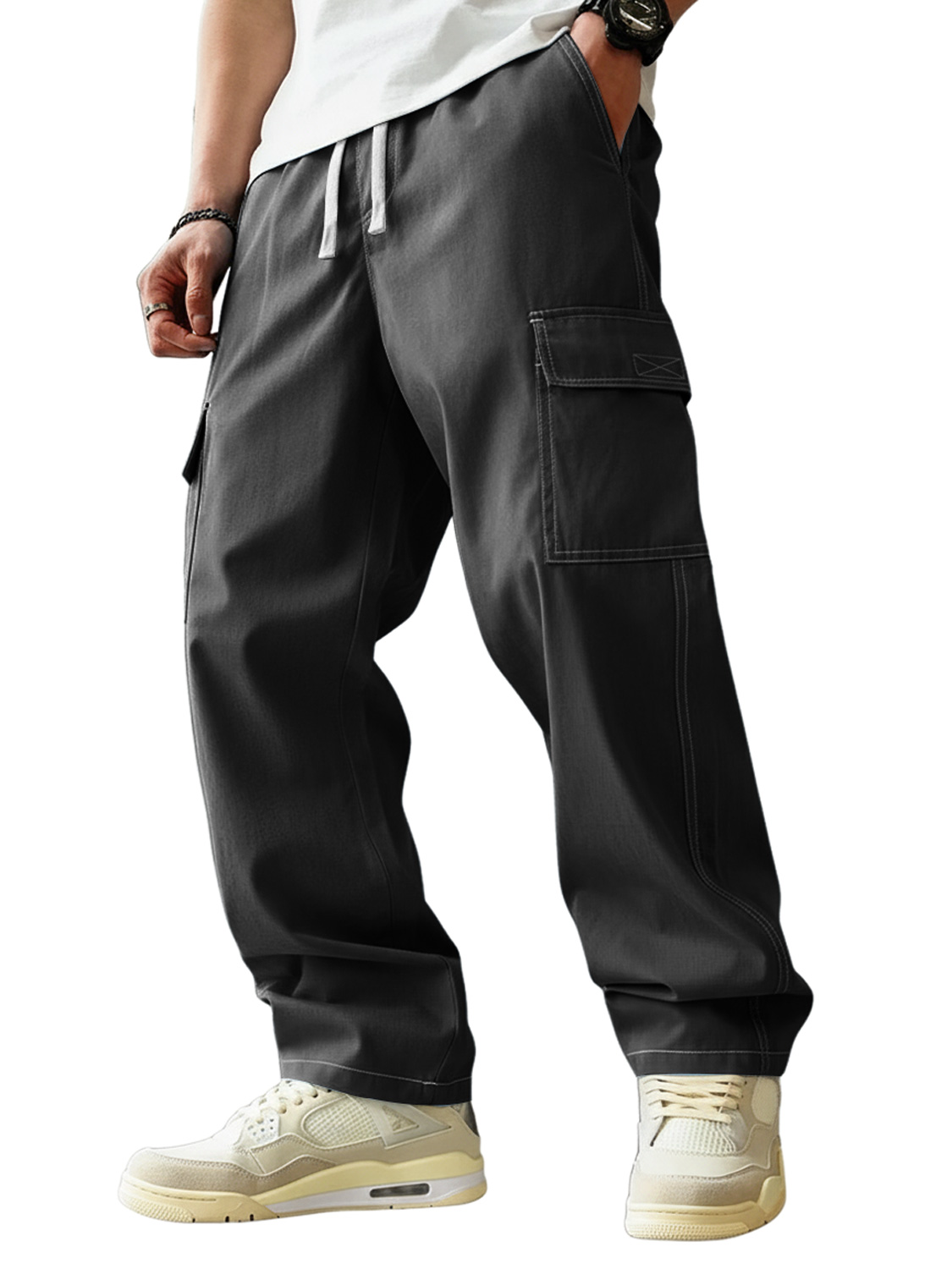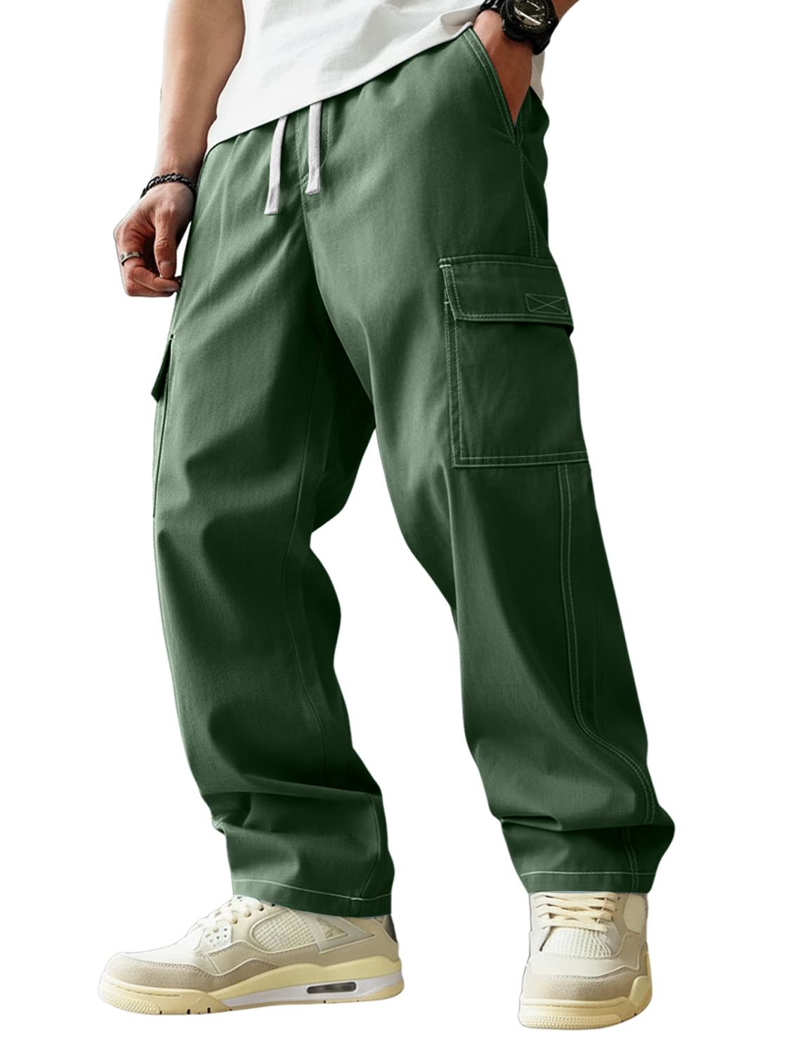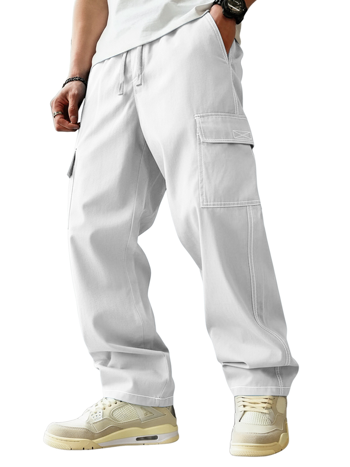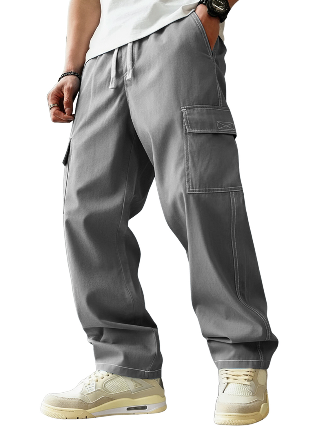 Men's Casual Multi-pocket Elastic Waist Work Trousers
