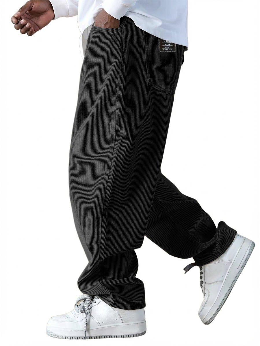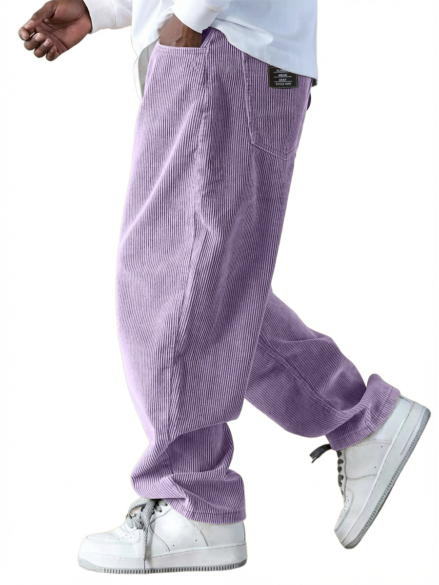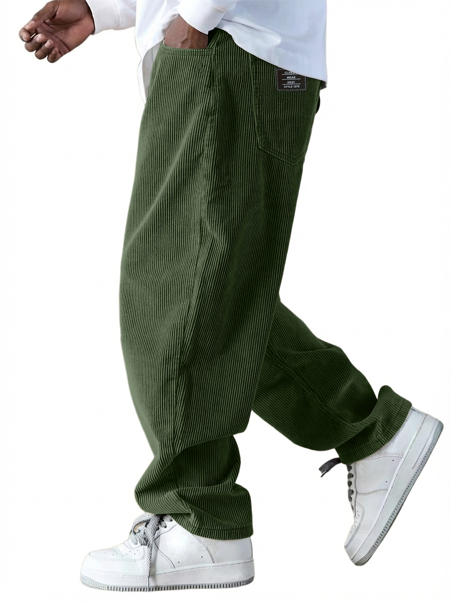 Men's Casual Retro Multi-Pocket Workwear Embroidered Logo Corduroy Pants