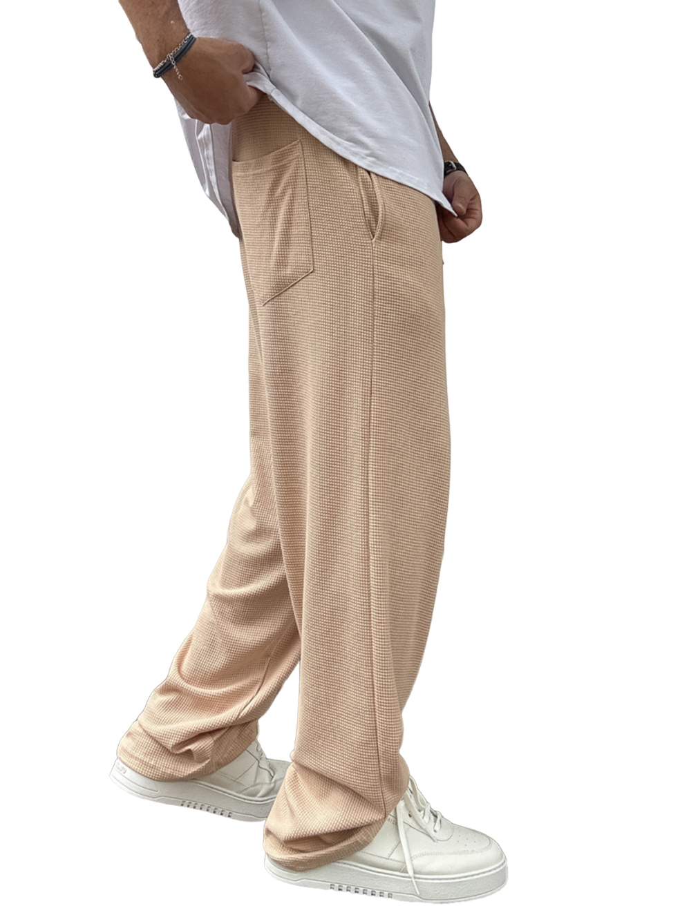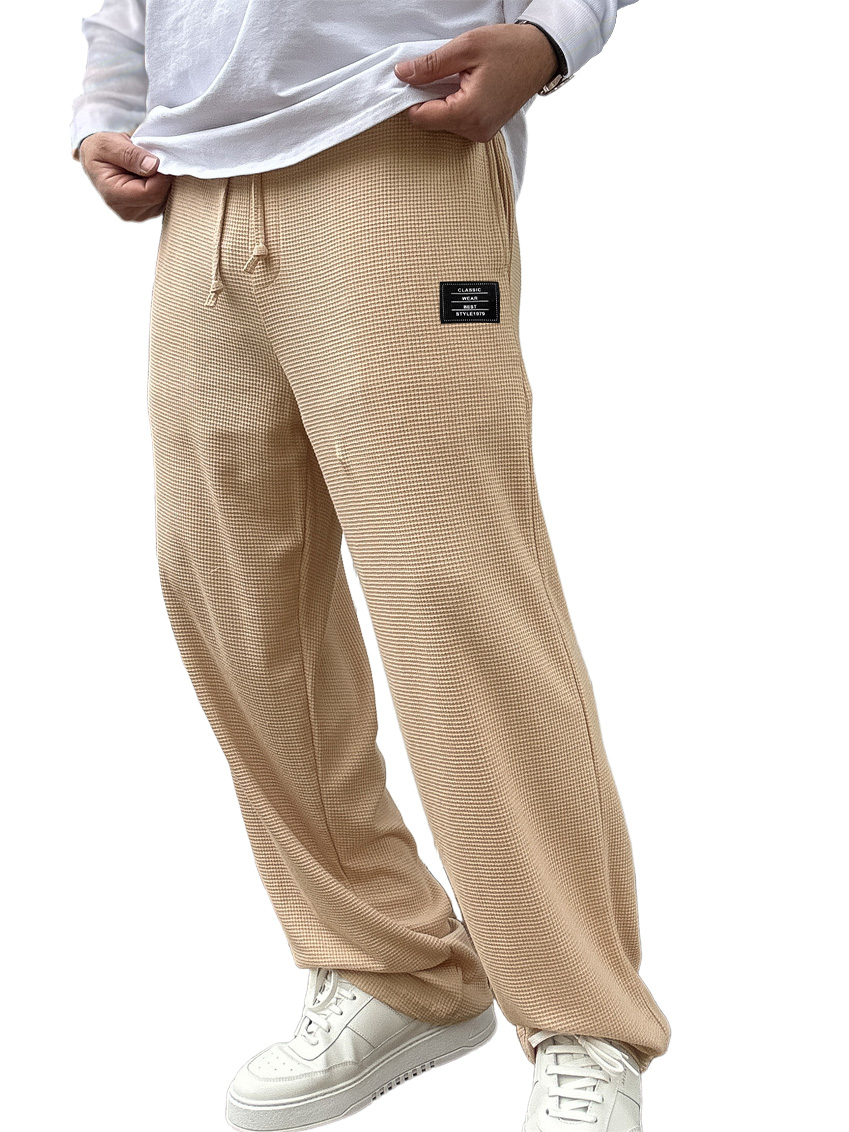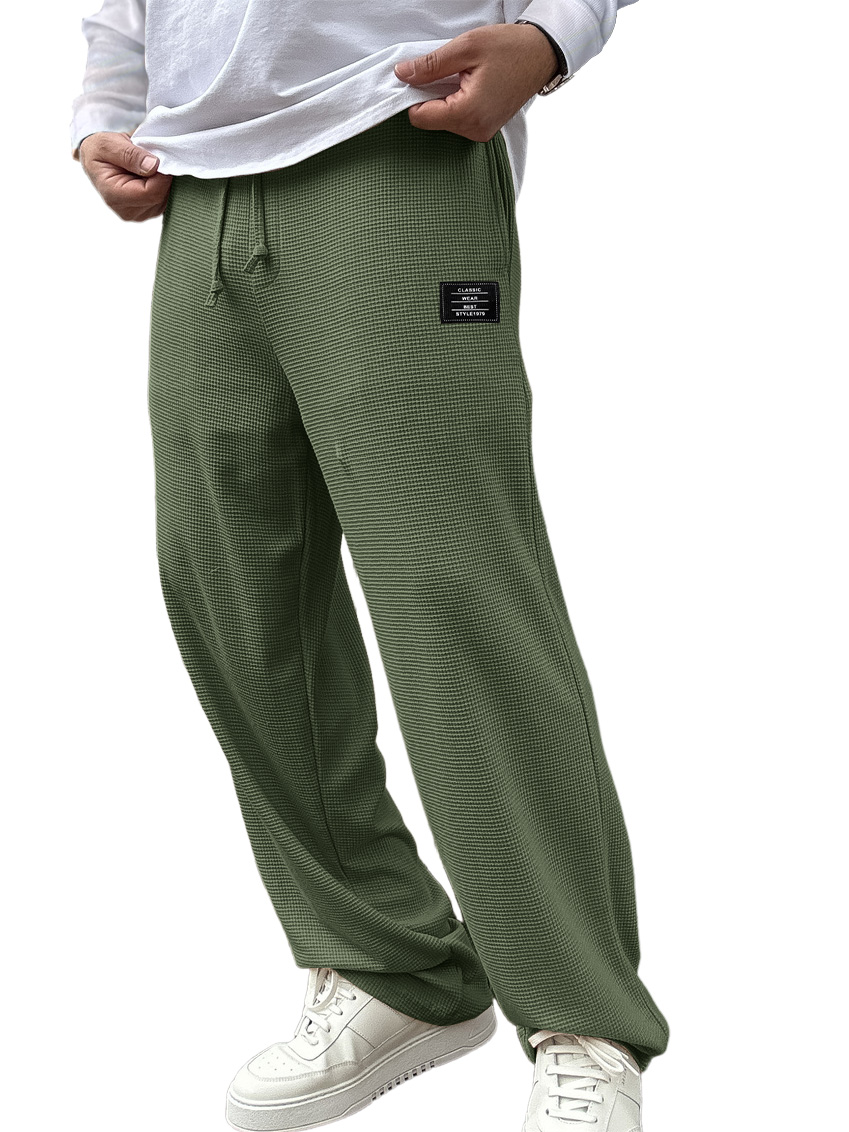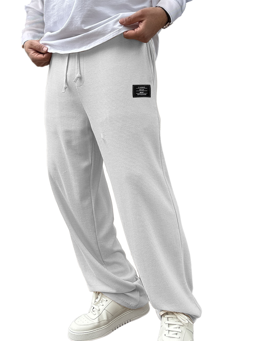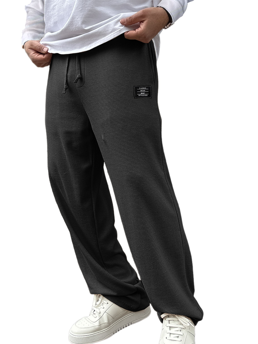Men's Casual Retro Waffle Fabric Logo Trousers