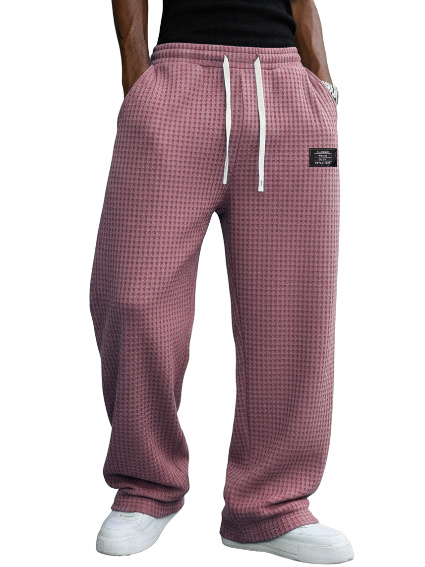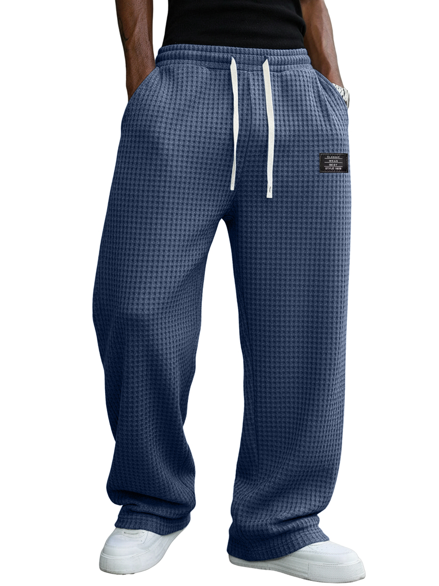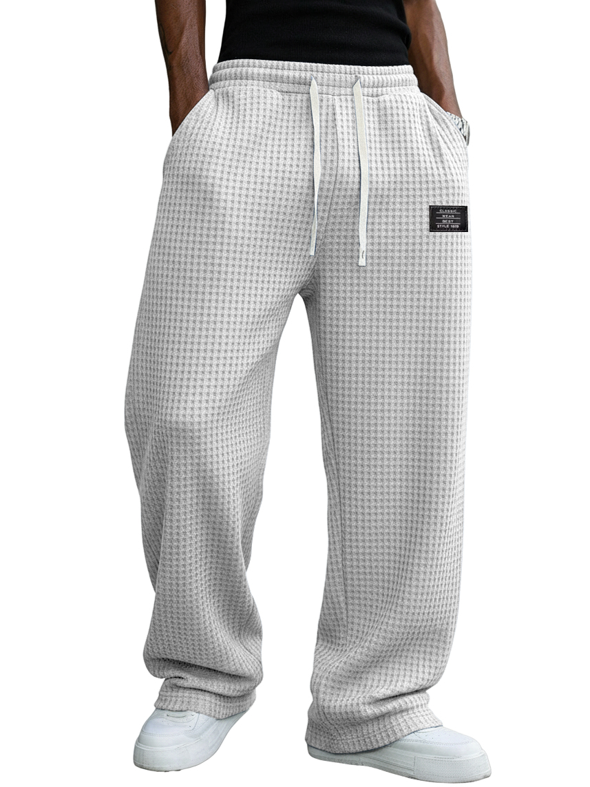 Men's Casual Retro Waffle Fabric Logo Trousers