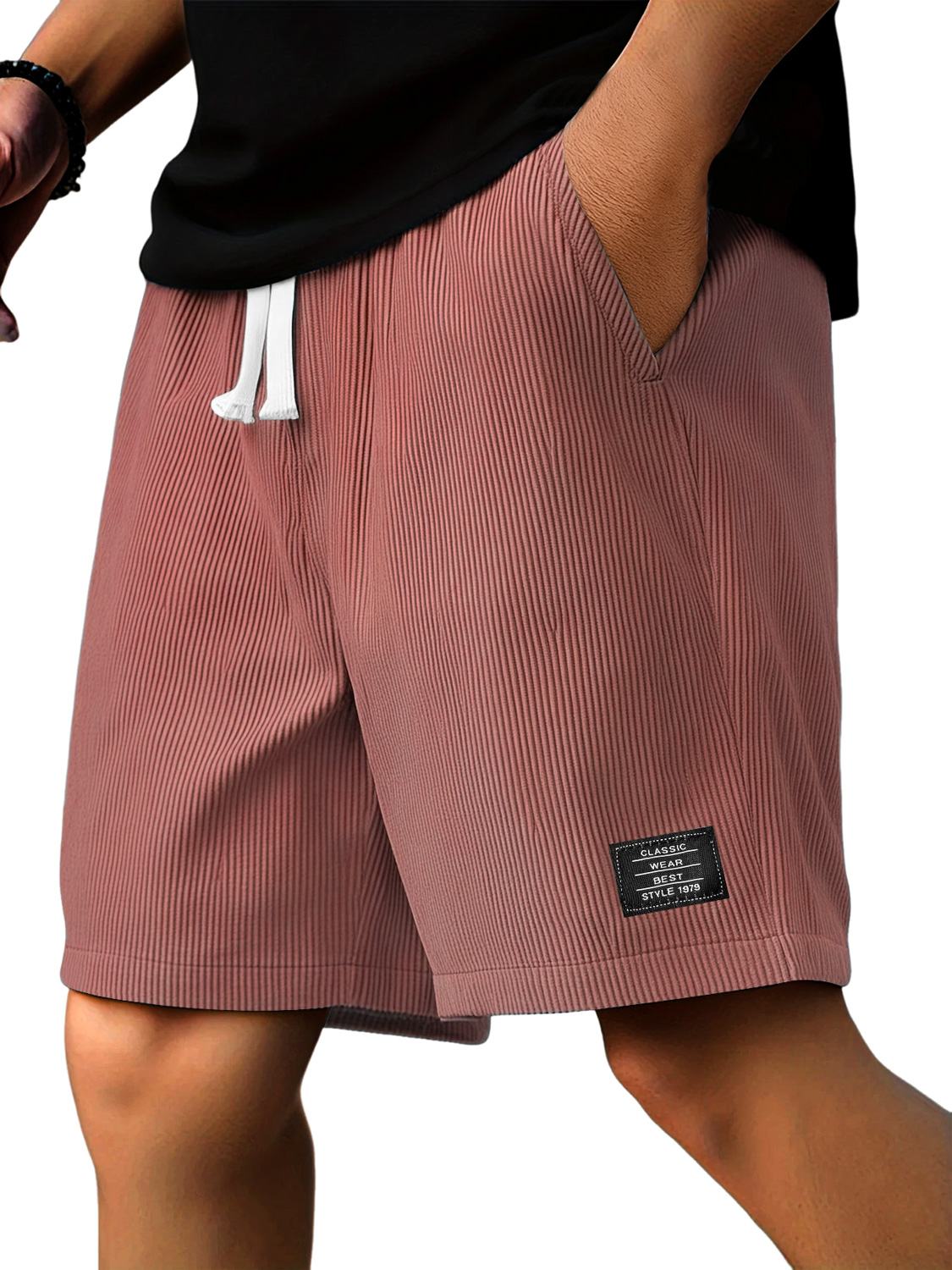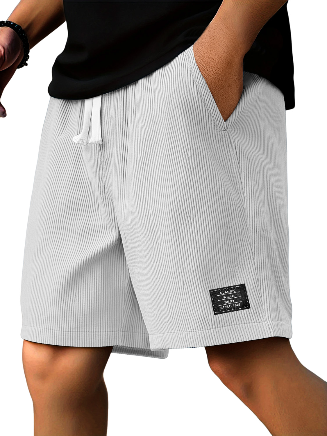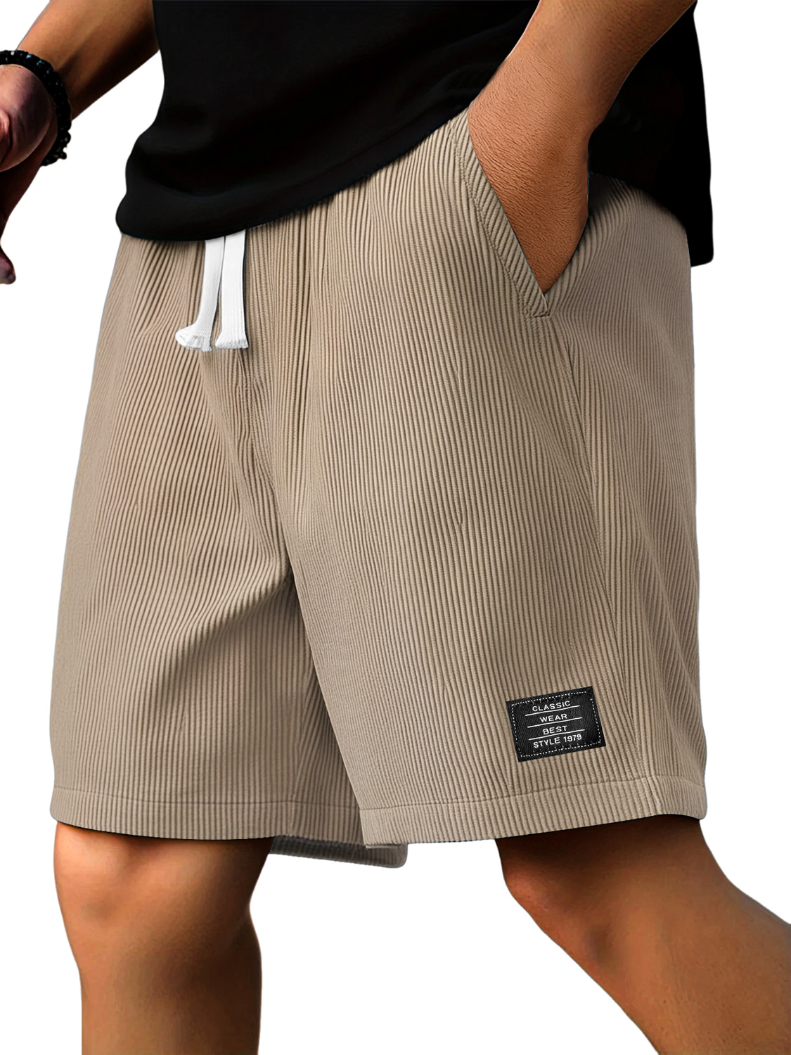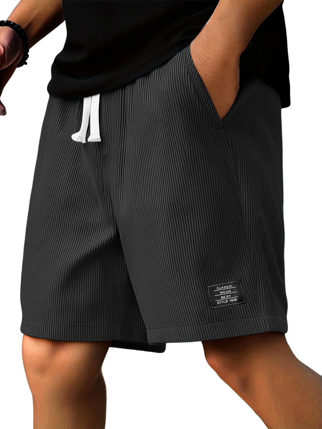 Men's Casual Ribbed Logo Embroidered Solid Color Shorts