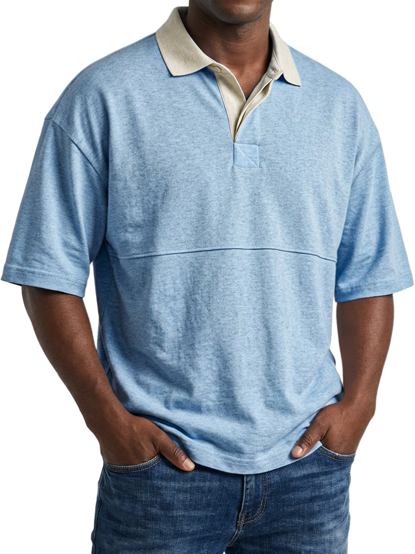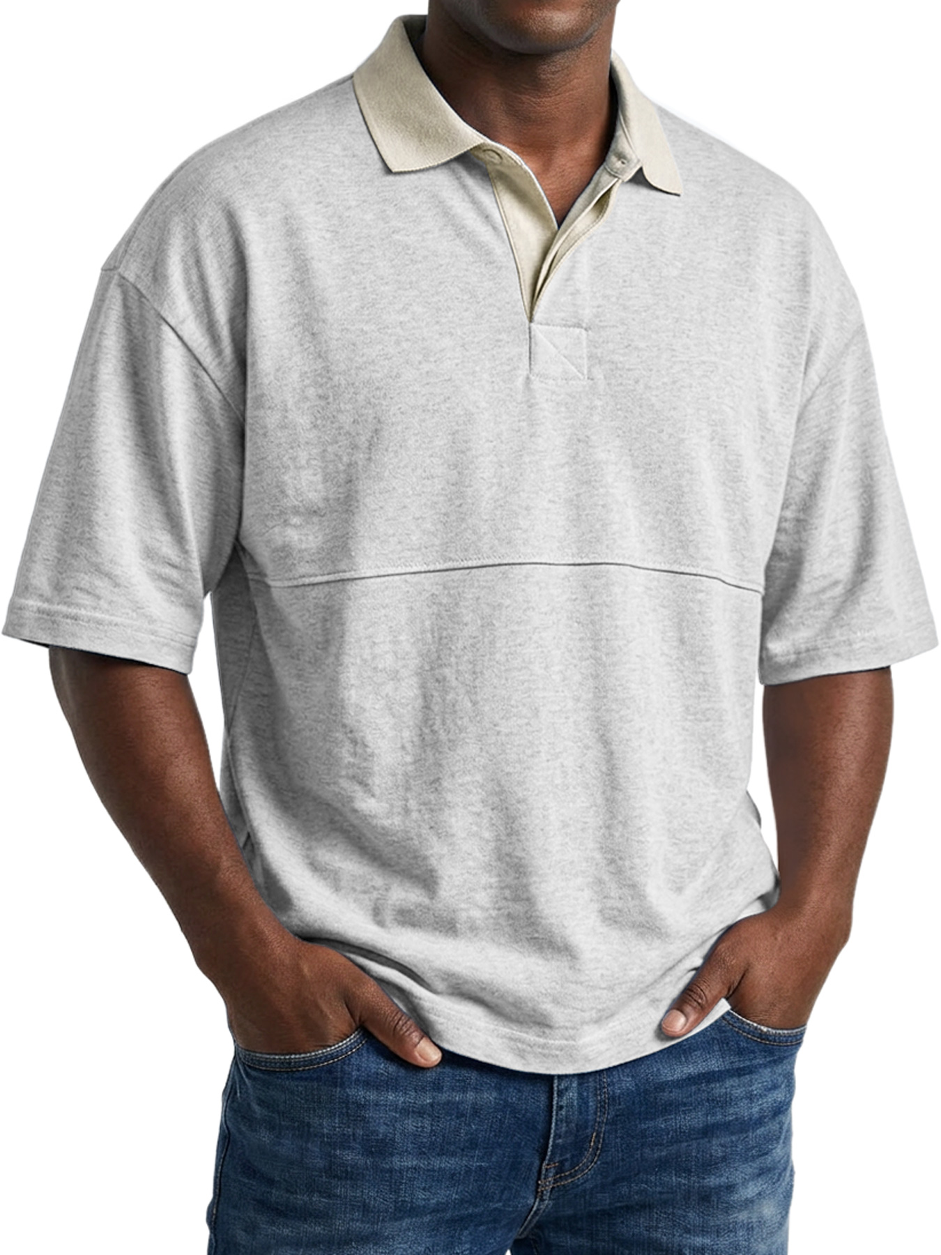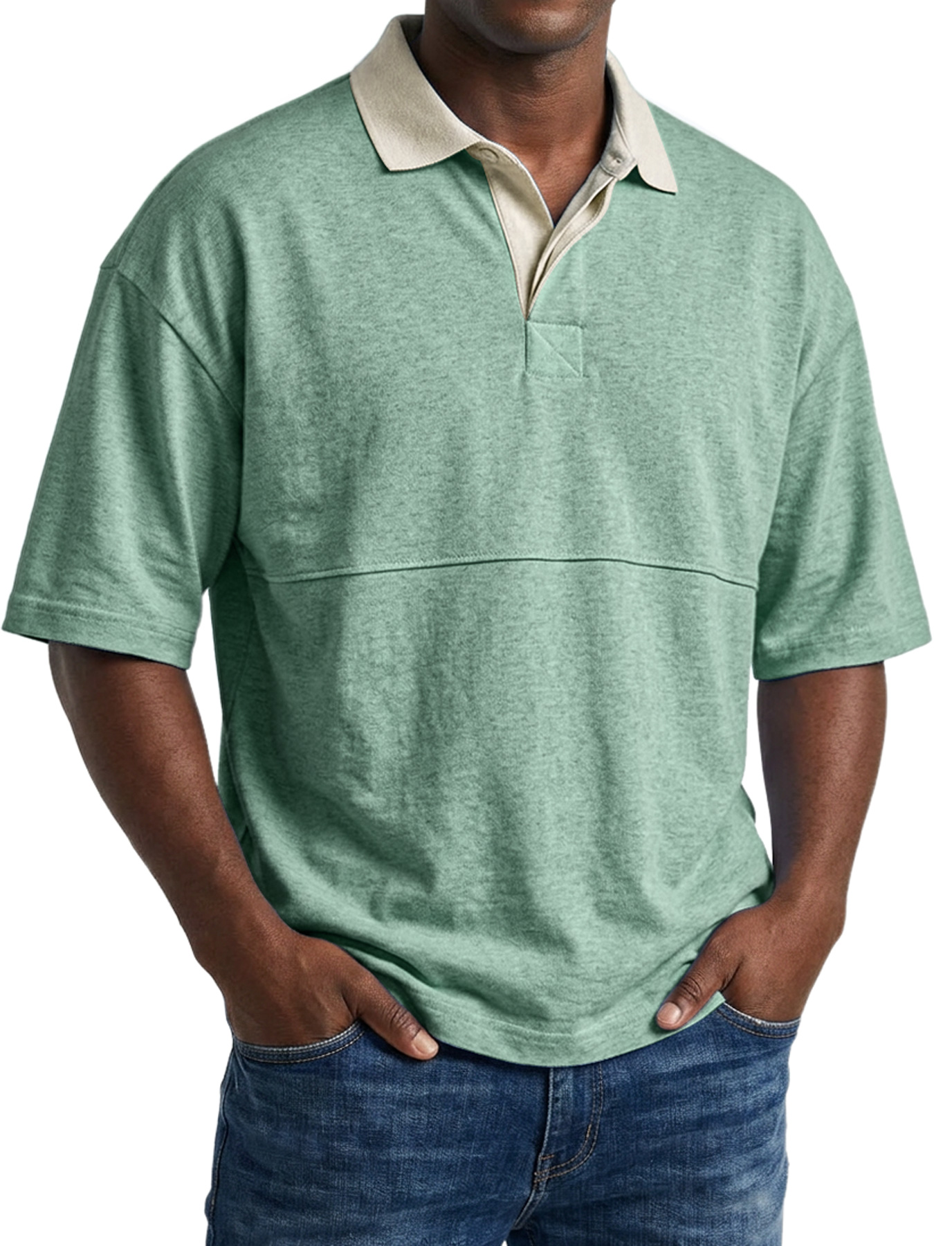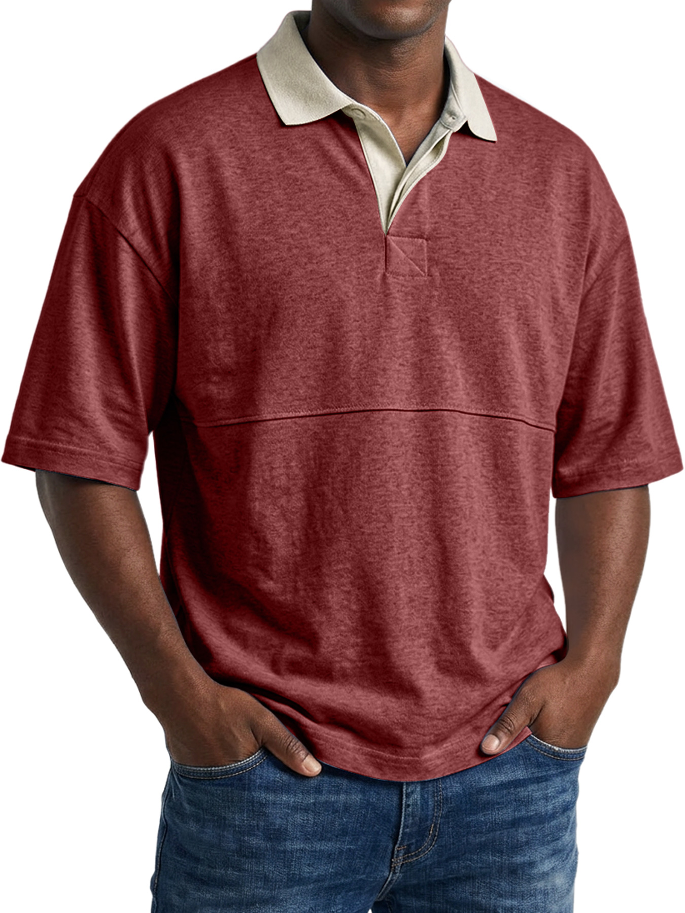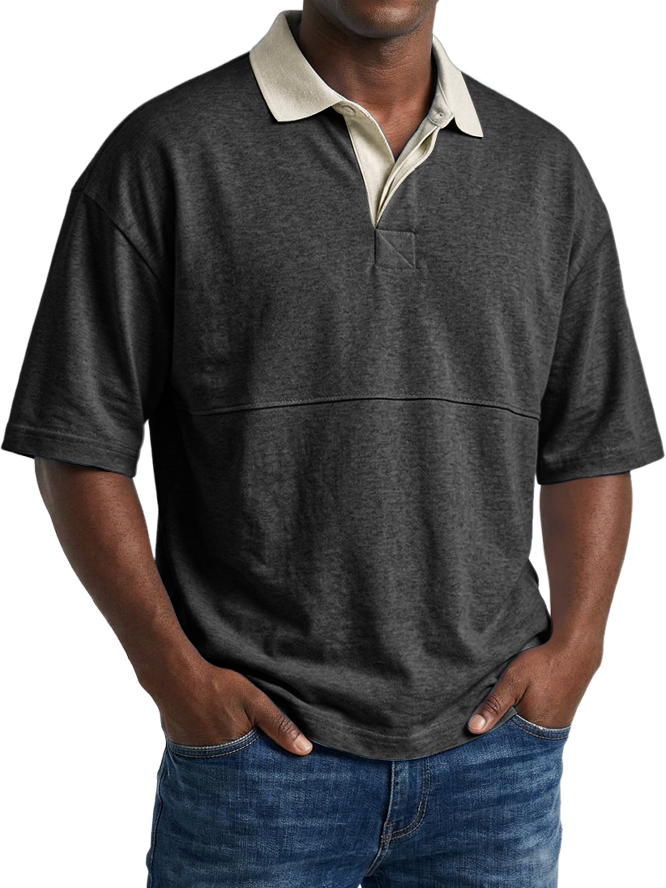 Men's Casual Short-sleeved Polo Shirt With Simple Color-block Design