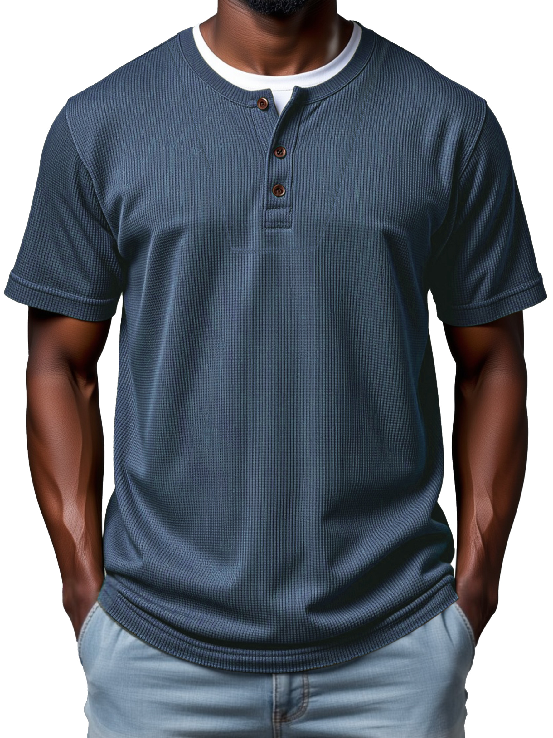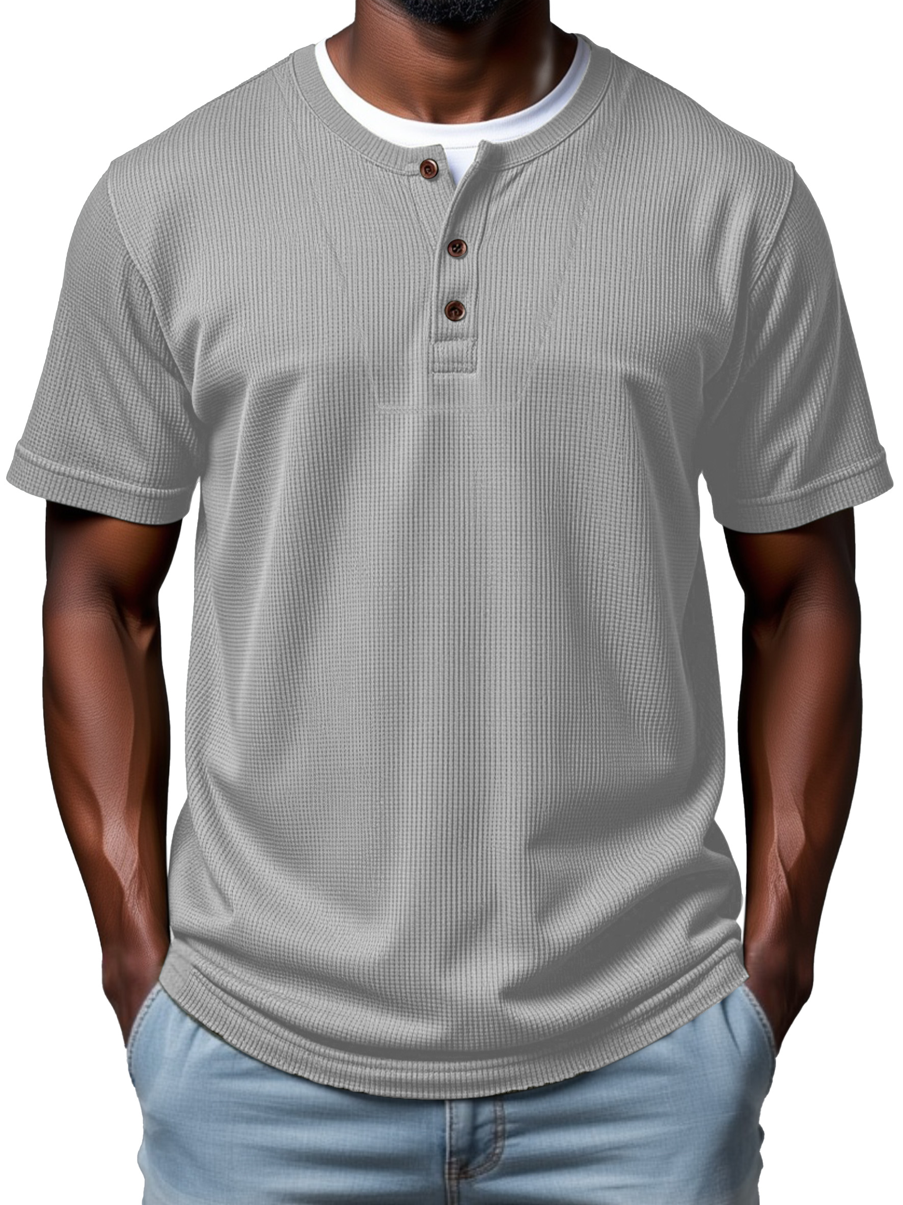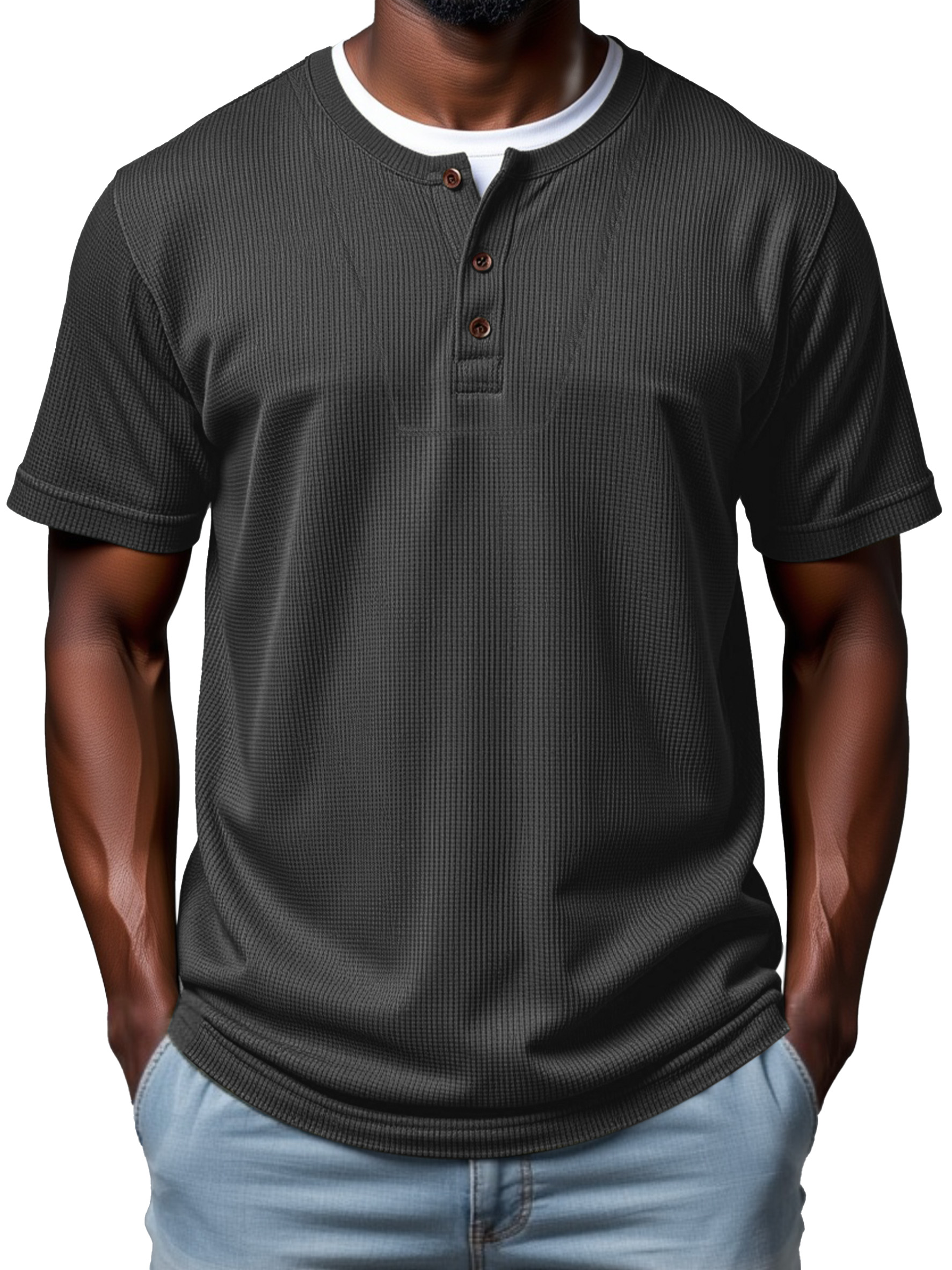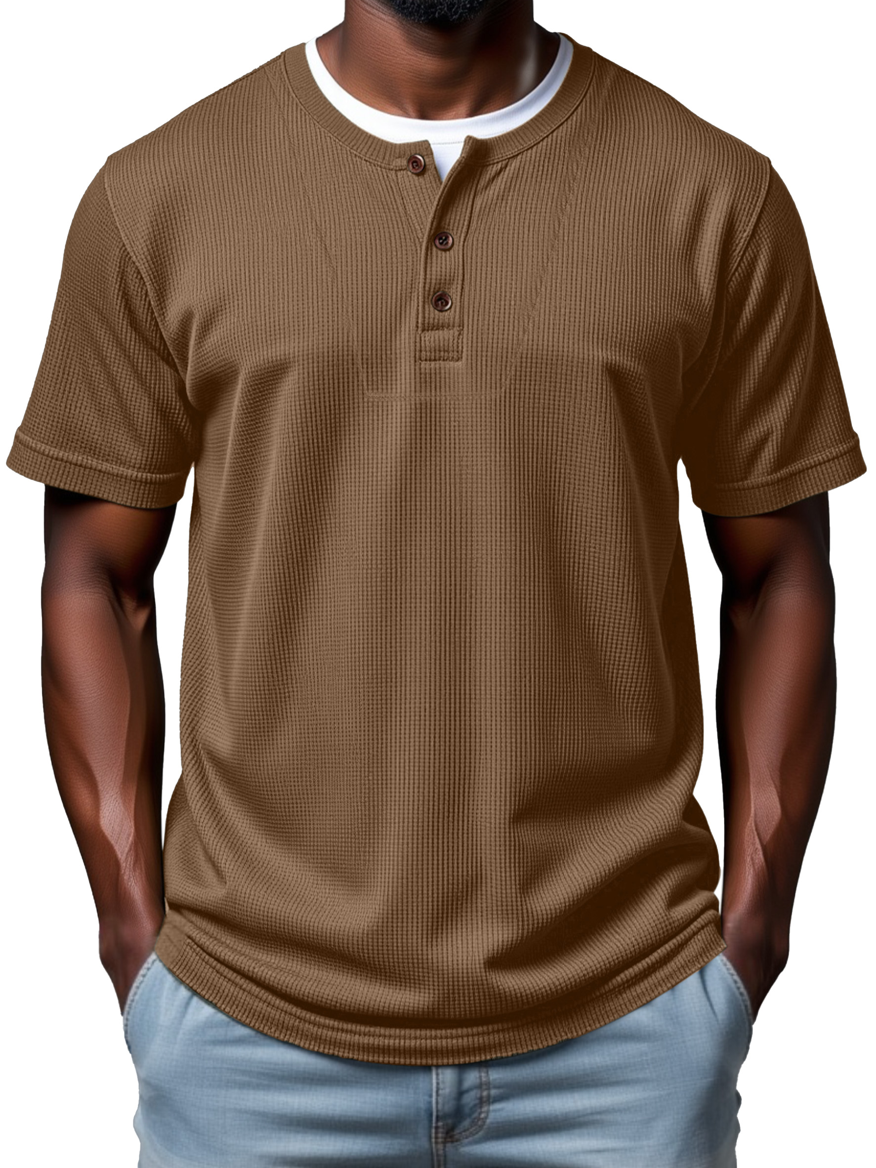 Men's Casual Simple Waffle Fake Two Piece Short Sleeve Top