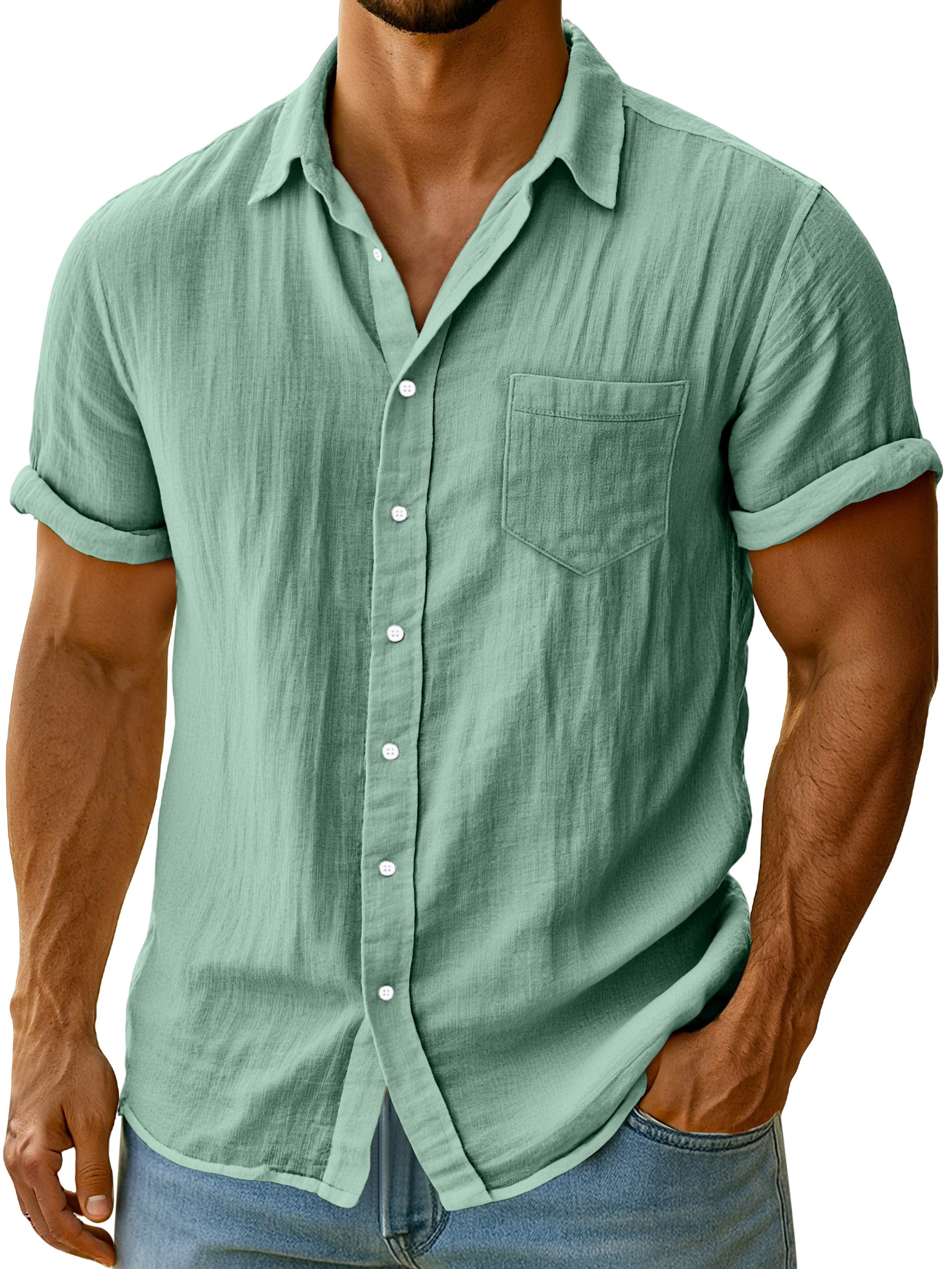 Men's Casual Solid Color Breathable Imitation Linen Button Short-sleeved Shirt
