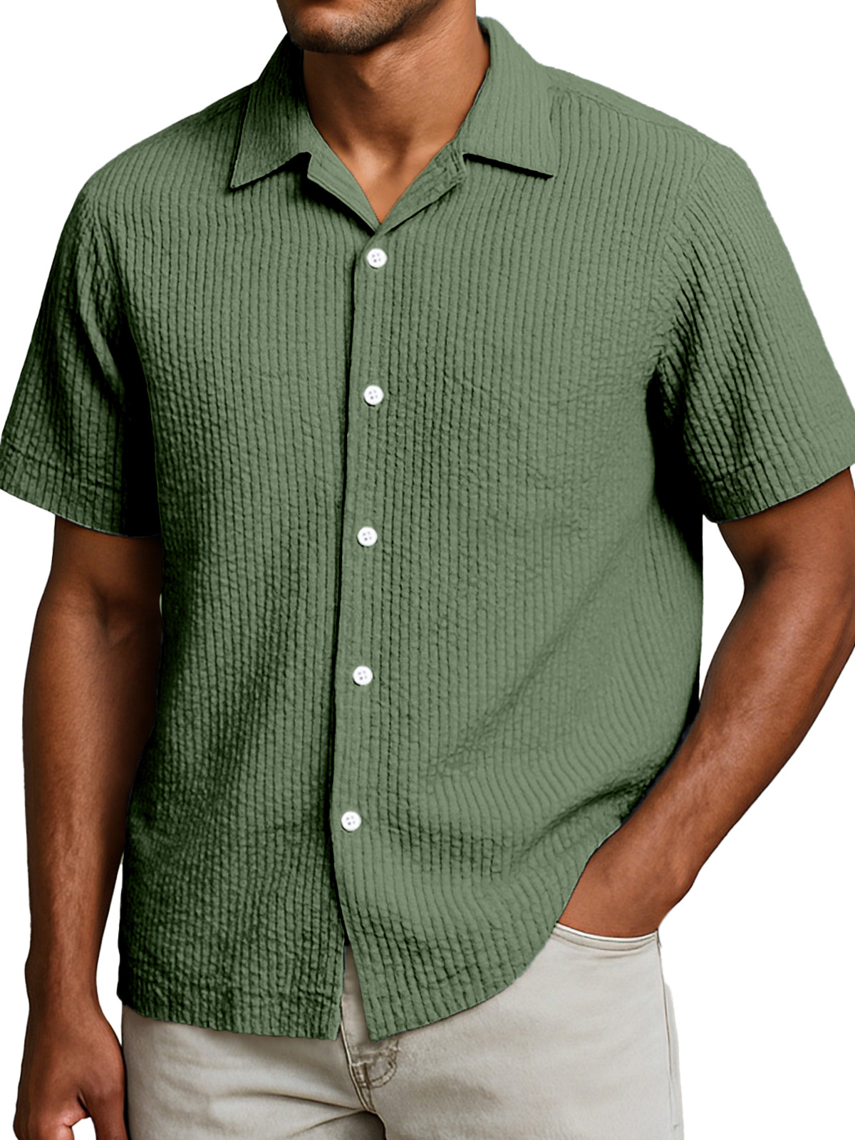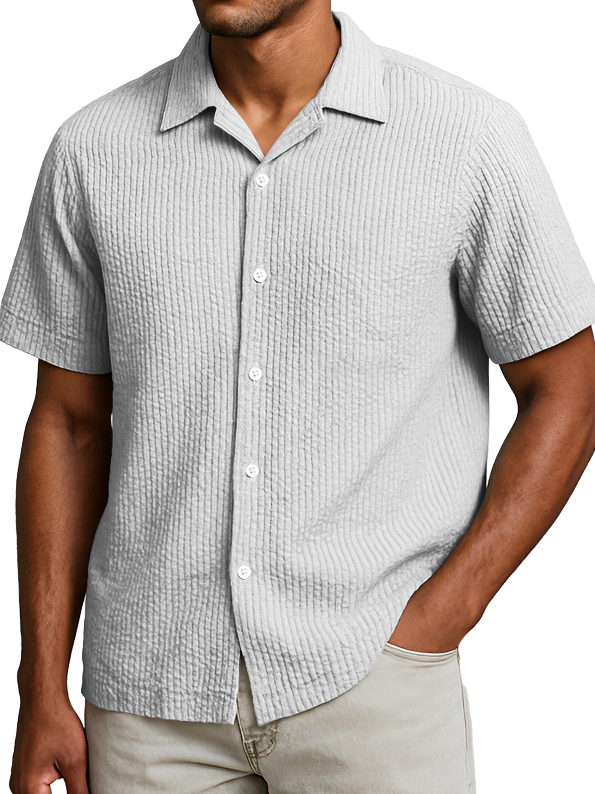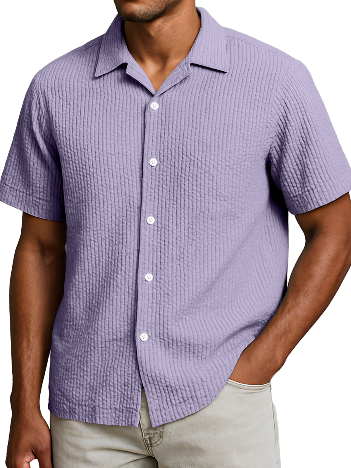 Men's Casual Solid Color Breathable Seersucker Button Short Sleeve Shirt