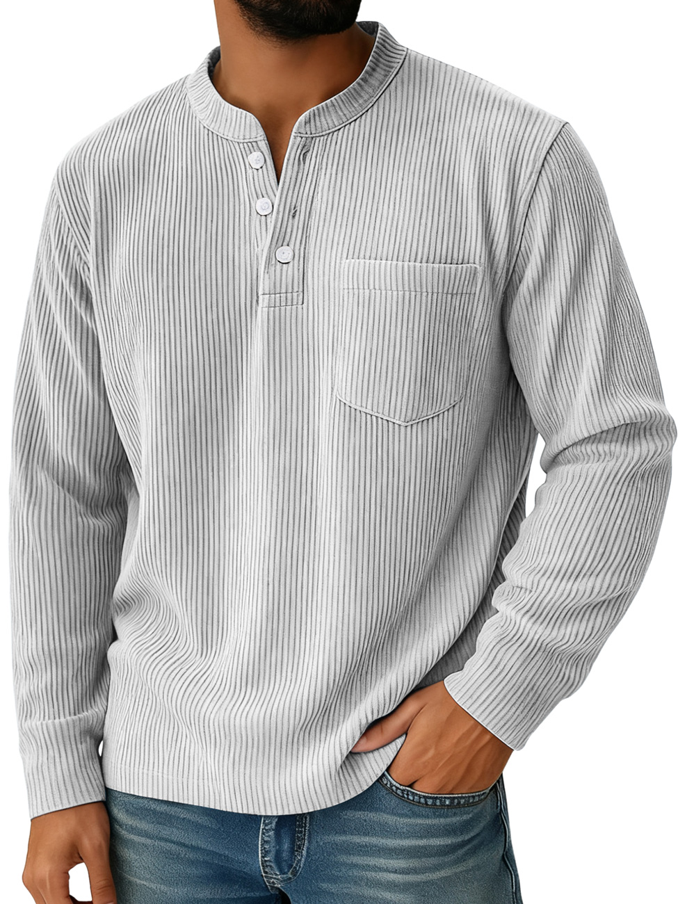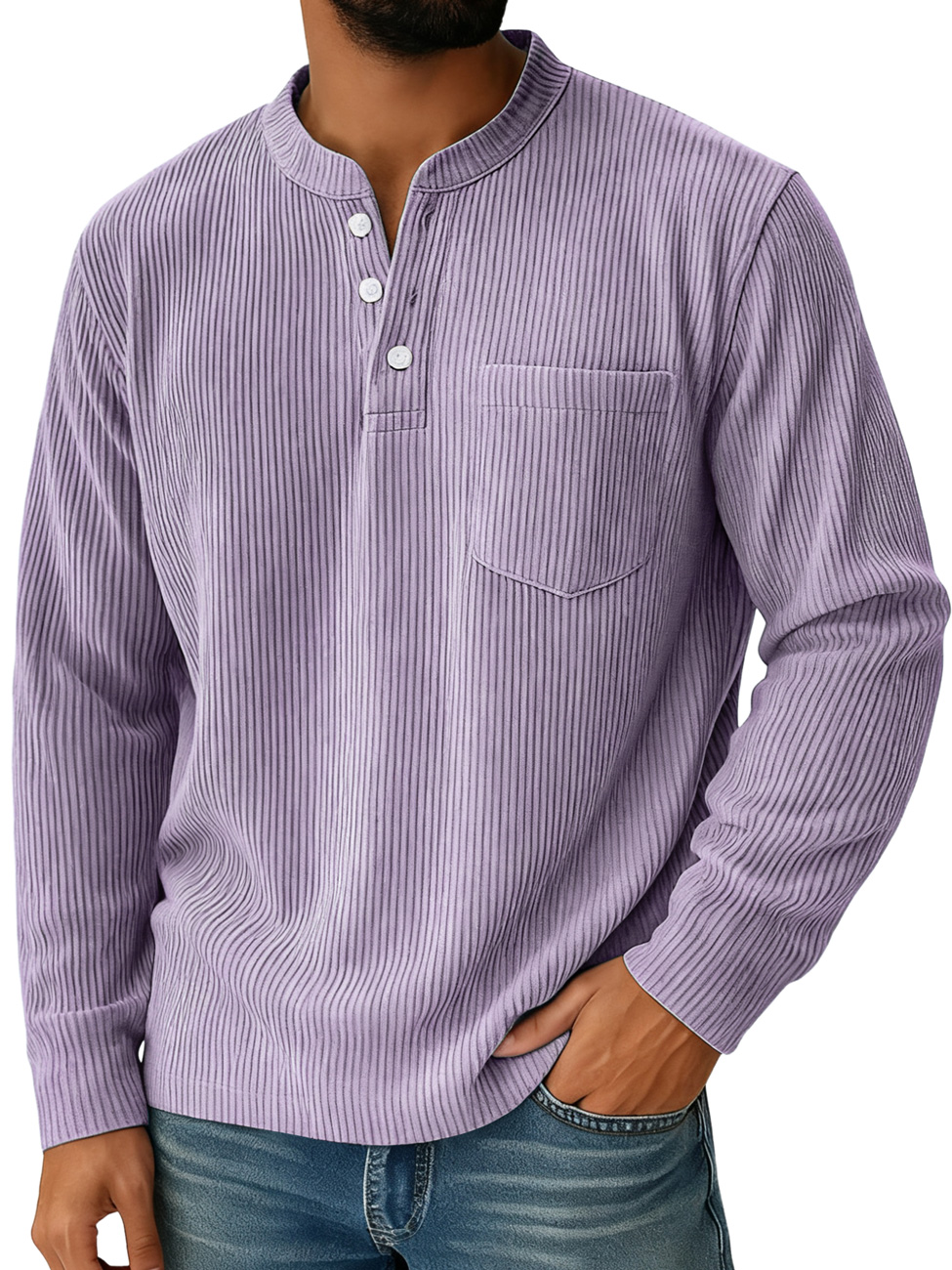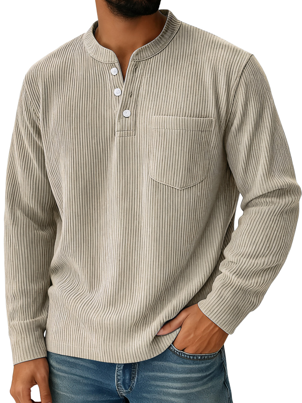 Men's Casual Solid Color Henley Shirt With Stand-up Collar And Pockets