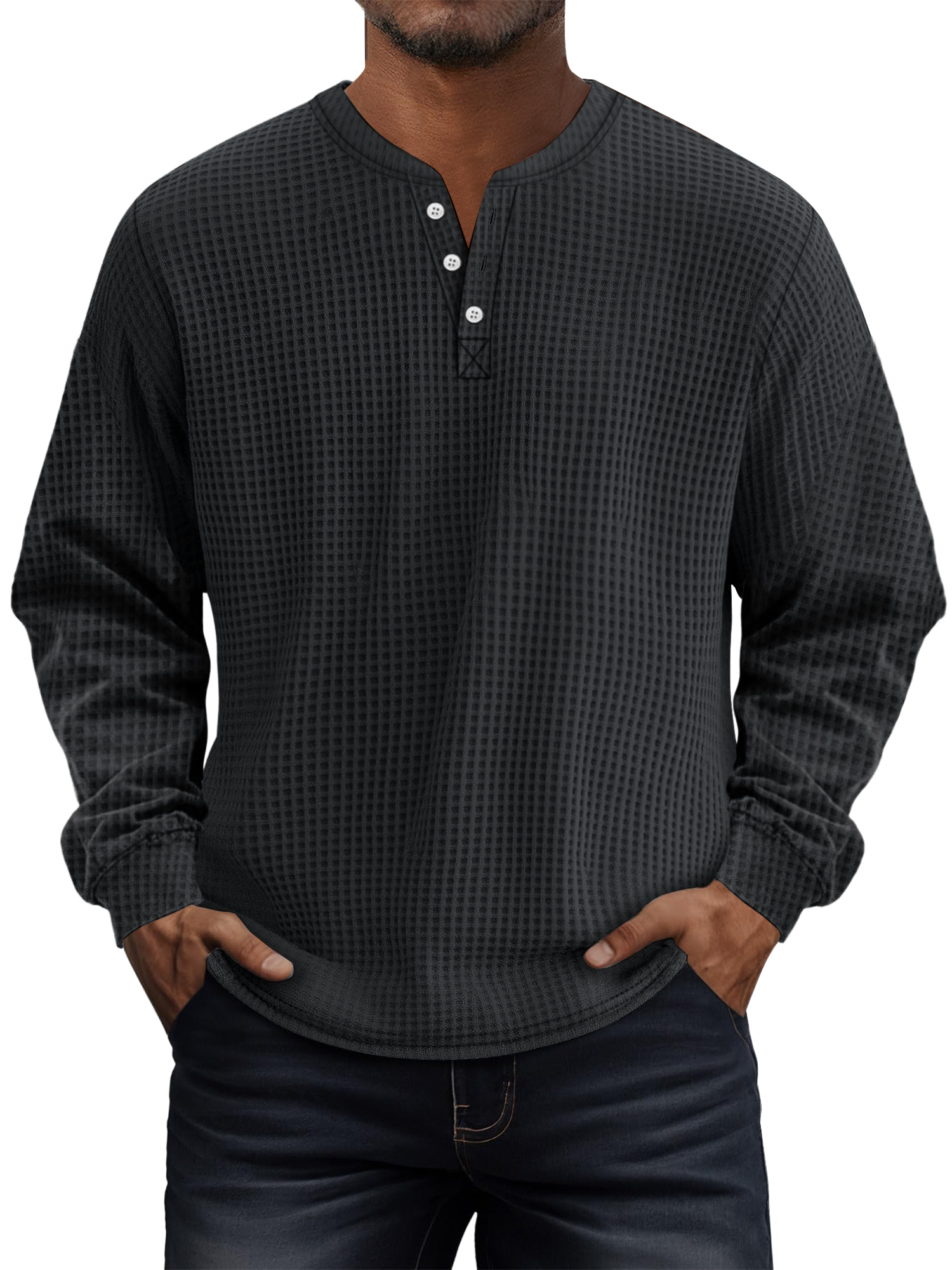 Men's Casual Solid Waffle Long-sleeved Henley Shirt