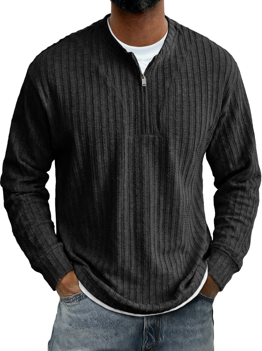 Men's Casual Striped Jacquard Zip-Up Crew Neck Long-Sleeve T-Shirt