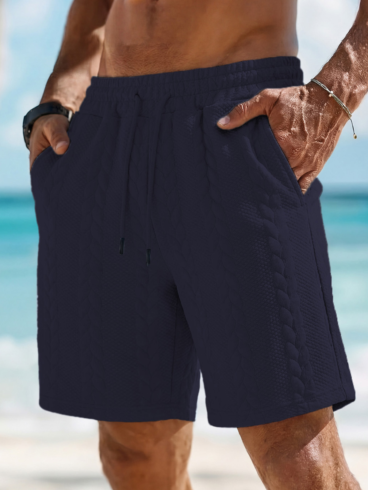Men's Casual Summer Jacquard Drawstring Loose Shorts With Pockets