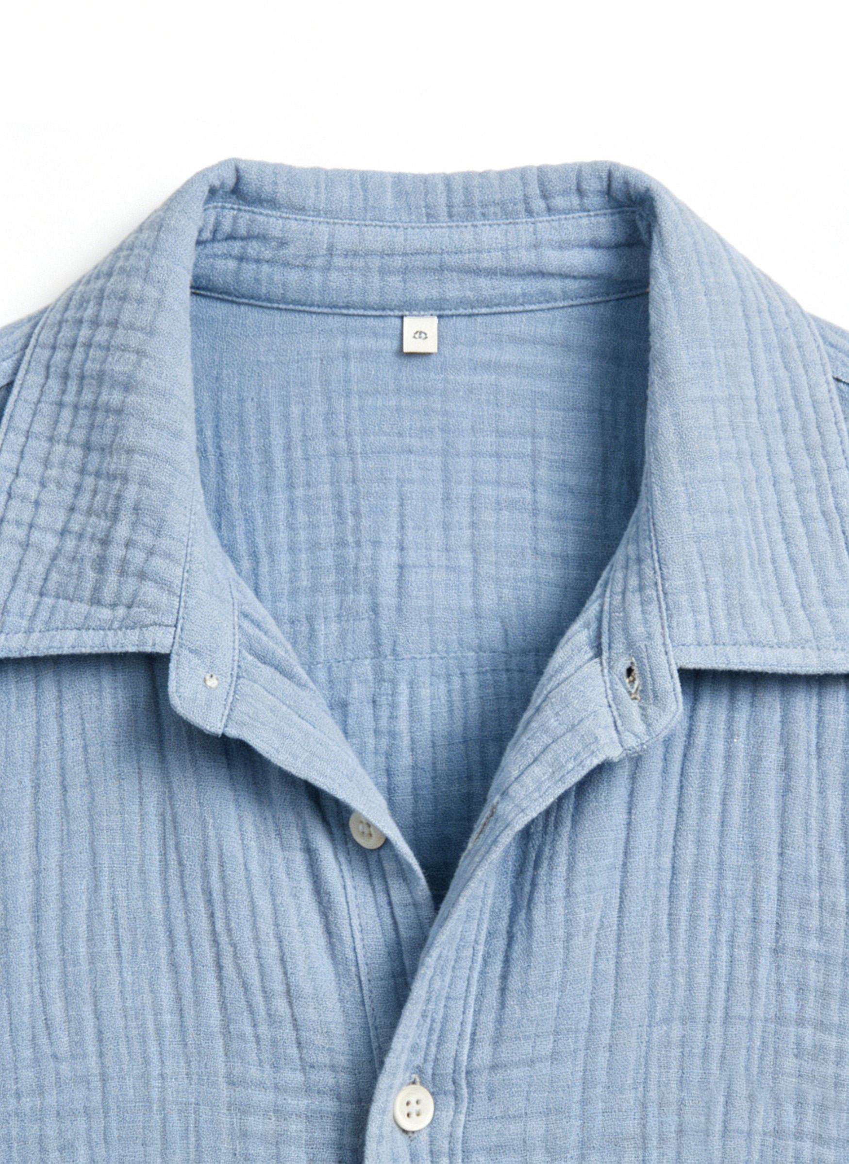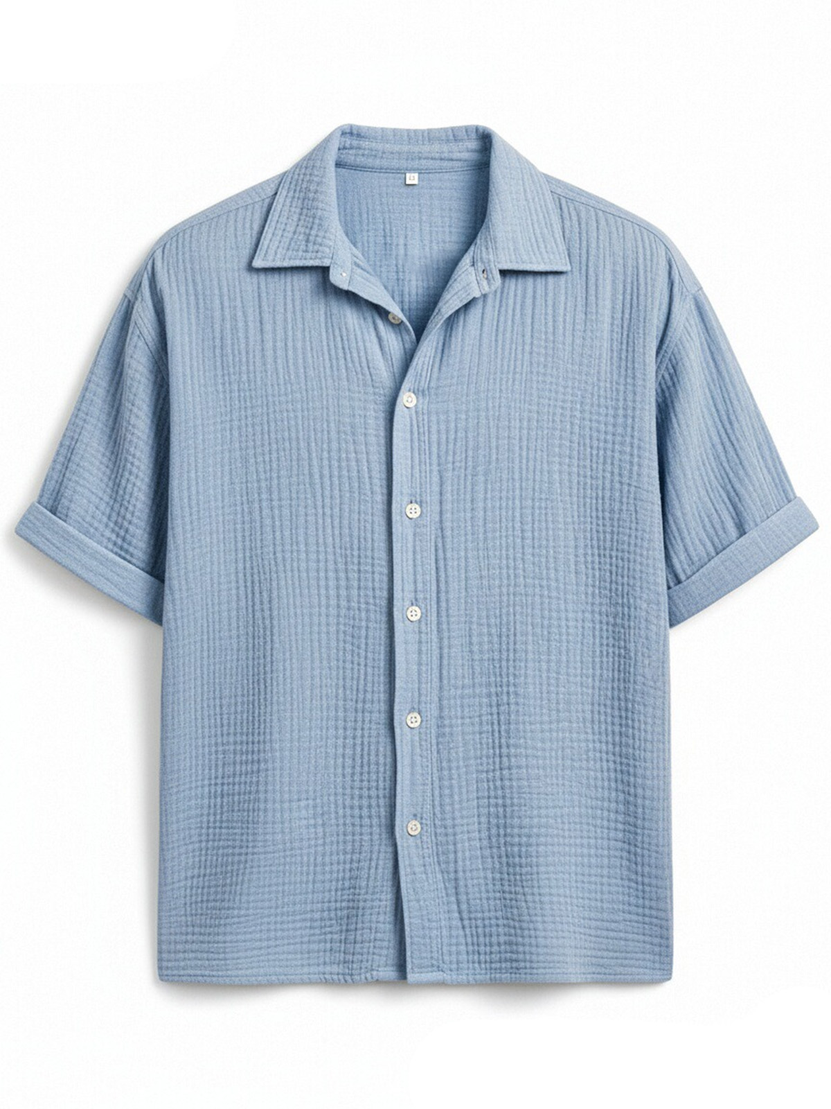 Men's Casual Vacation Breathable And Comfortable Pleated Short-sleeved Shirt