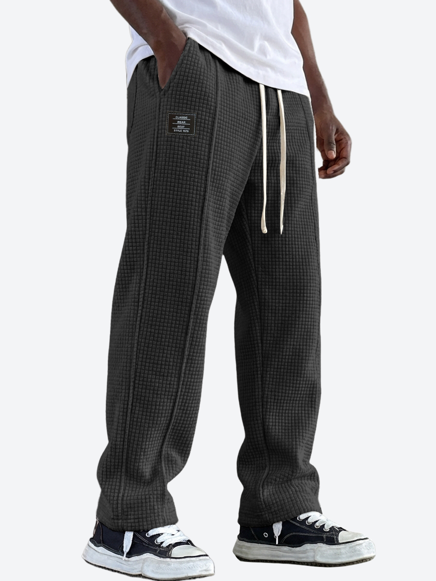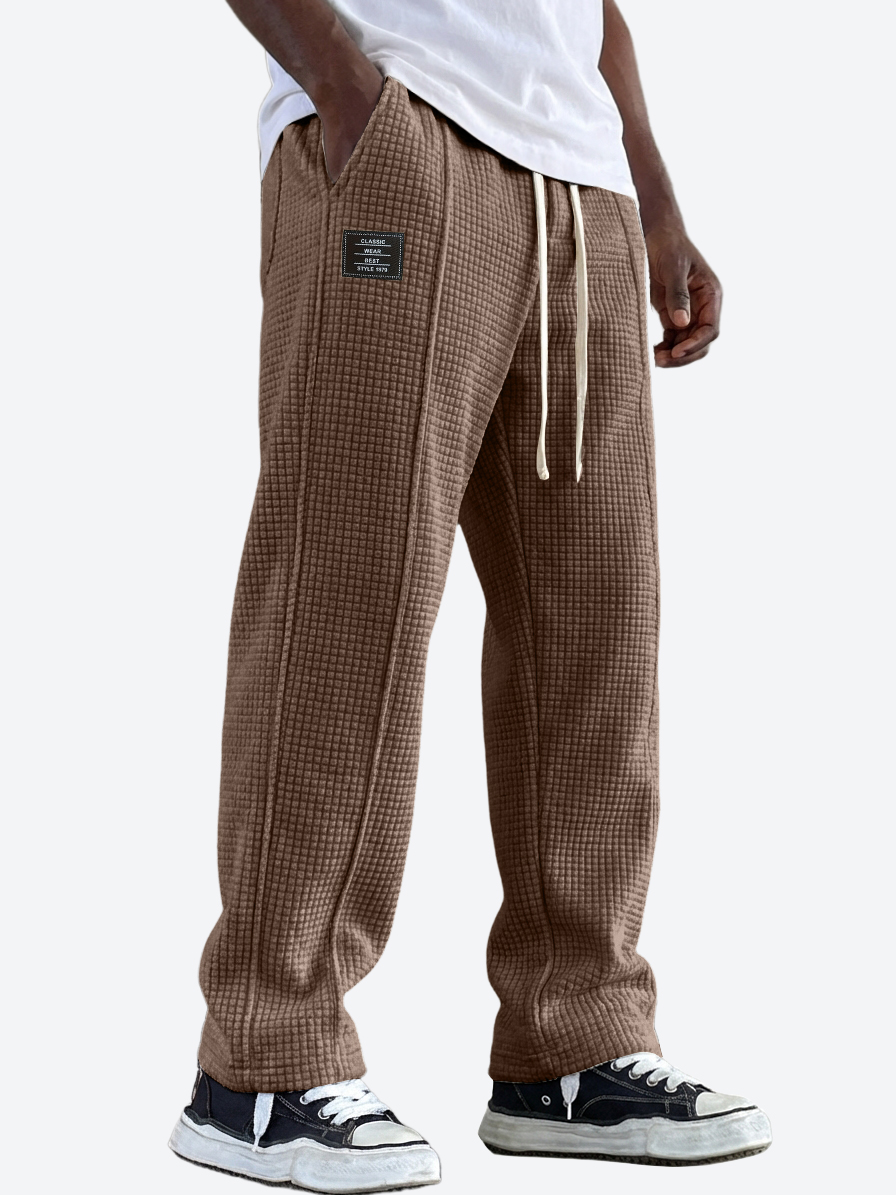 Men's Casual Waffle Texture Corduroy Multi-Pocket Pants with Embroidered Logo