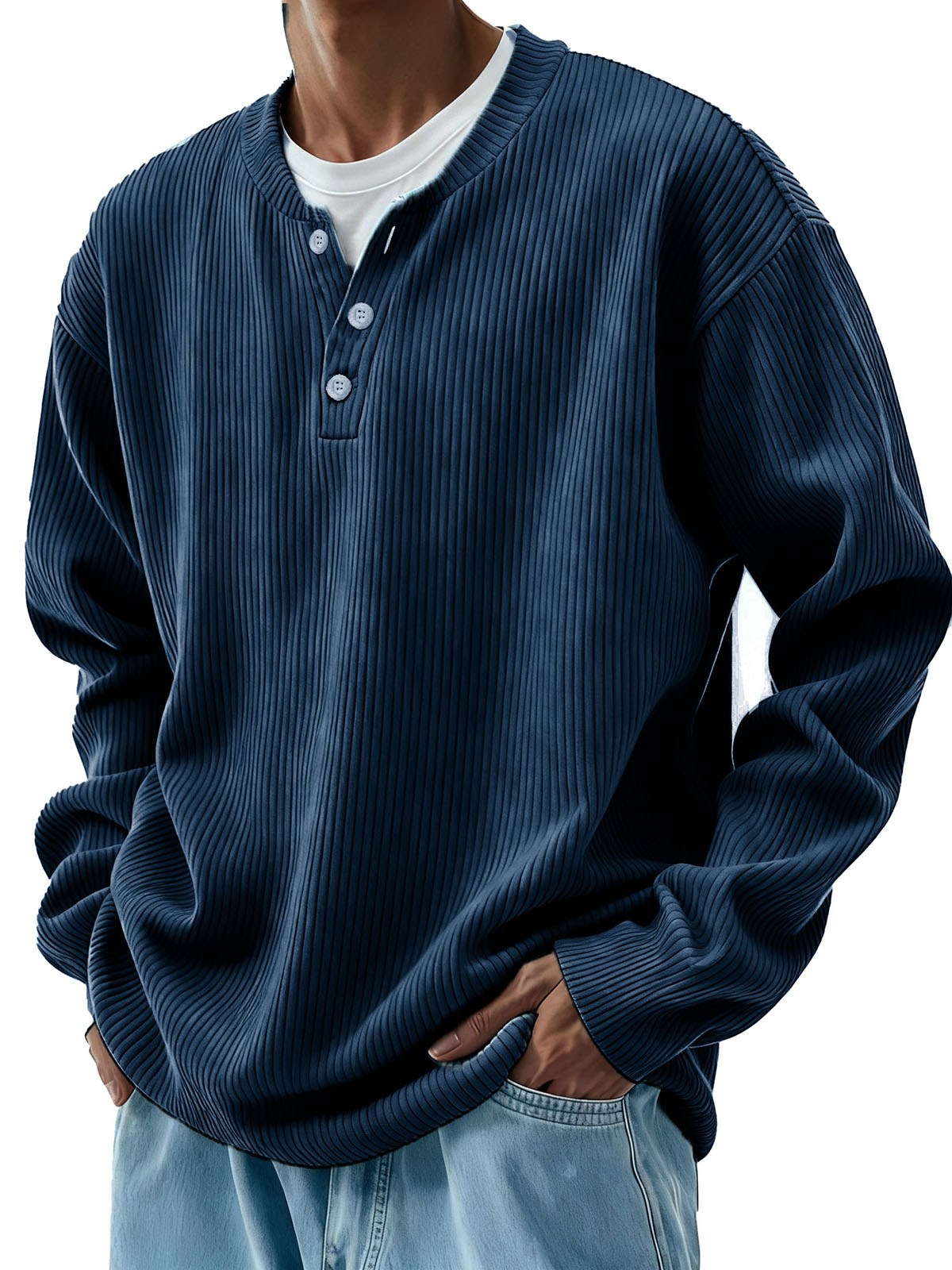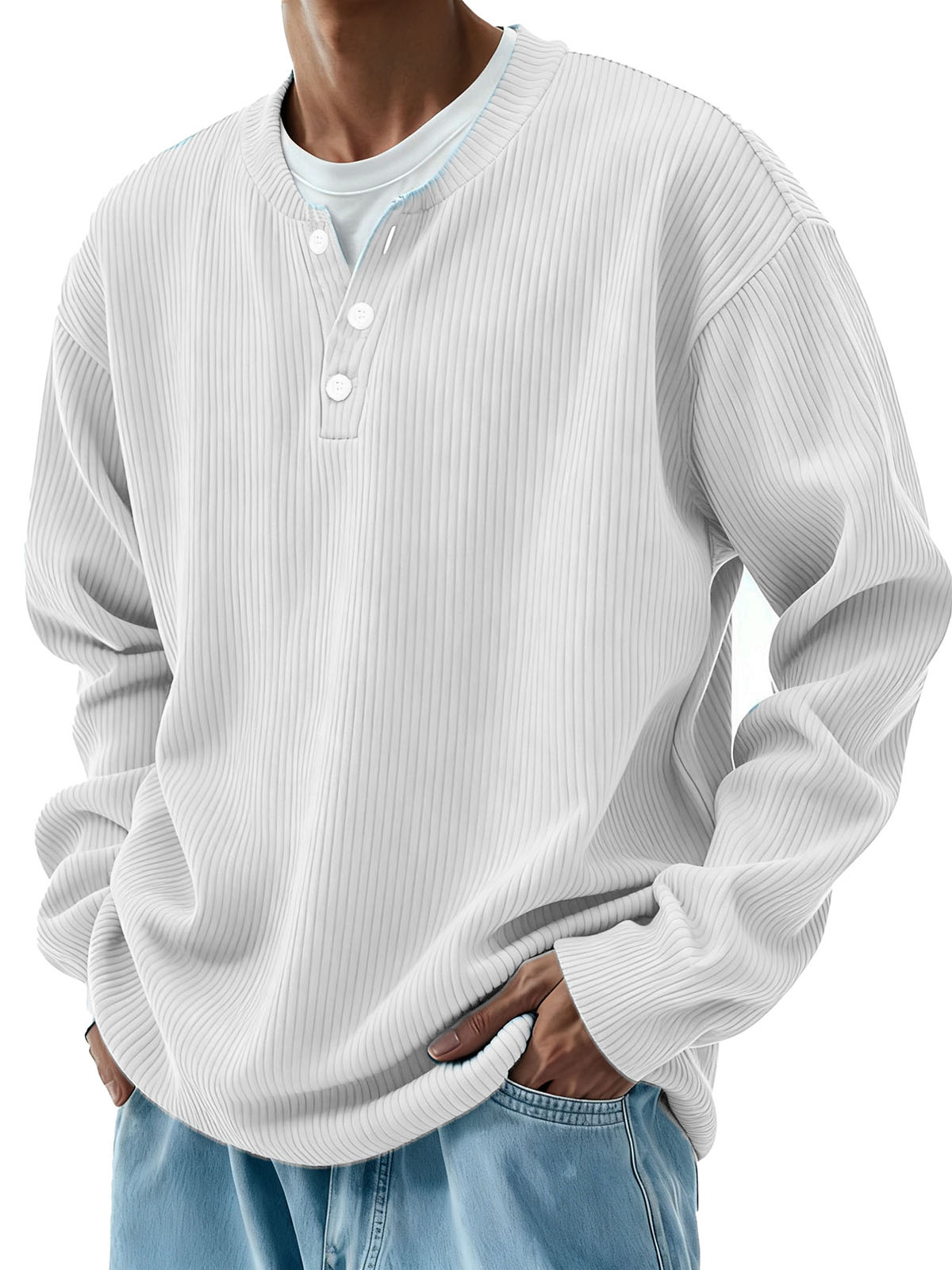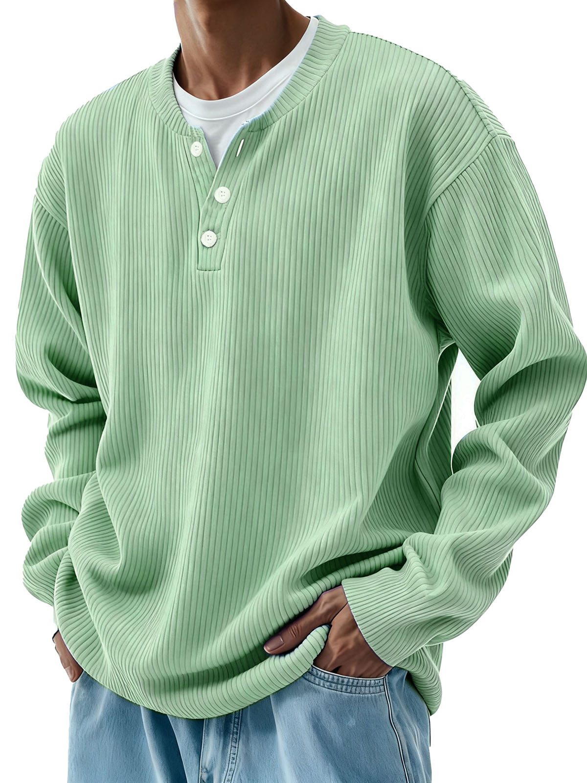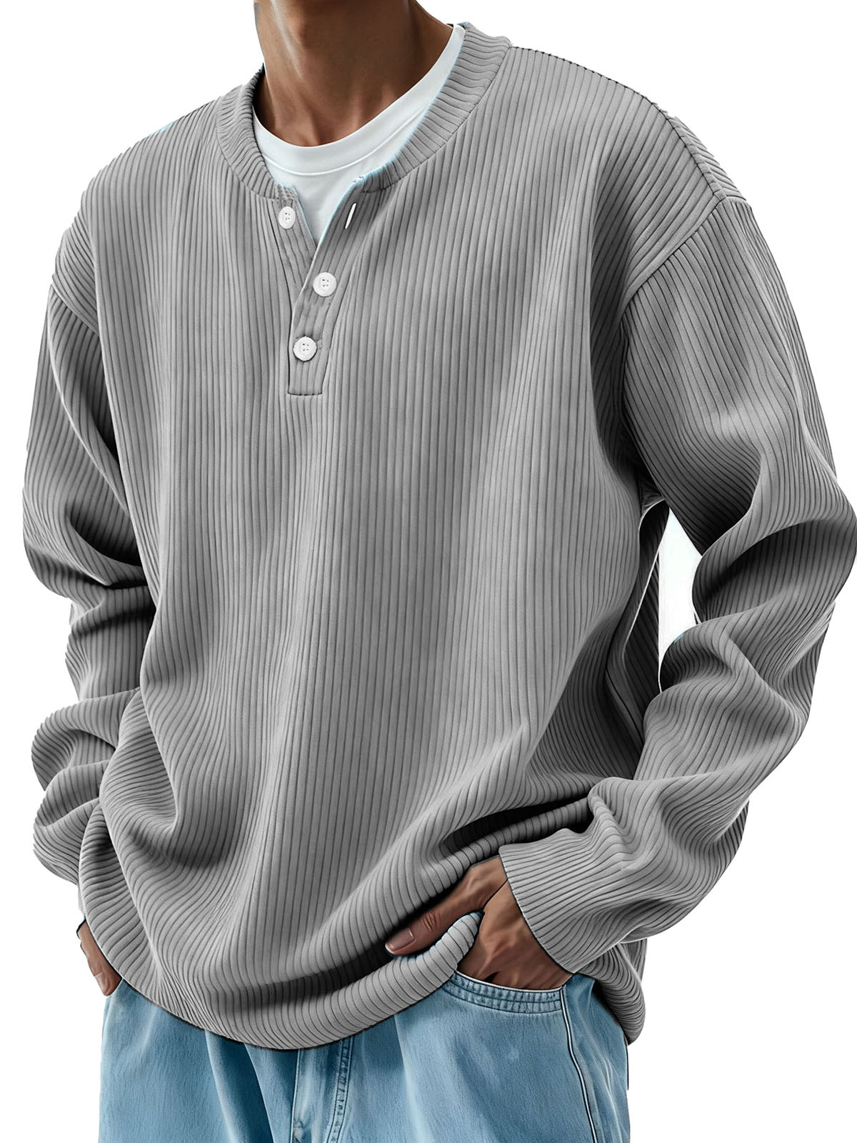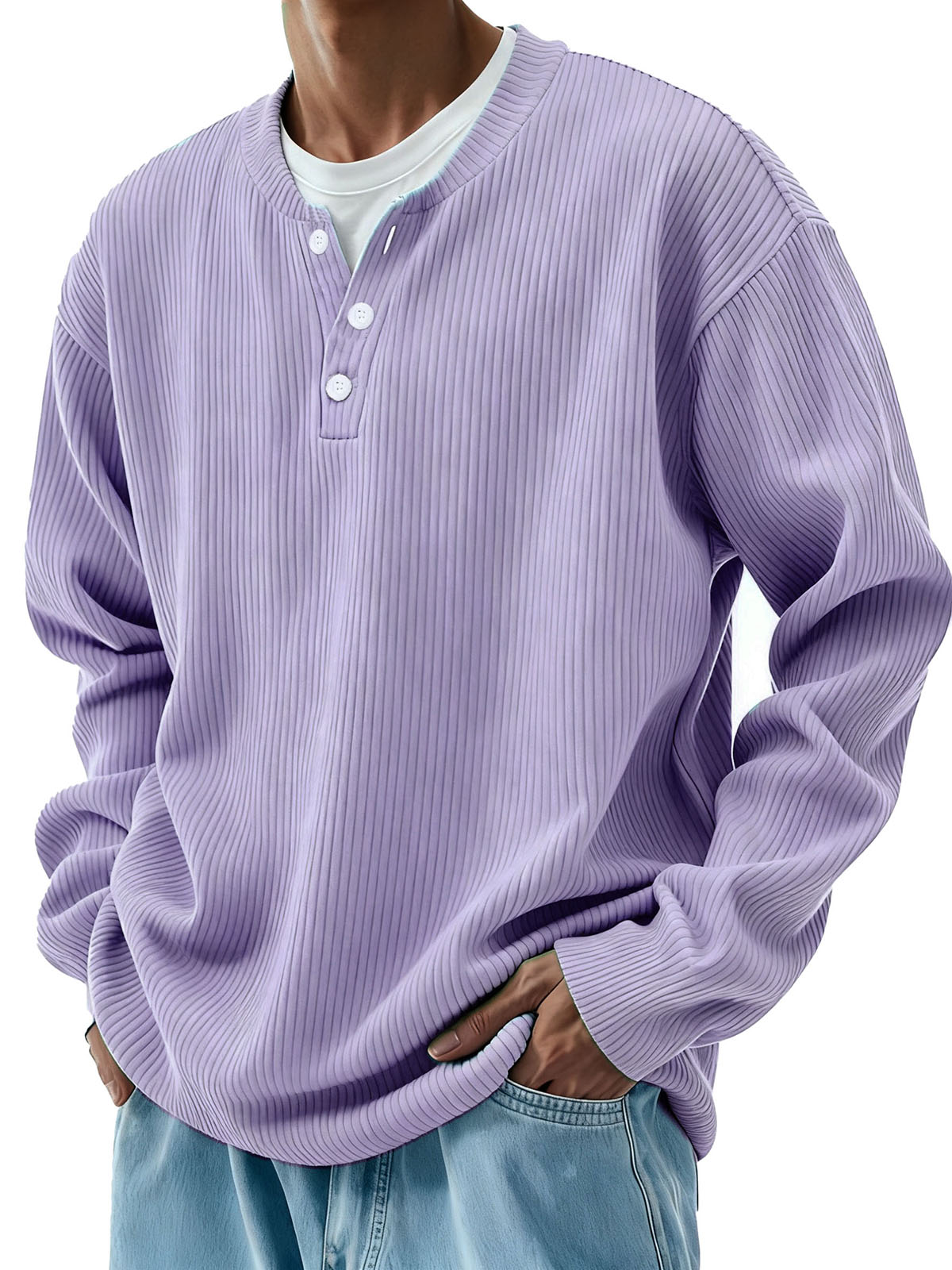 Men's Clothing Fashionable Casual Pit Strip Fabric Three-button Long-sleeved Henry Shirt