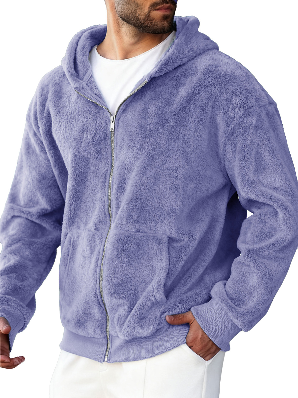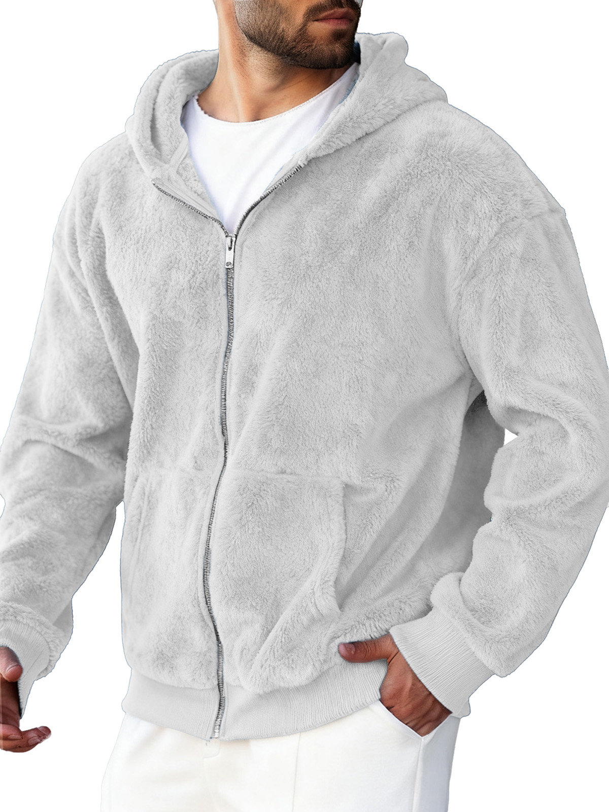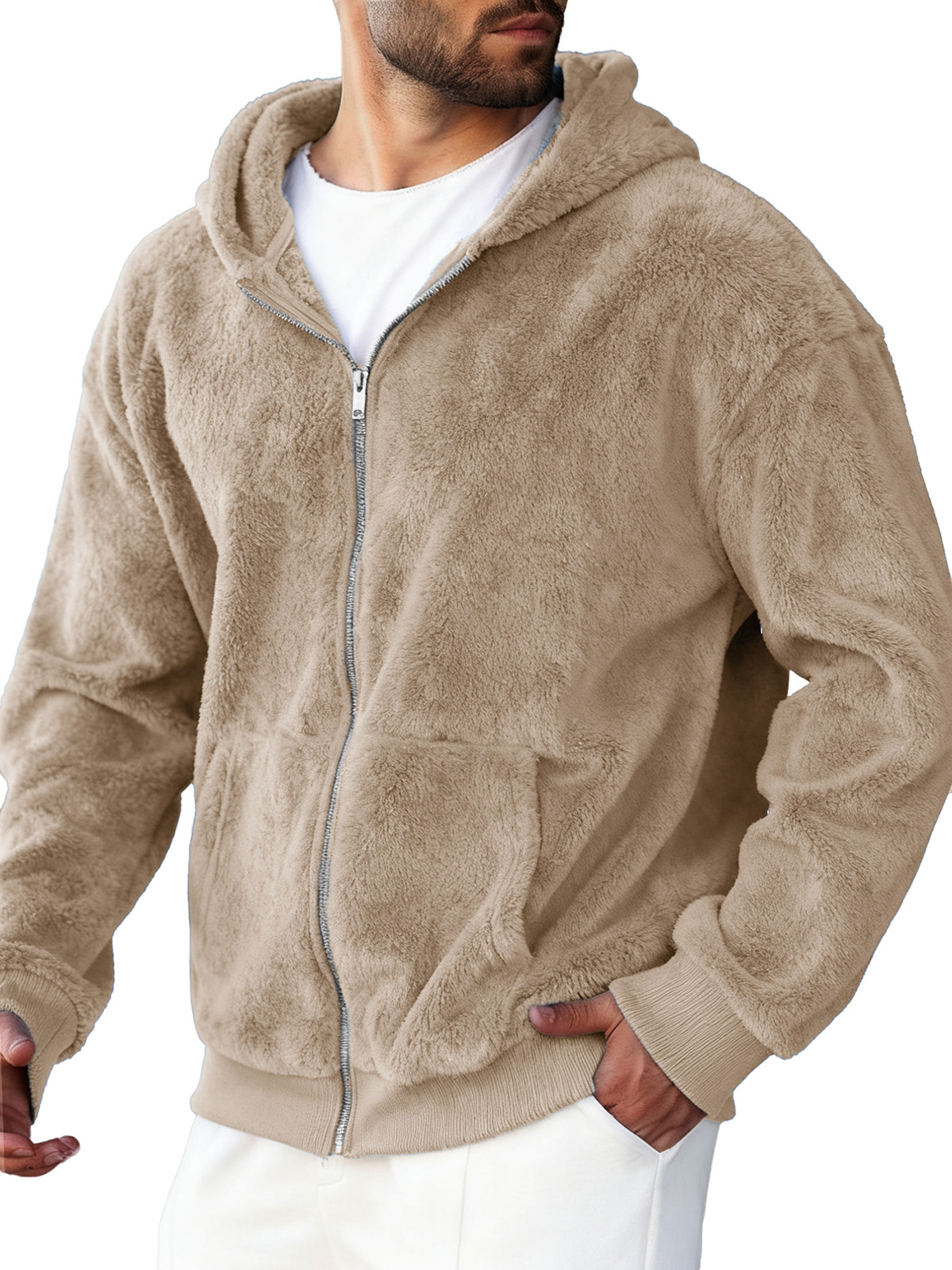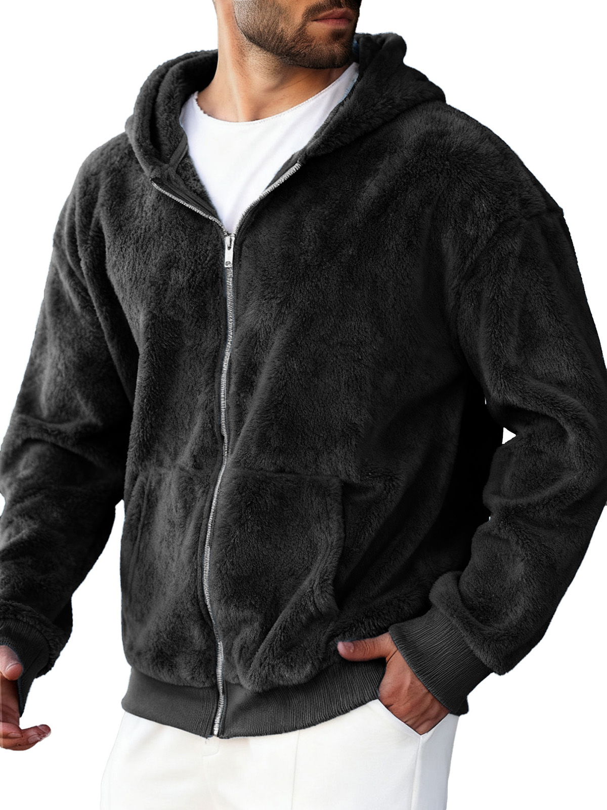 Men's Clothing Fashionable Retro Coral Velvet Fabric Hooded Cardigan Hooded Sweater Coat