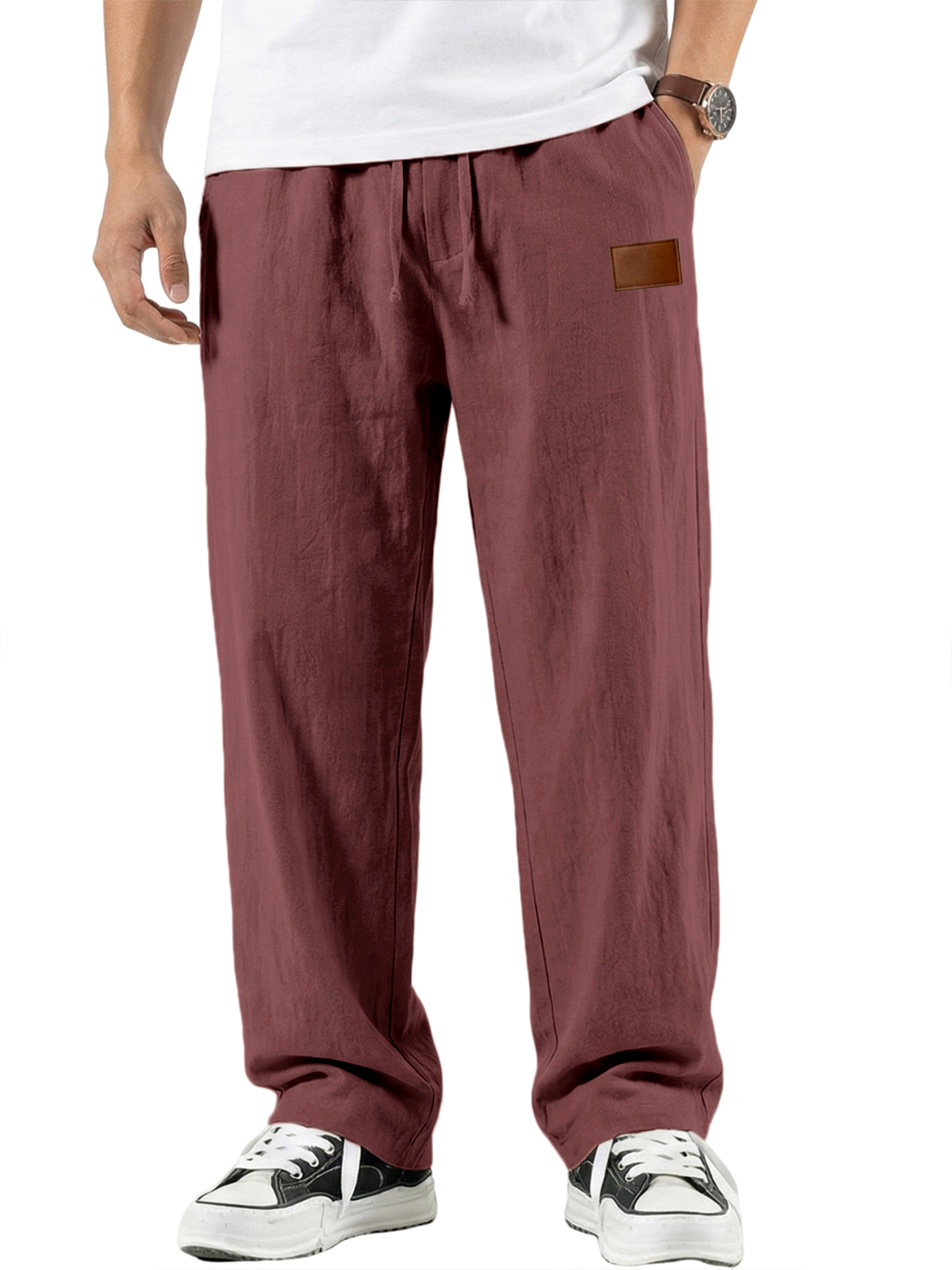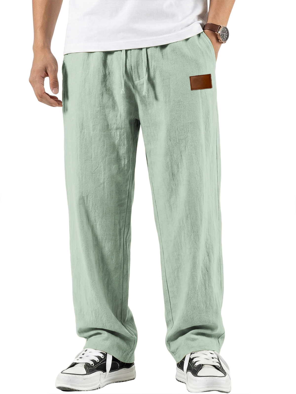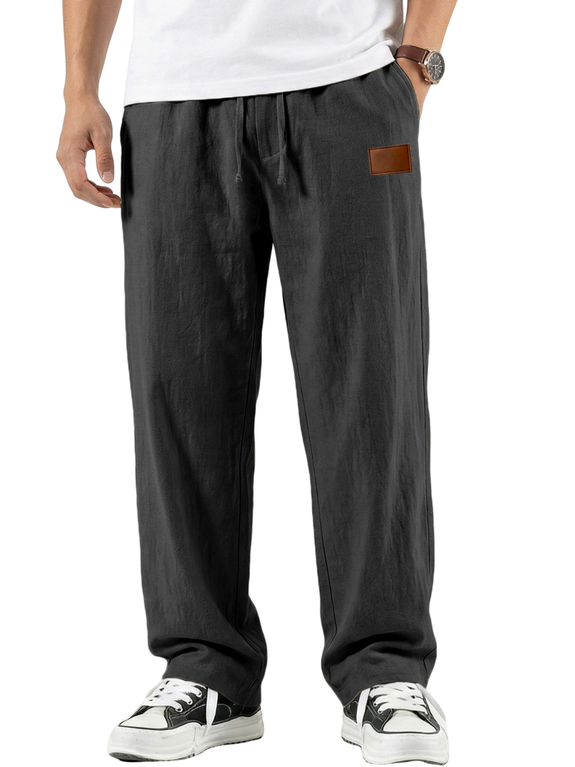 Men's Comfort Cotton-linen Breathable Pants with Embroidered Leather Labels
