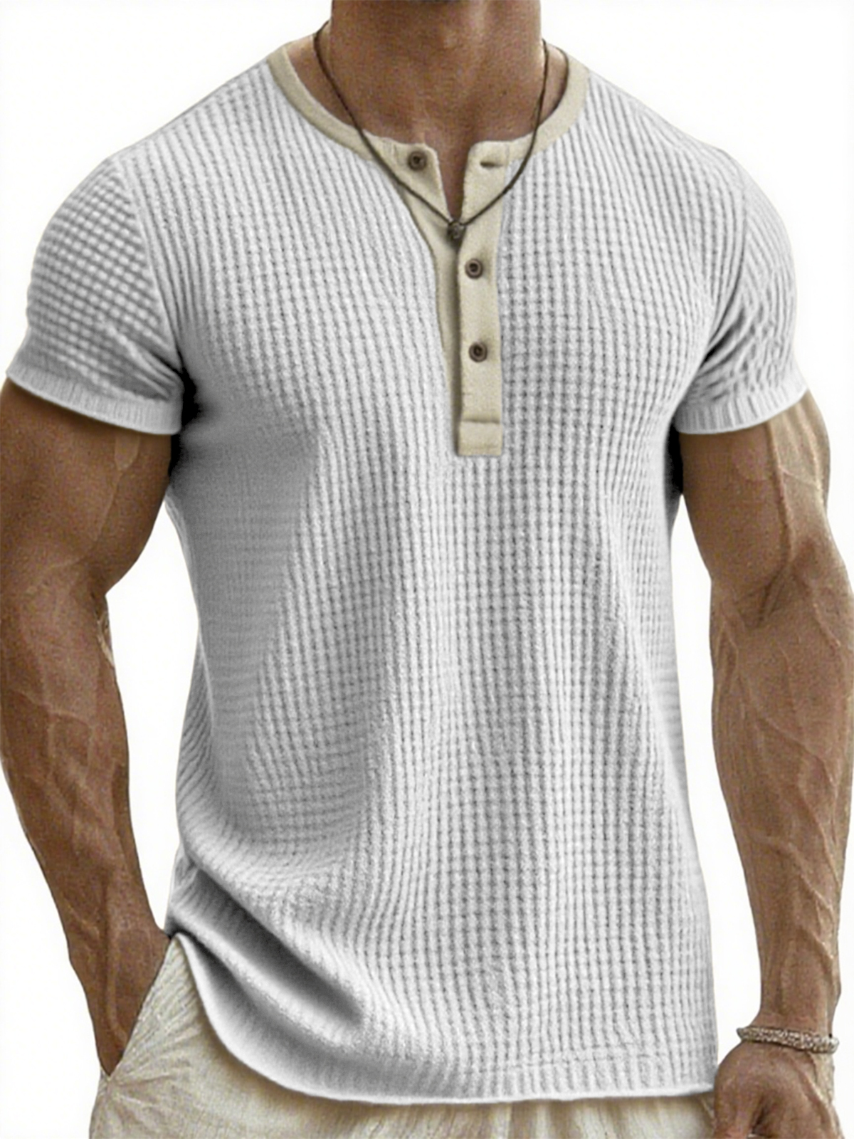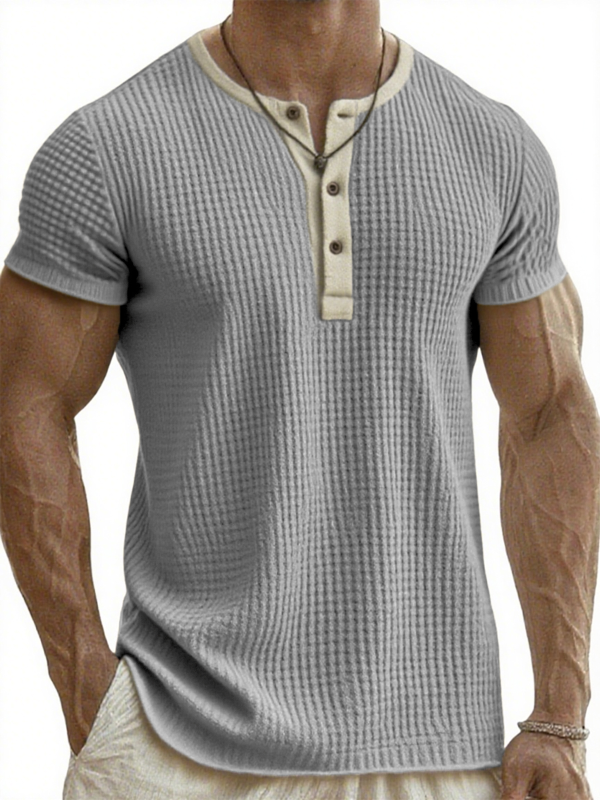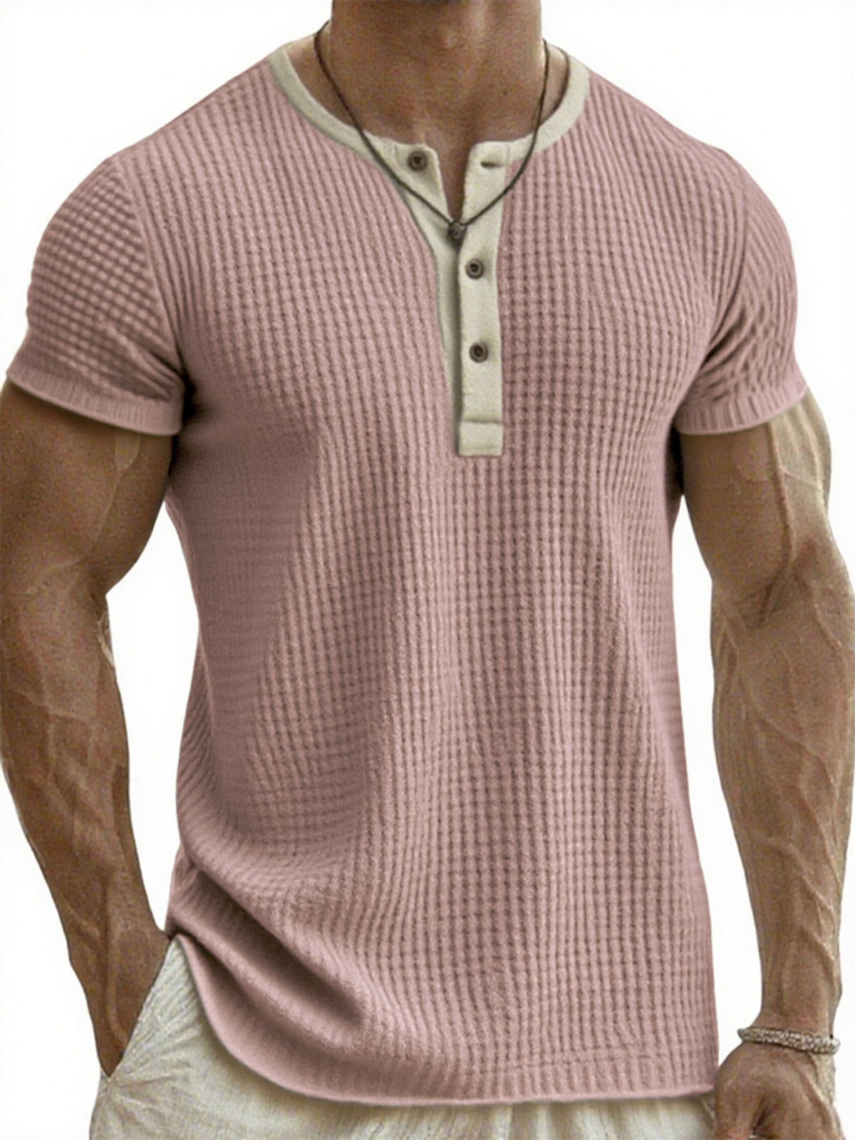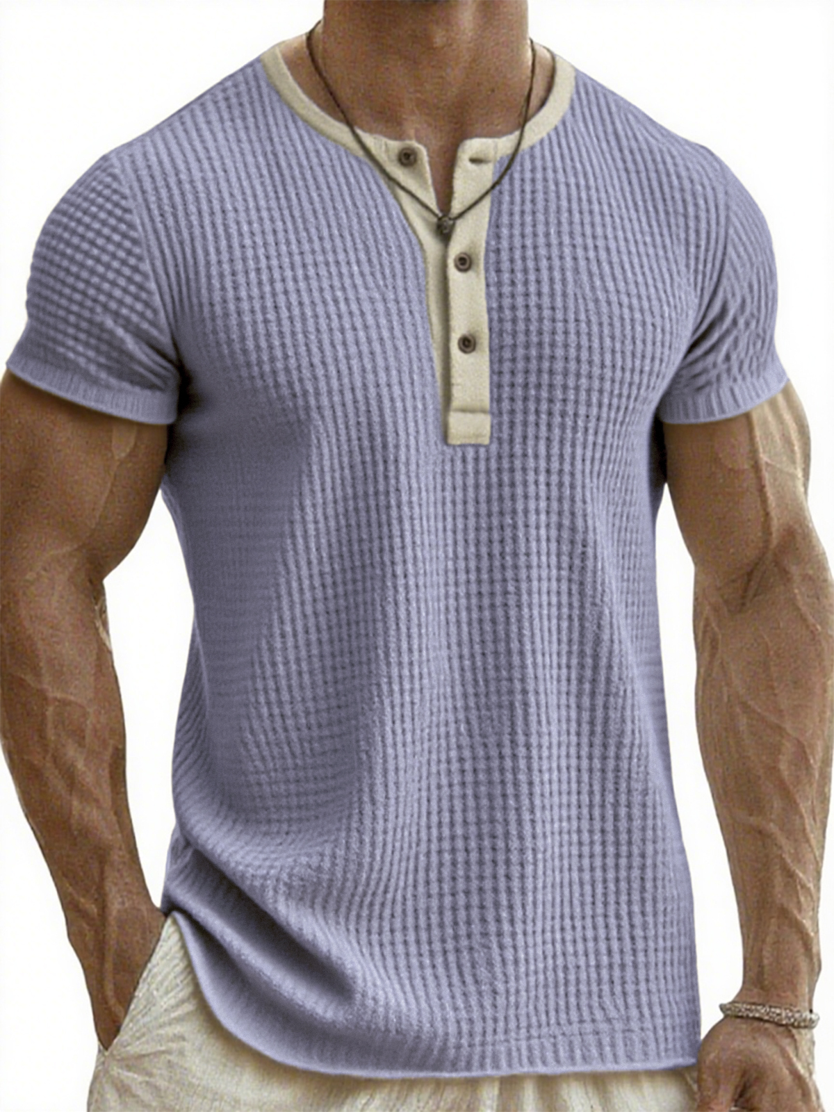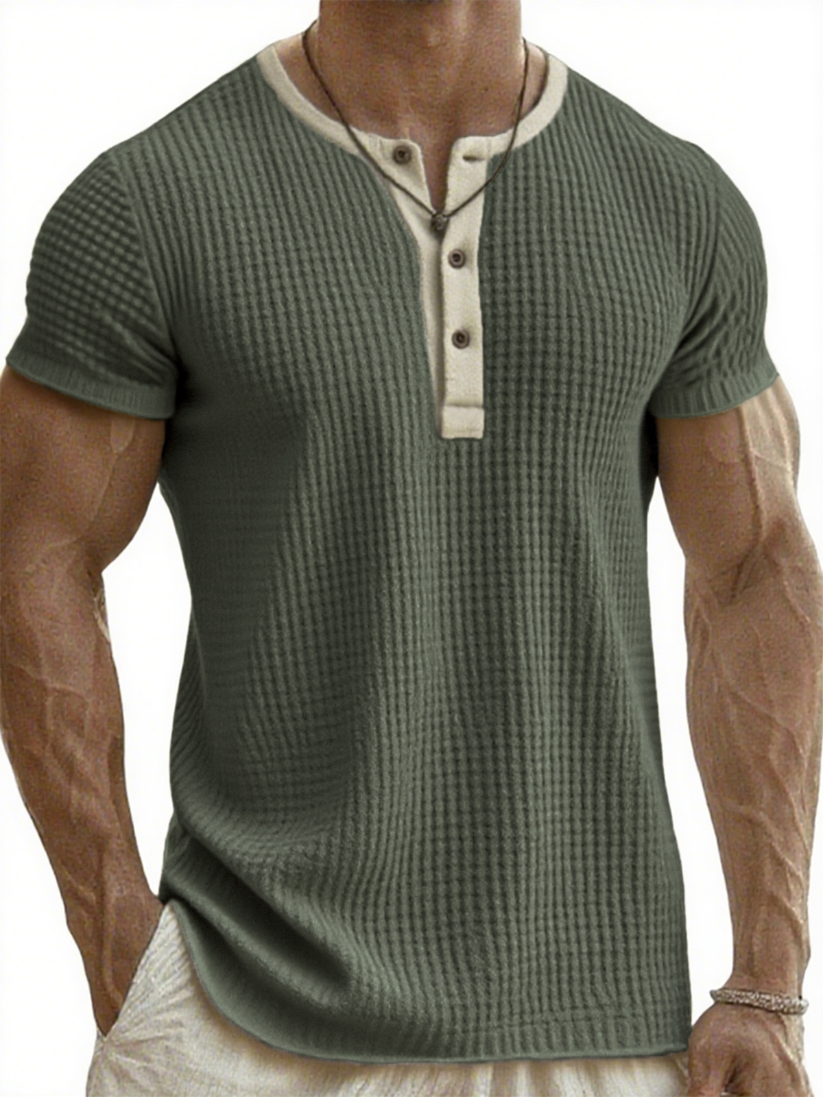 Men's Comfort Waffle Linen Breathable Henley Colorblock Top
