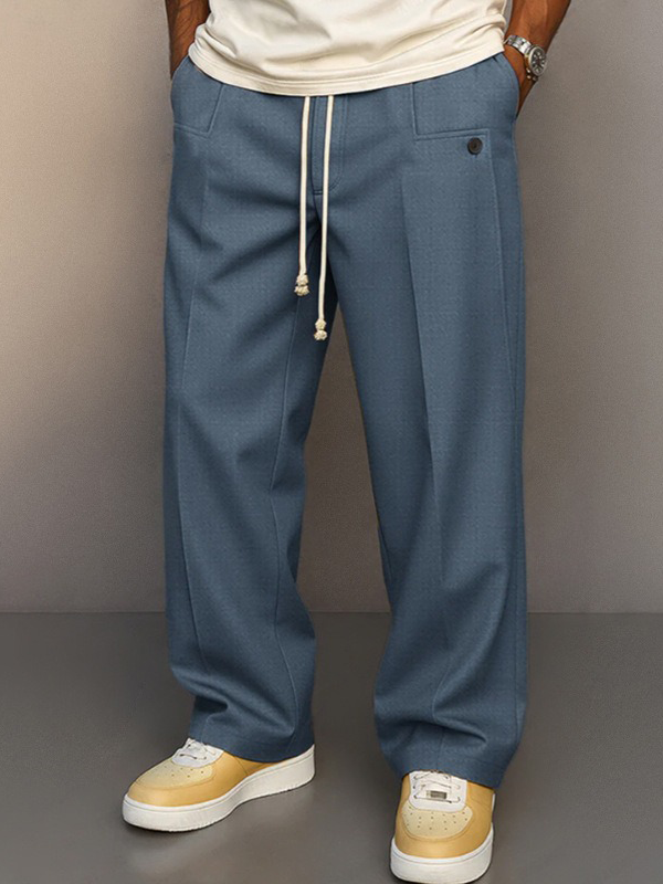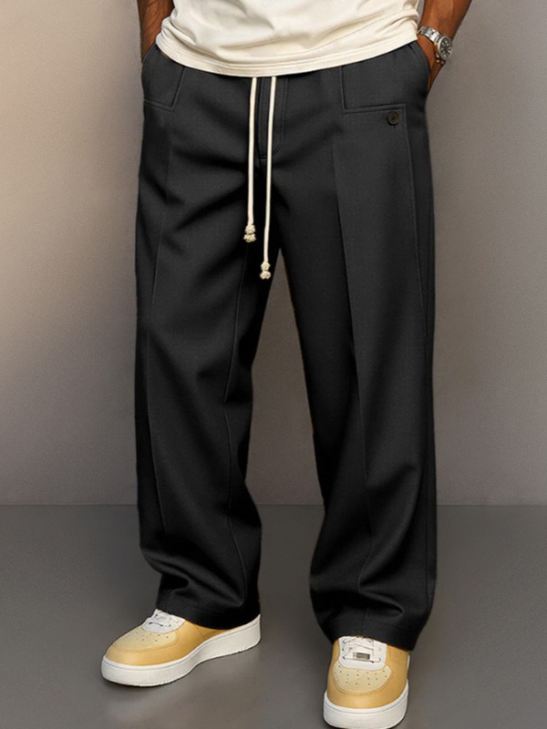 Men's Comfortable Daily Straight Color Button Drawstring Casual Pants