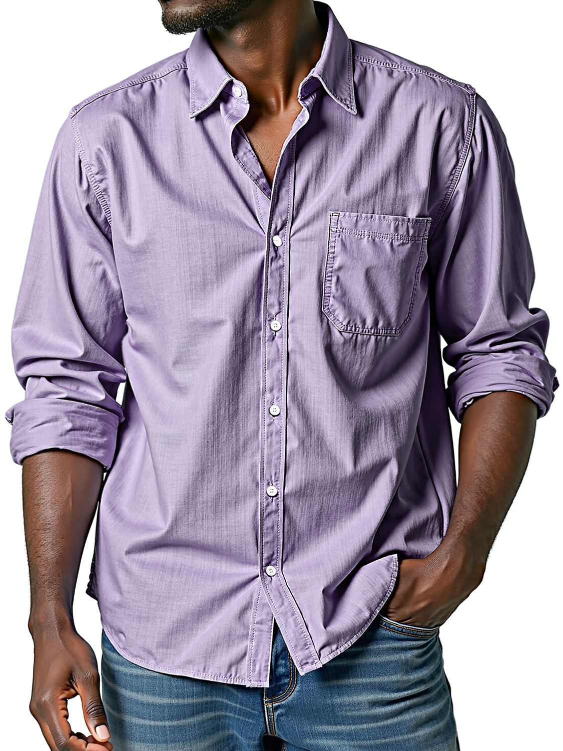 Men's Comfortable Lapel Casual Solid Color Long-sleeved Shirt