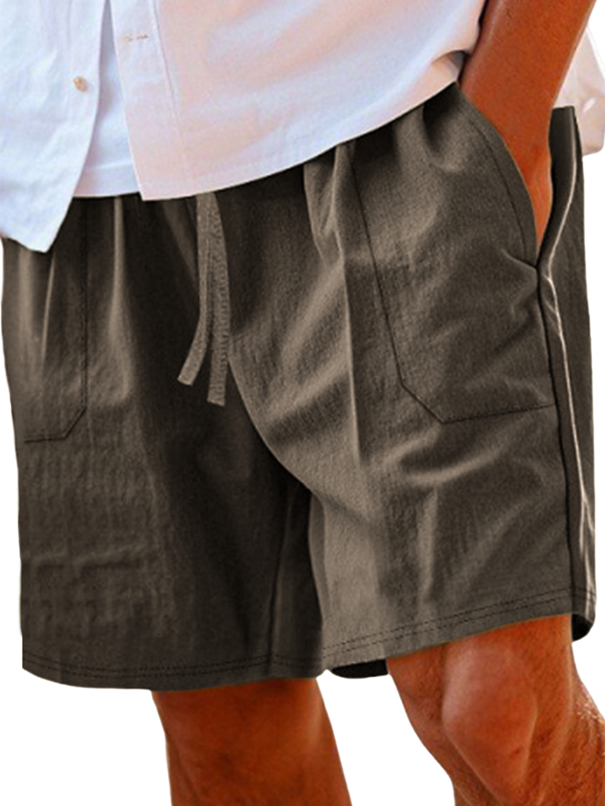 Men's Comfortable Linen Lace-Up Vacation Shorts with Side Pockets