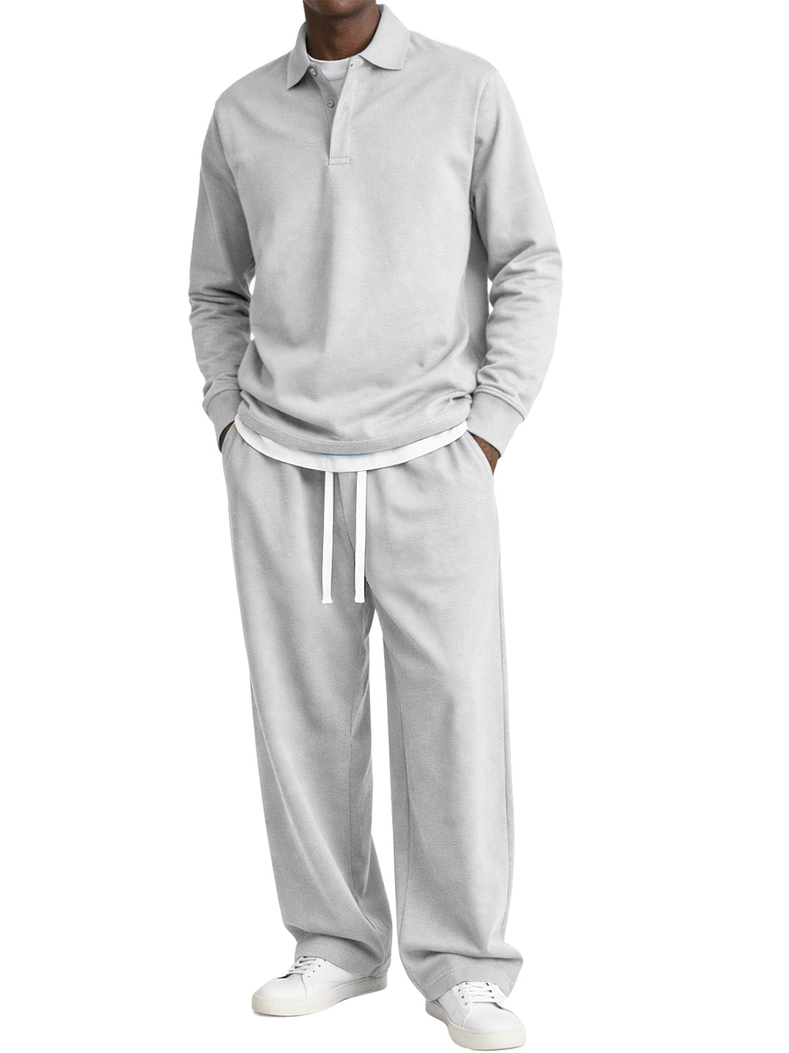 Men's Comfortable Polo Shirt And Trousers Two-piece Set With Concealed Placket Design