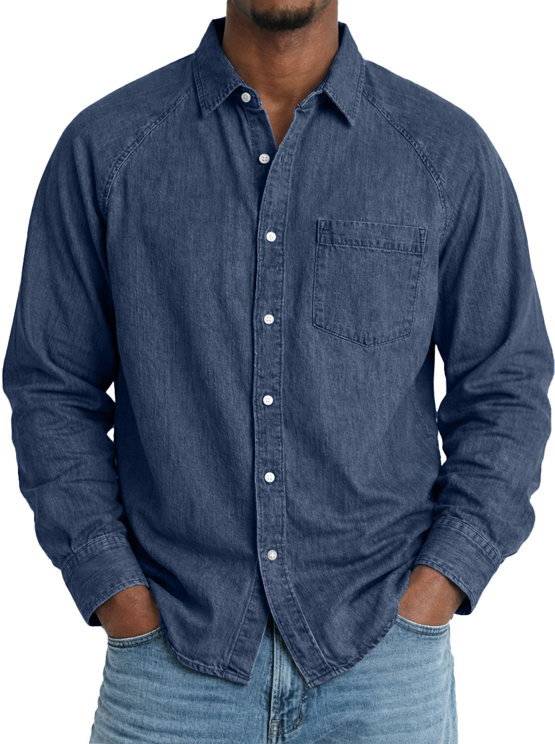 Men's Comfortable Raglan-sleeved Casual Long-sleeved Shirt With Pockets