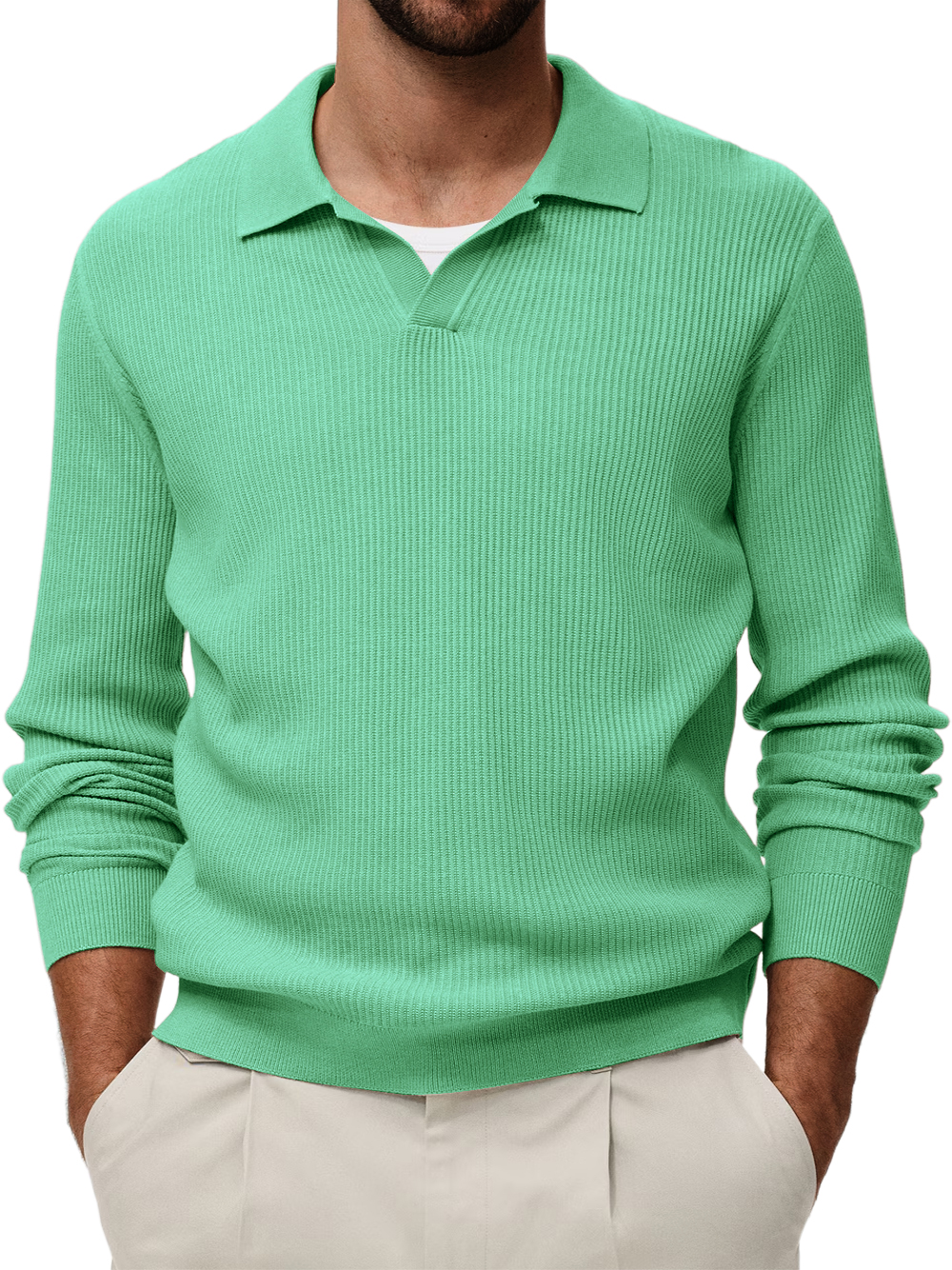 Men's Comfortable V-neck Vintage Stretch Striped Polo Shirt