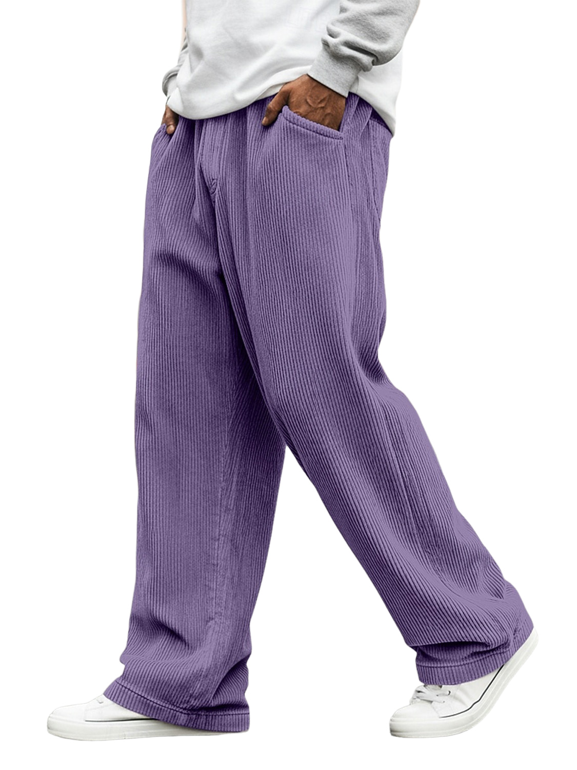 Men's Corduroy Solid Color Casual Loose-fitting Trousers