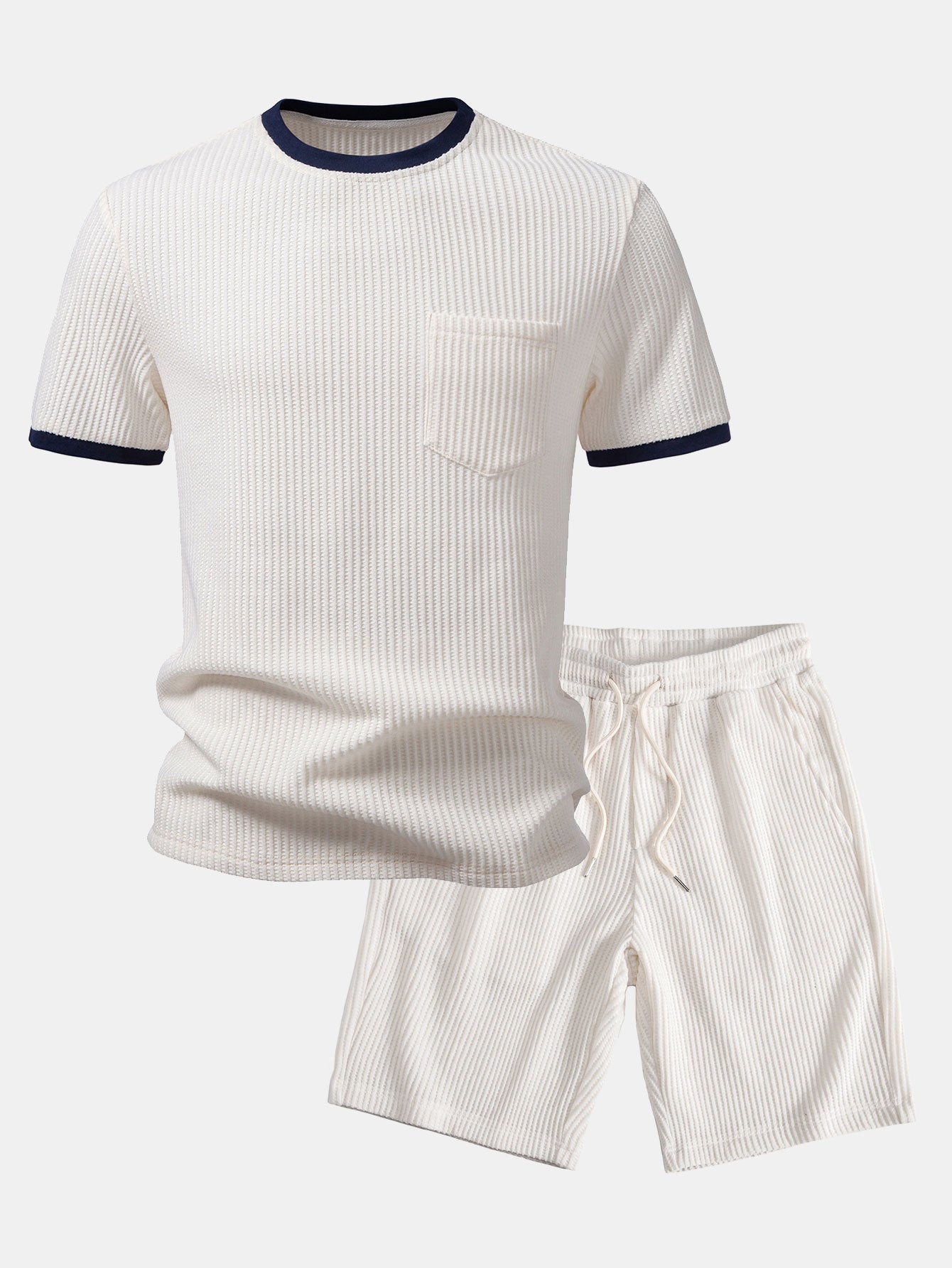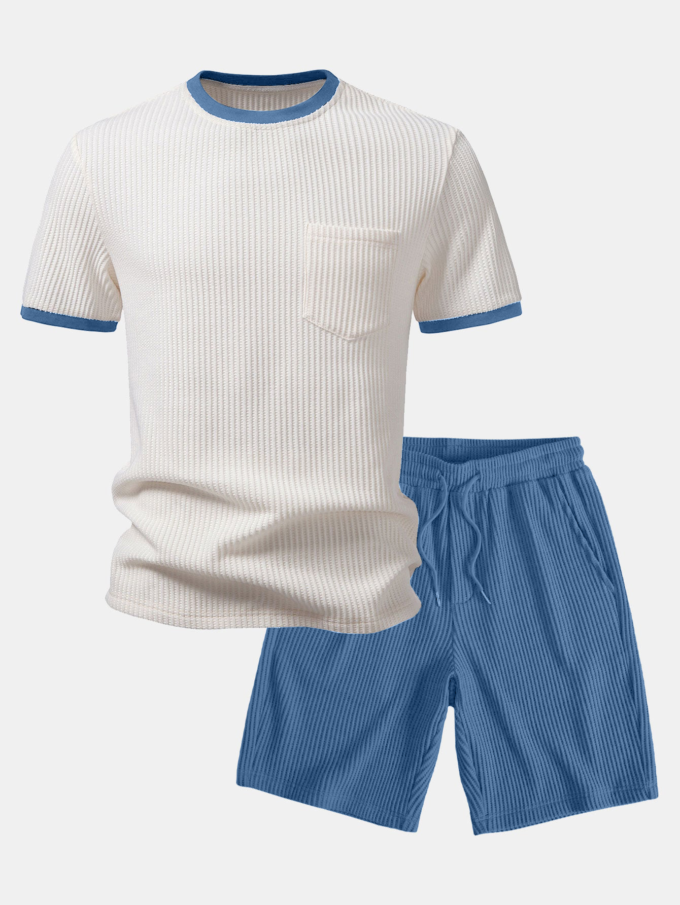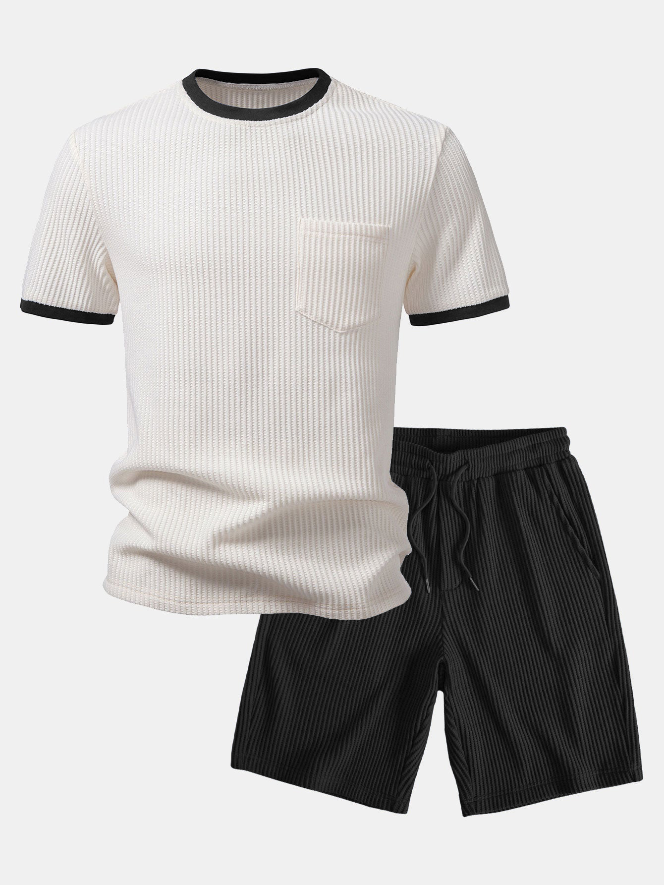 Men's Crew Neck Color-blocked T-shirt And Pants Set Ootd