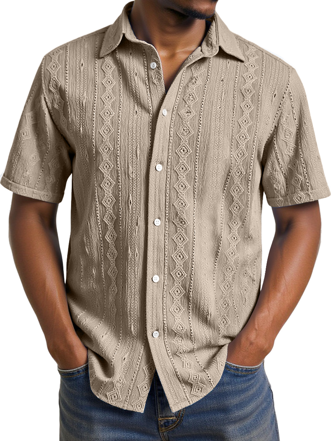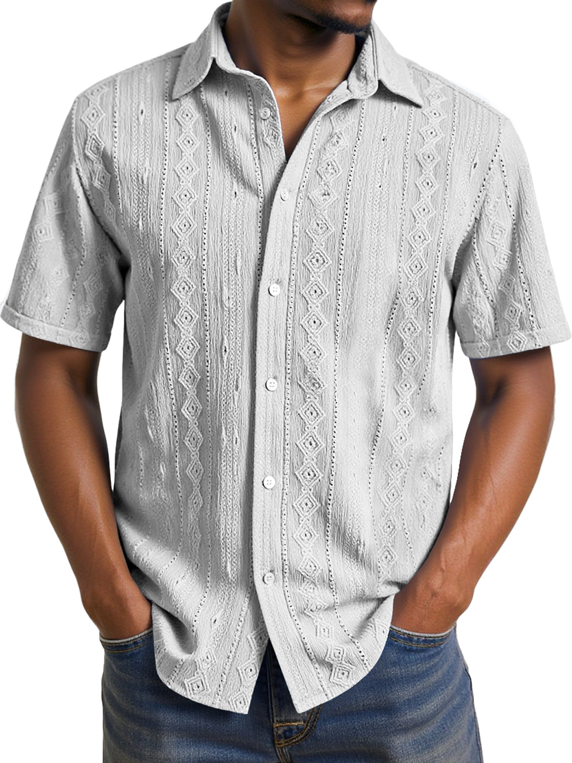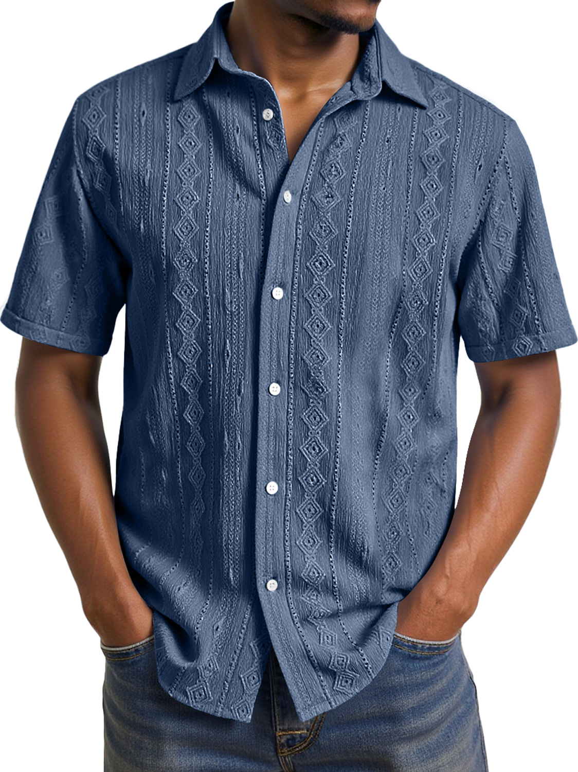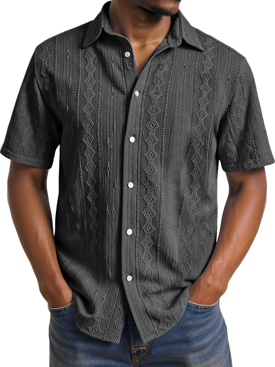 Men's Daily Casual Jacquard Texture Comfortable Short-sleeved Shirt