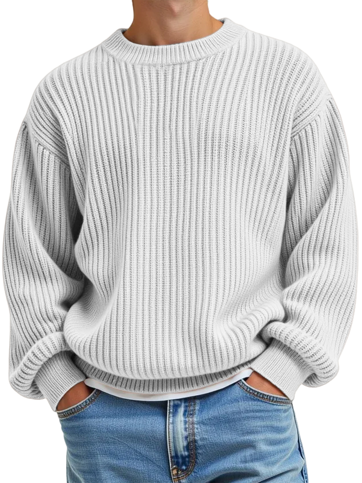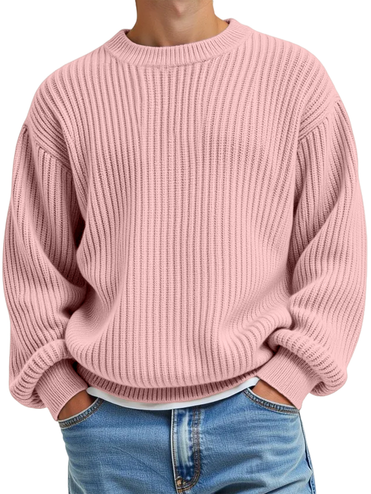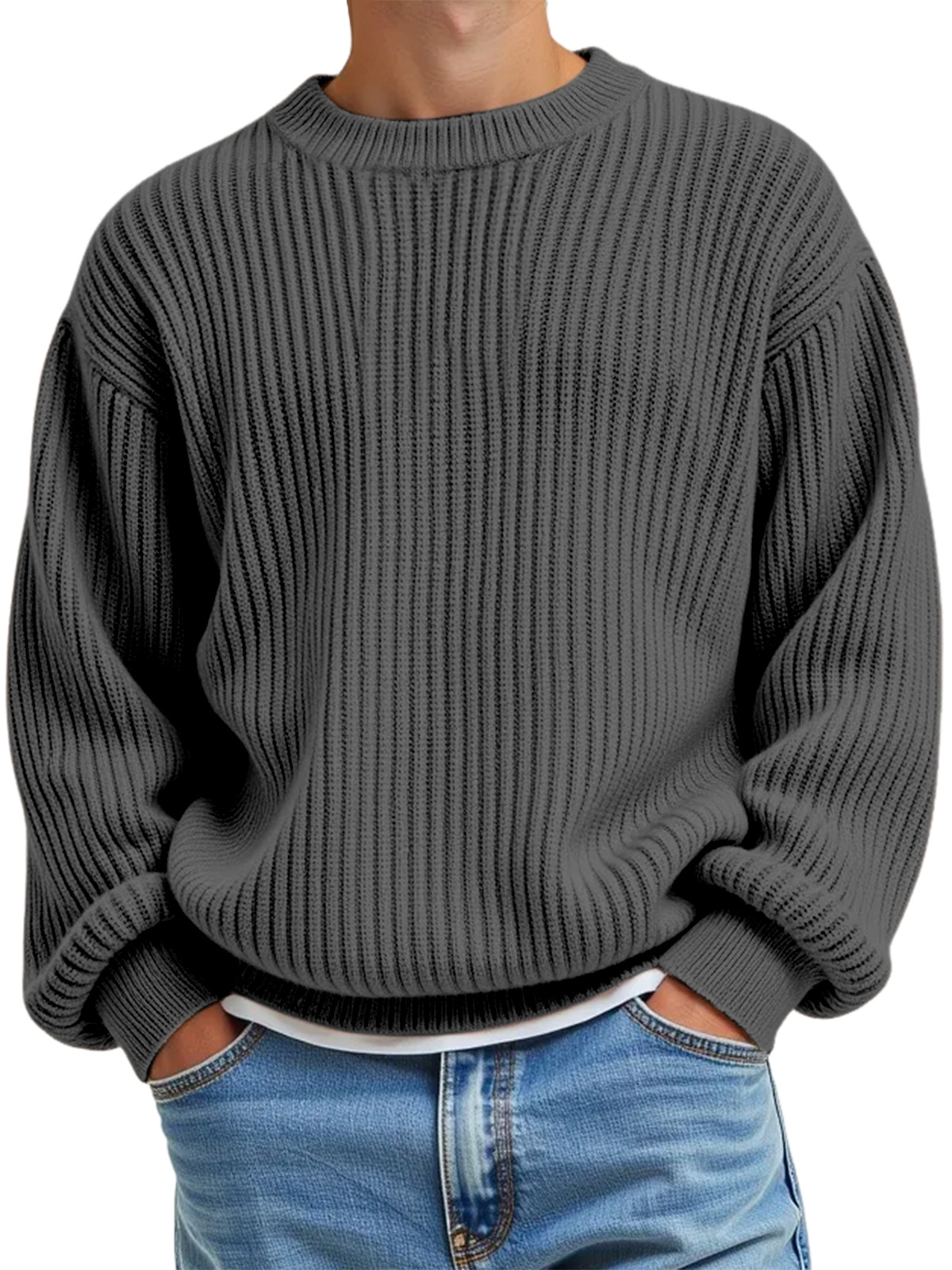 Men's Daily Casual Solid Color Knitted Crew Neck Sweater