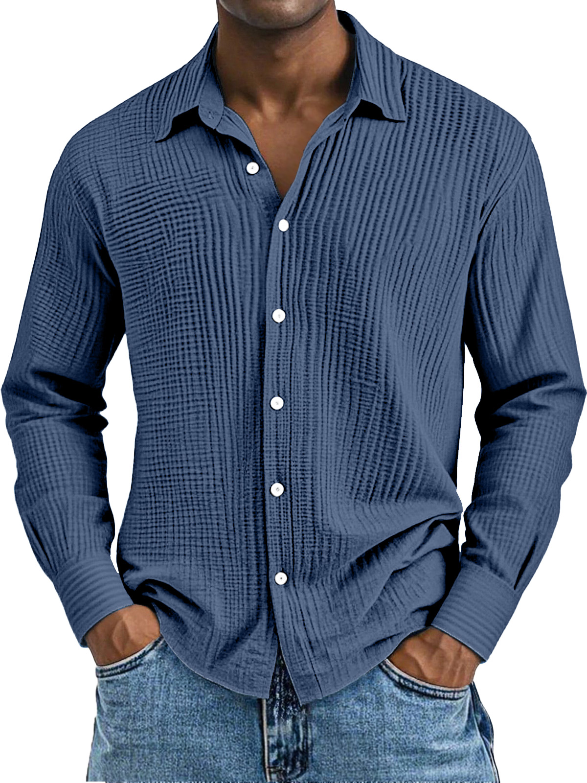 Men's Daily Casual Solid Color Pure Cotton Pleated Texture Long-sleeved Shirt