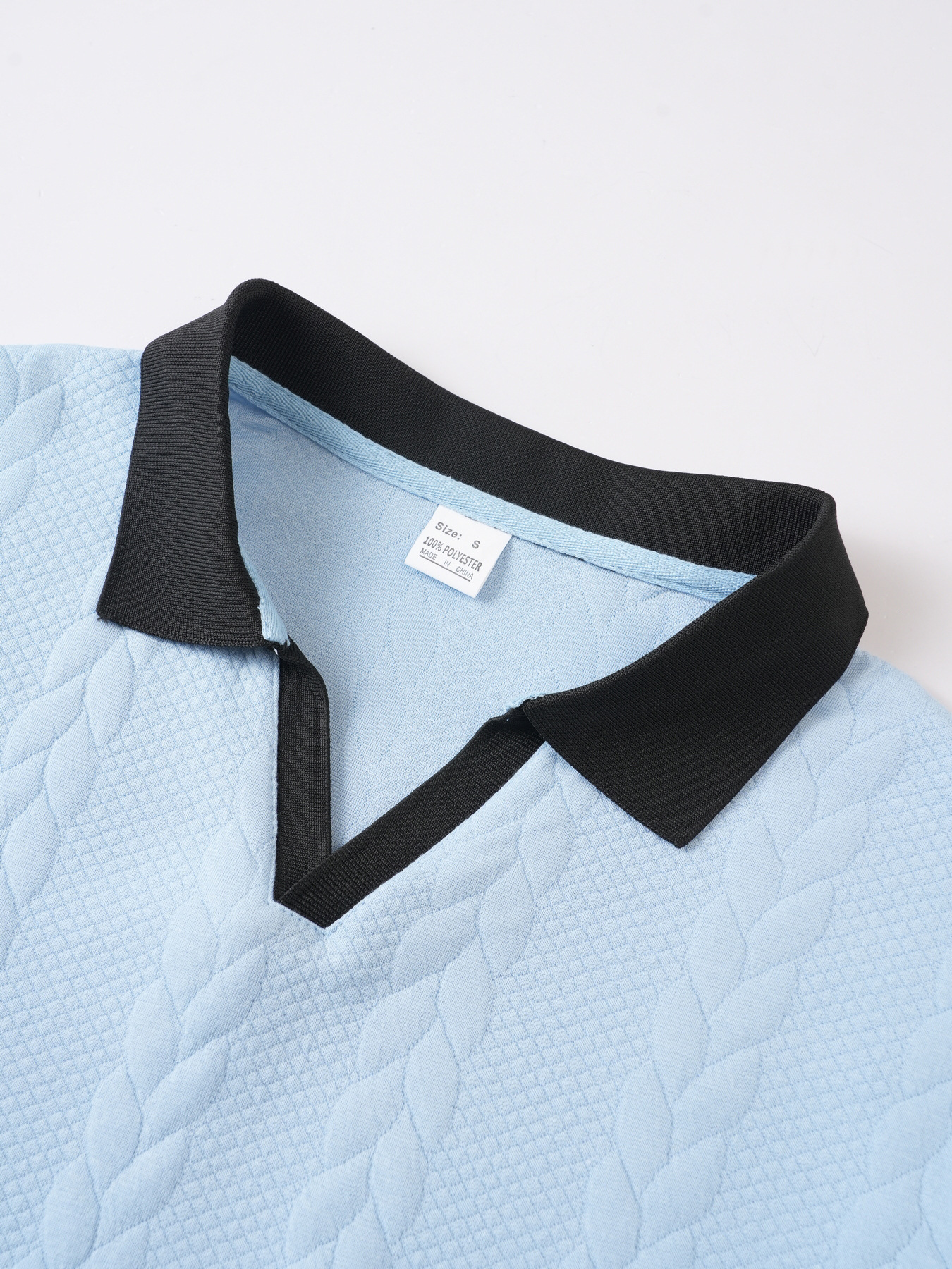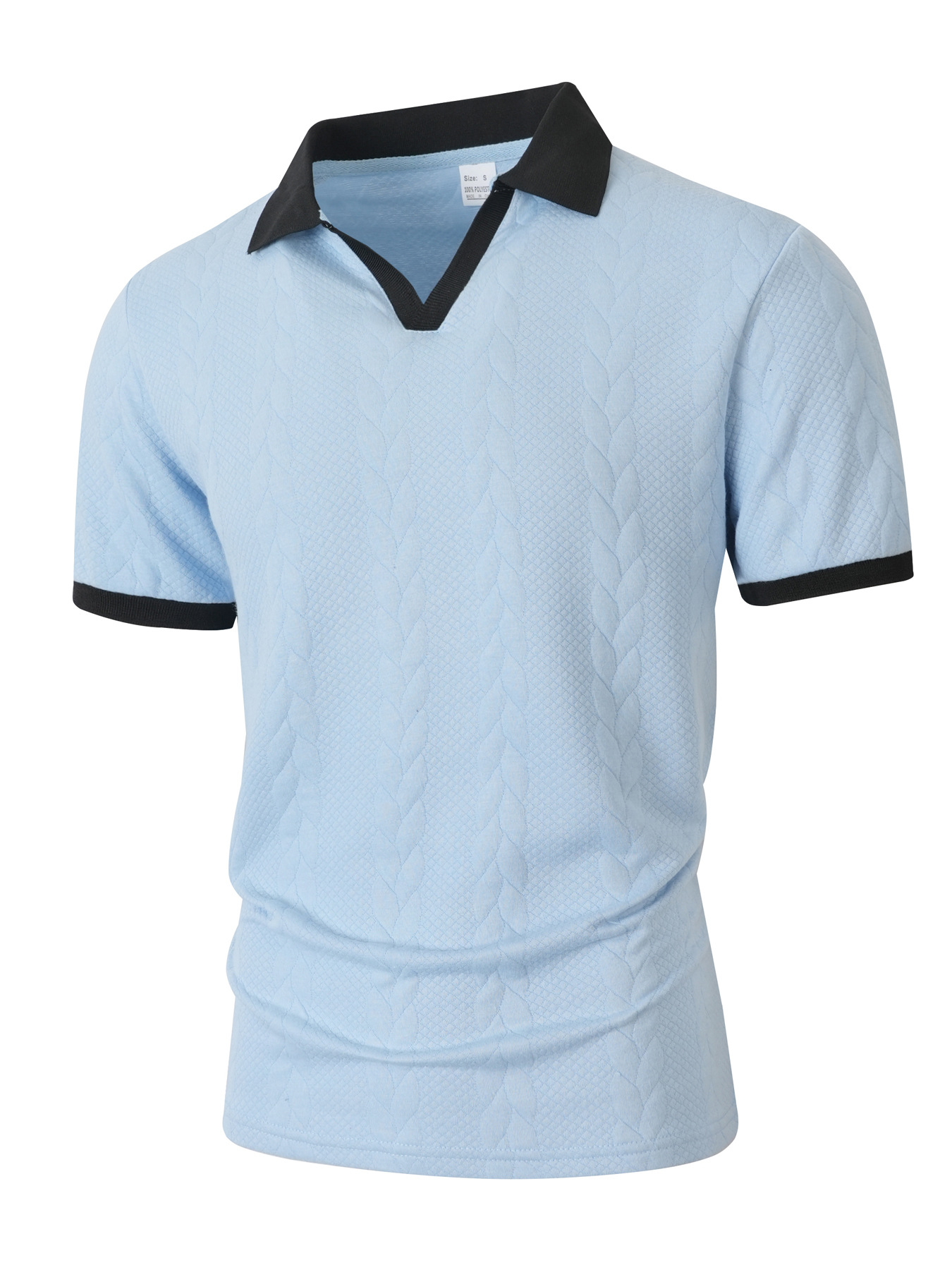 Men's Daily Contrast Jacquard Short Sleeve Polo Neck T-shirt