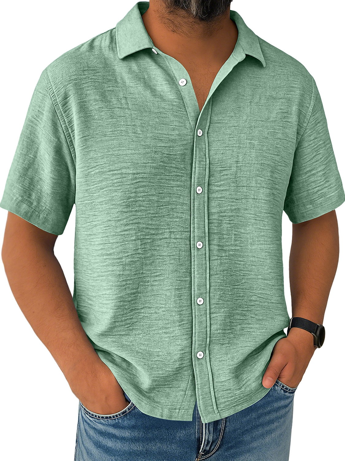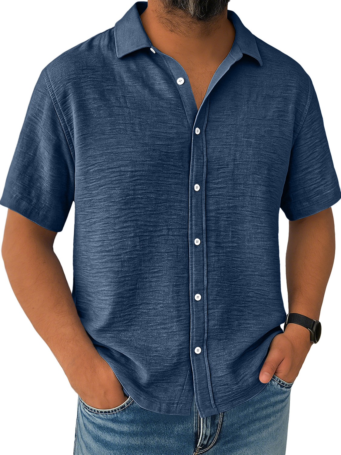 Men's Daily Loose Casual Breathable Solid Color Button Long Sleeve Shirt
