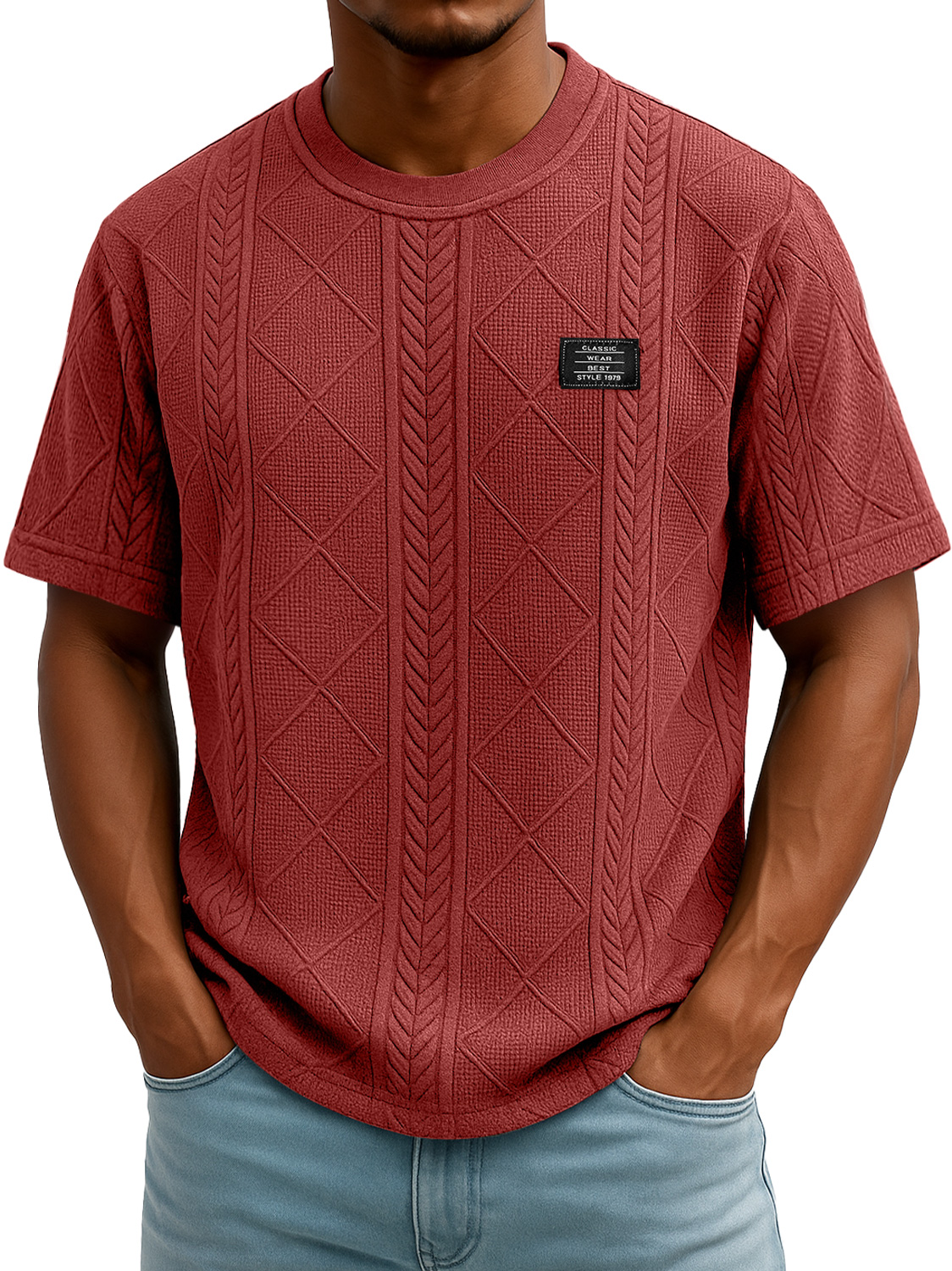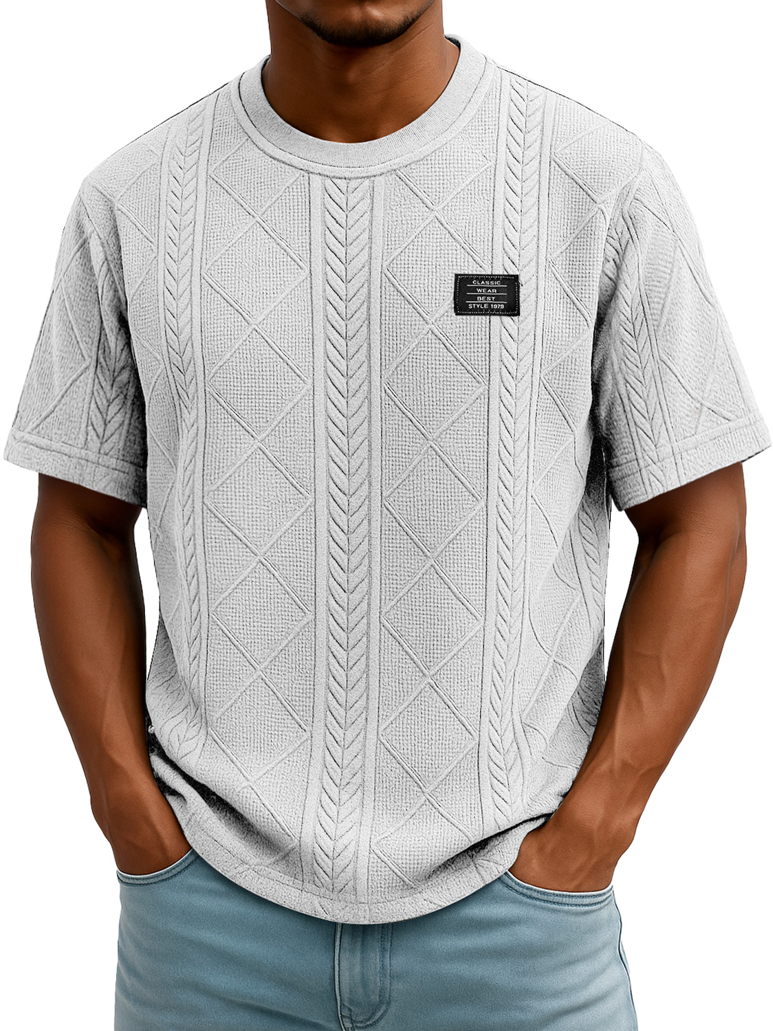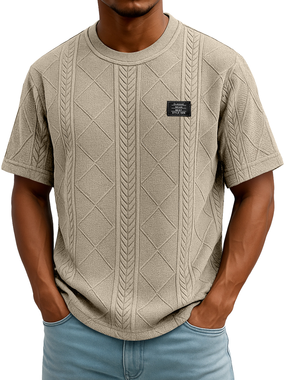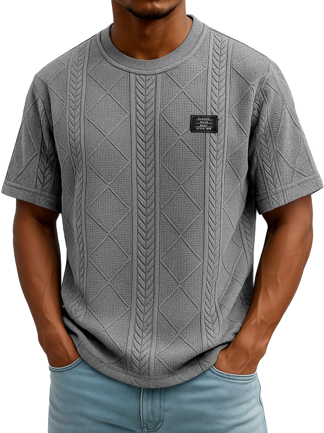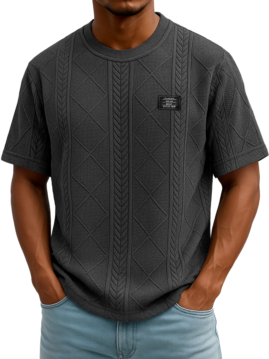 Men's Daily Round Neck Embroidered Logo Casual Texture Short Sleeve T-shirt