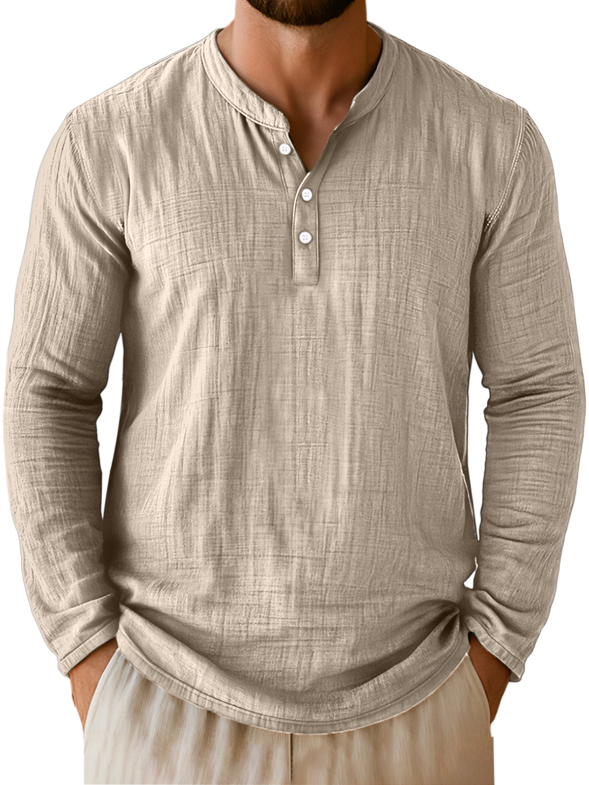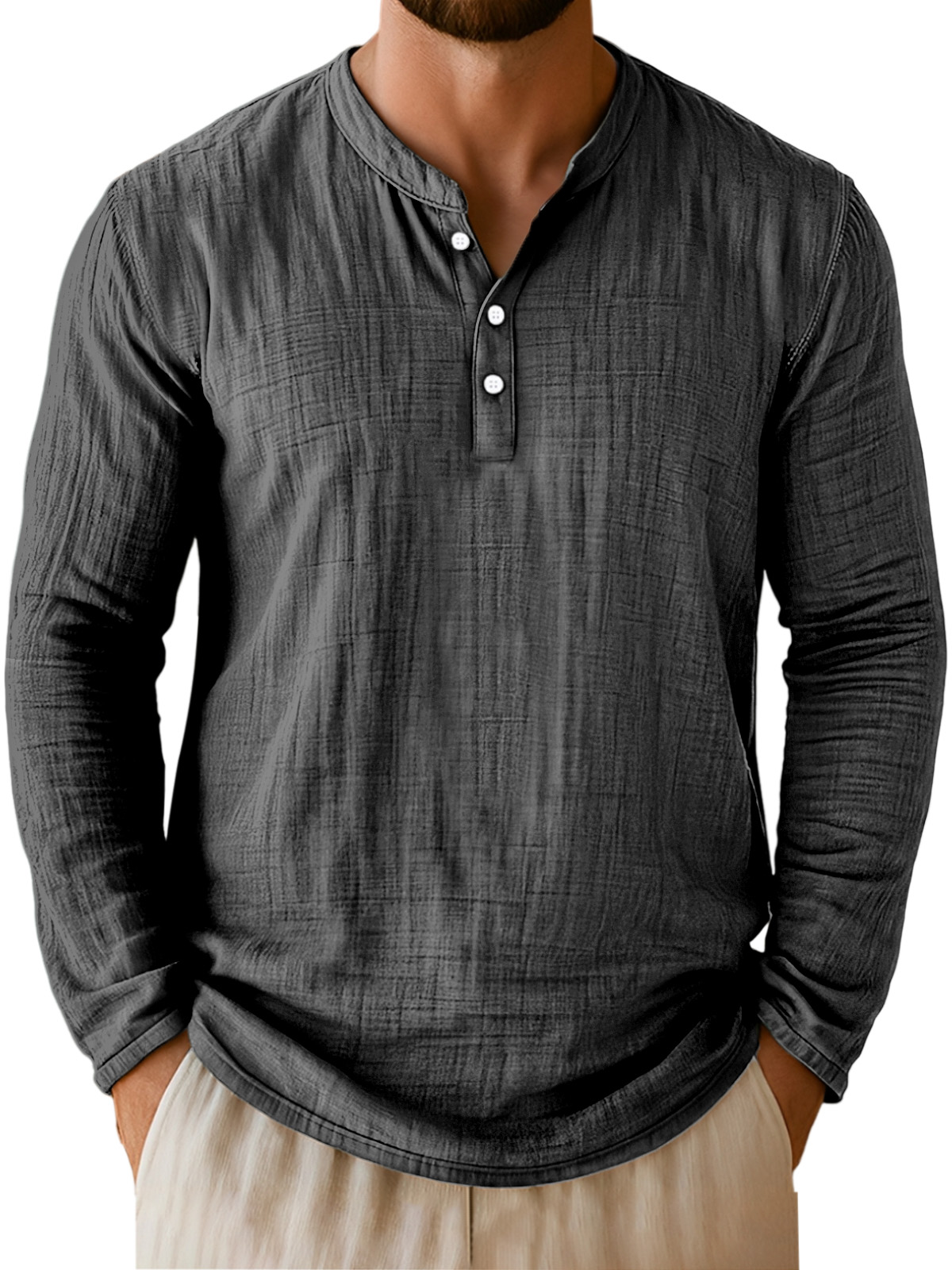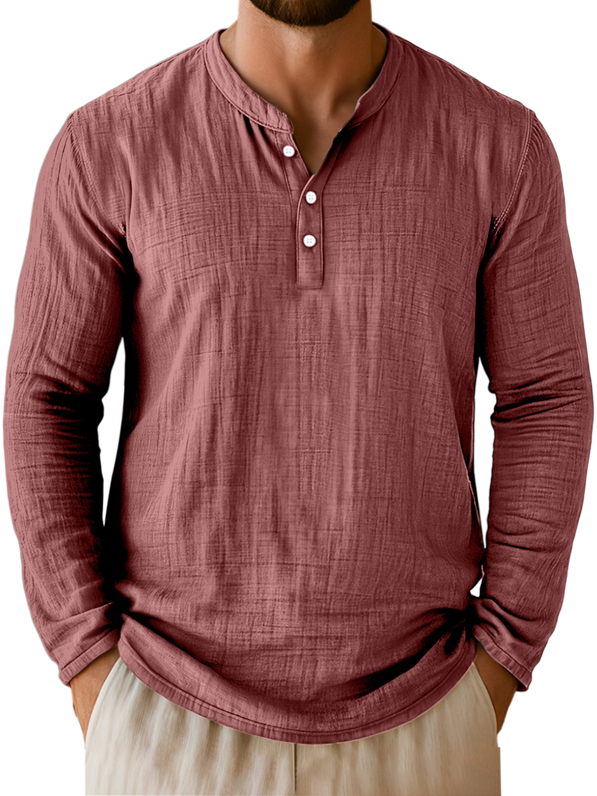 Men's Everyday Casual Breathable Solid Color Long Sleeve Henley Shirt