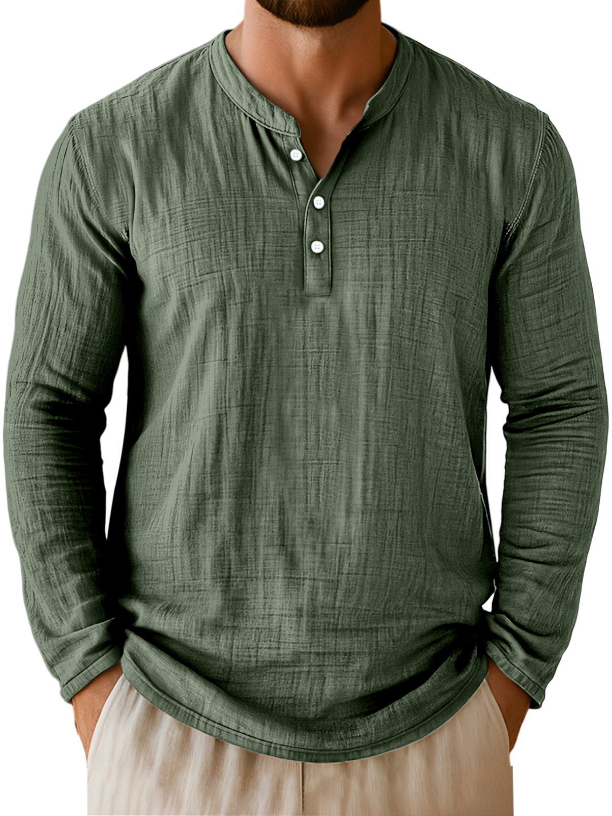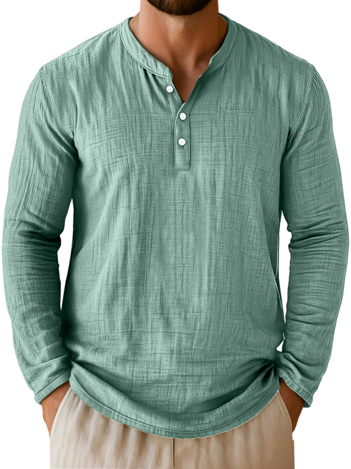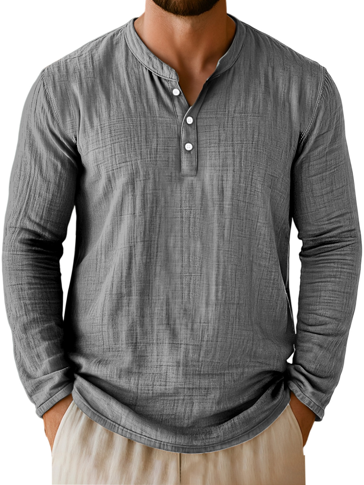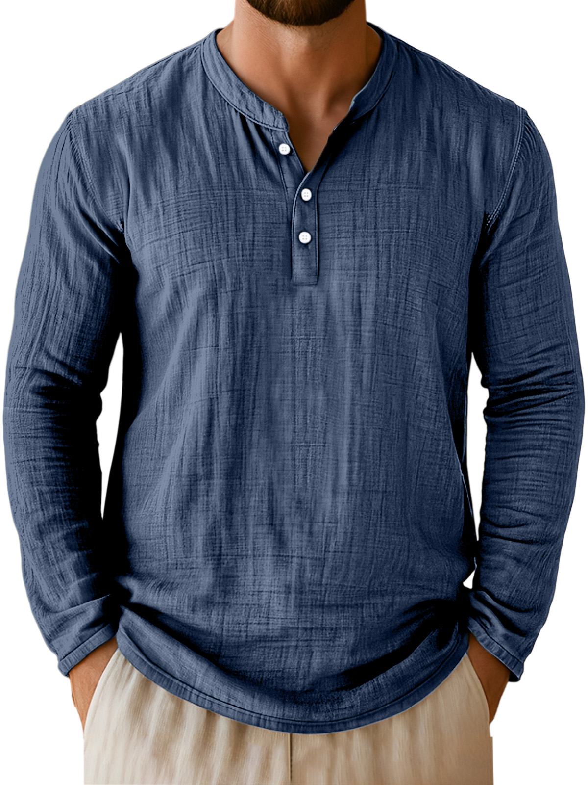 Men's Everyday Casual Breathable Solid Color Long Sleeve Henley Shirt