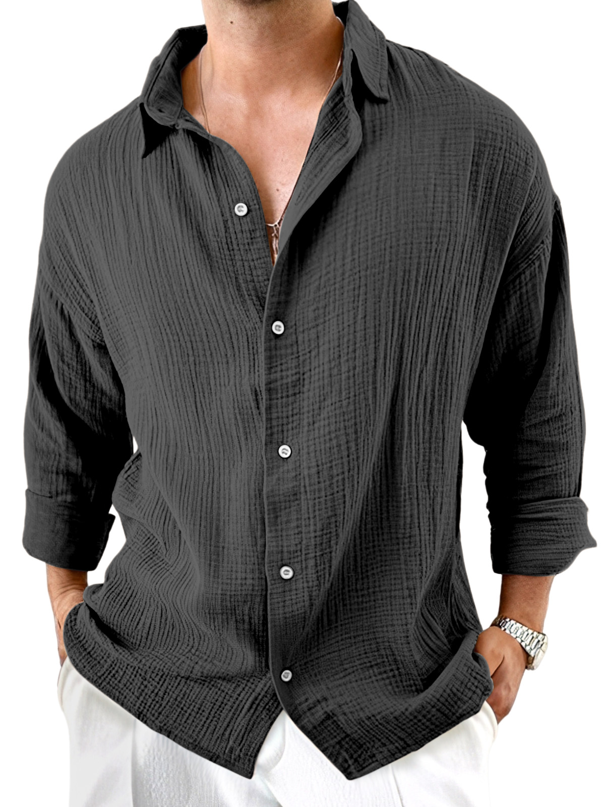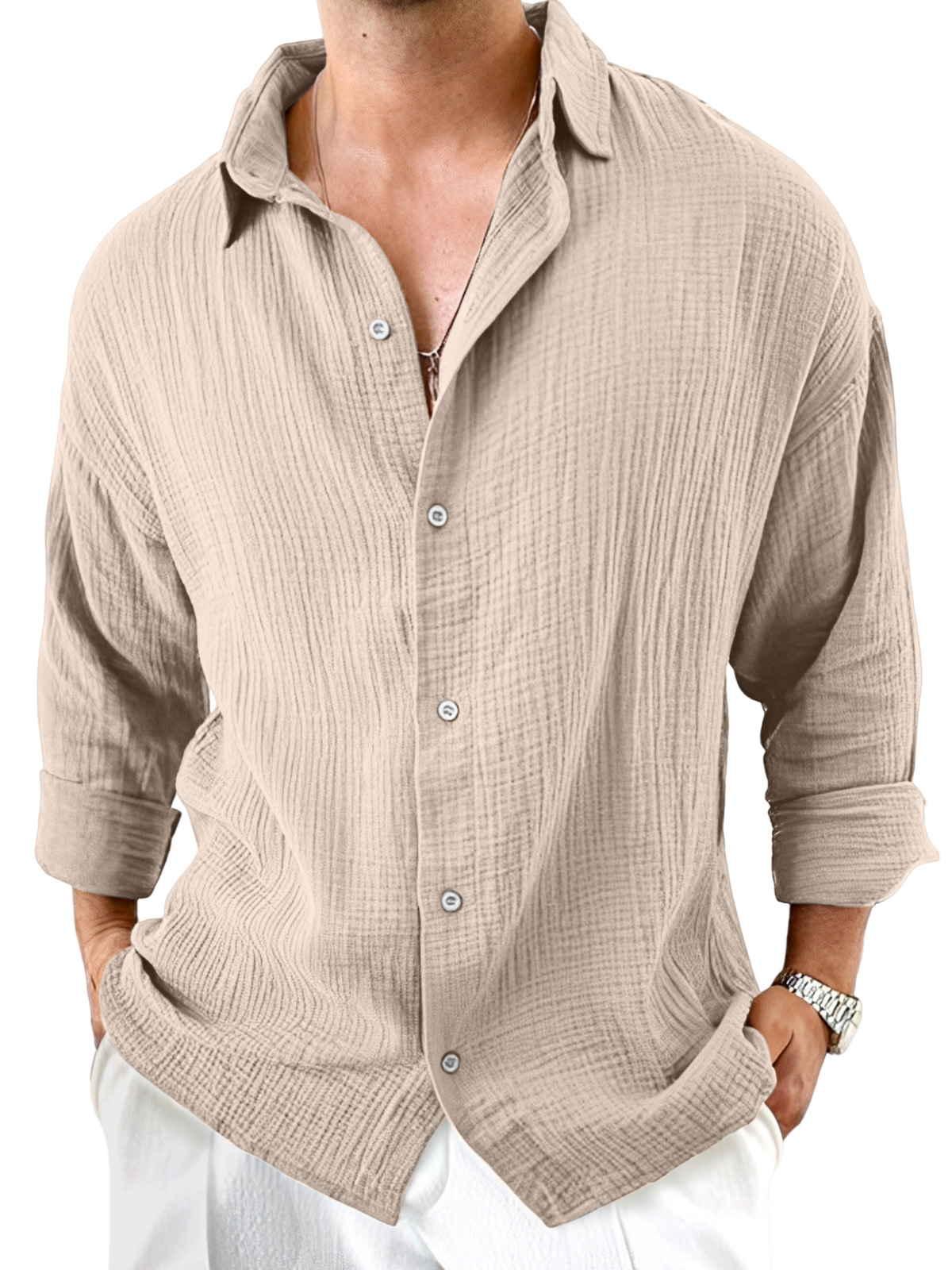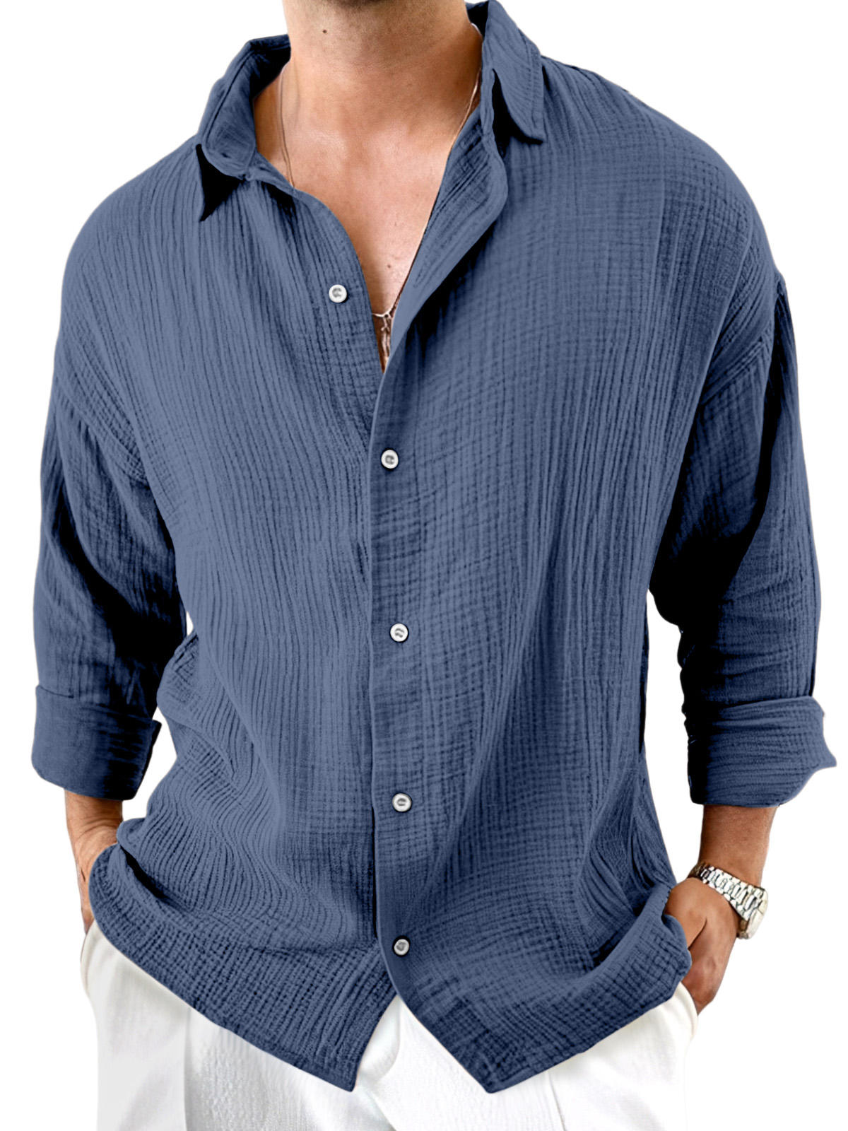 Men's Everyday Casual Cotton Pleated Lapel Long Sleeve Shirt