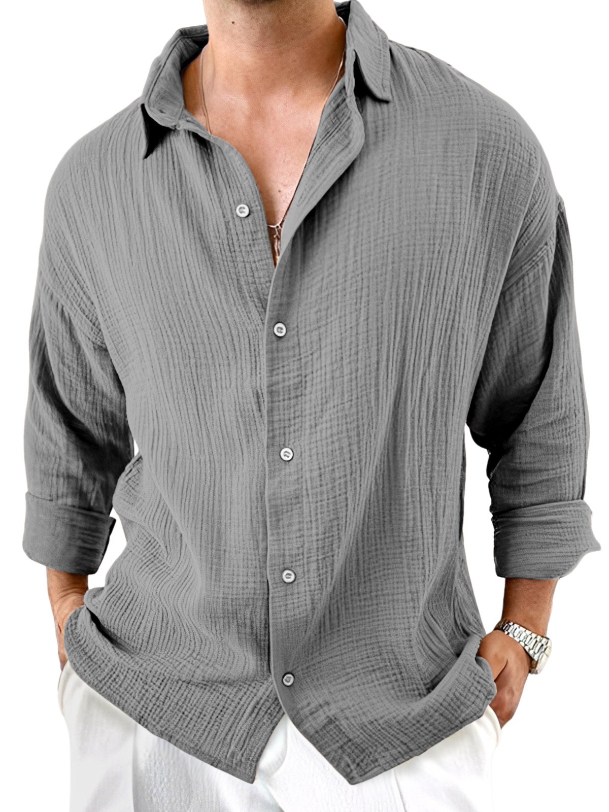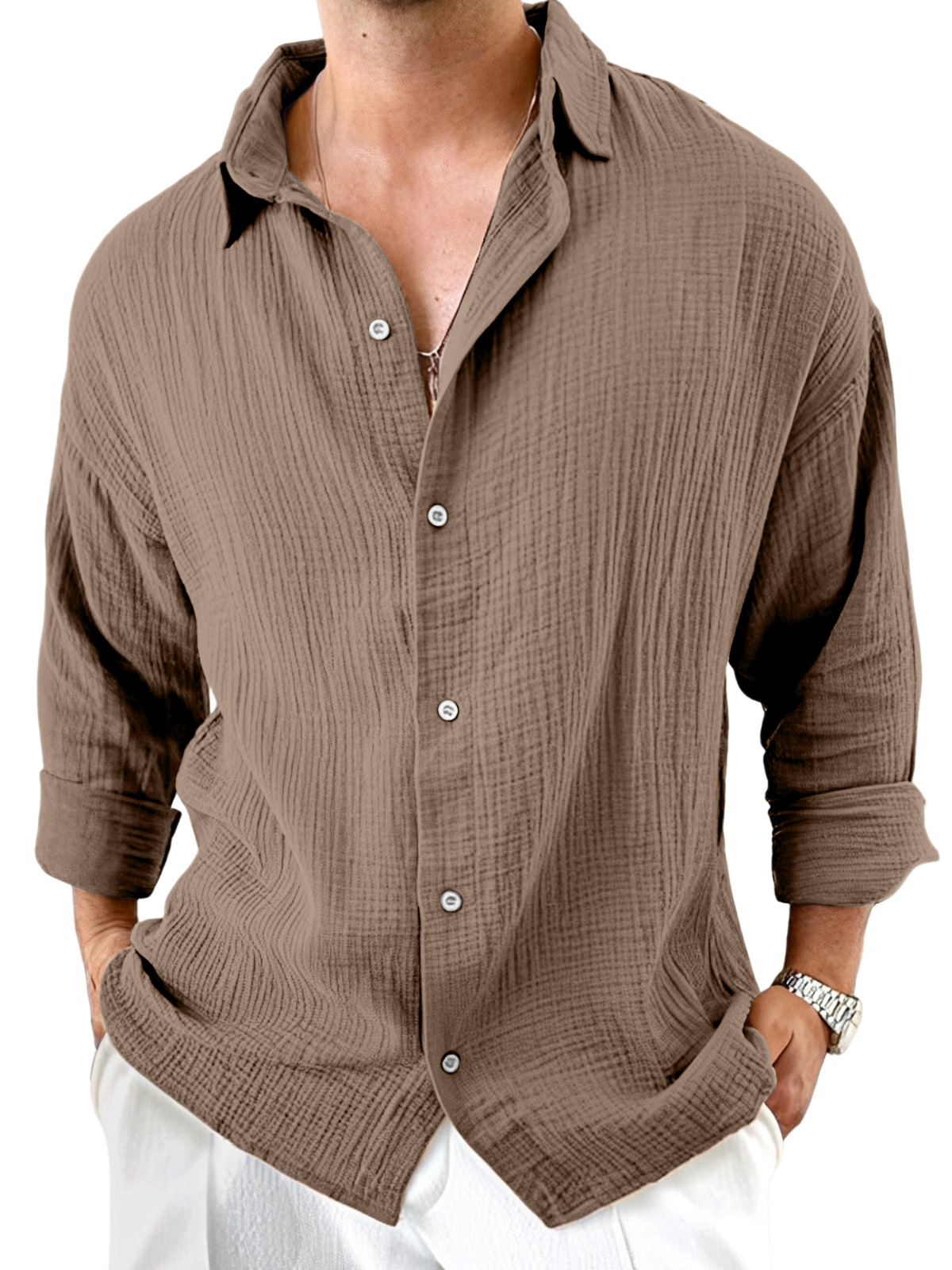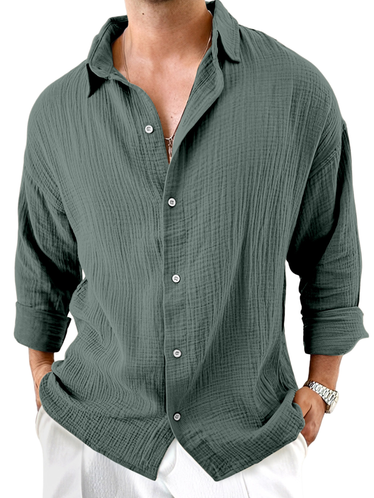 Men's Everyday Casual Cotton Pleated Lapel Long Sleeve Shirt
