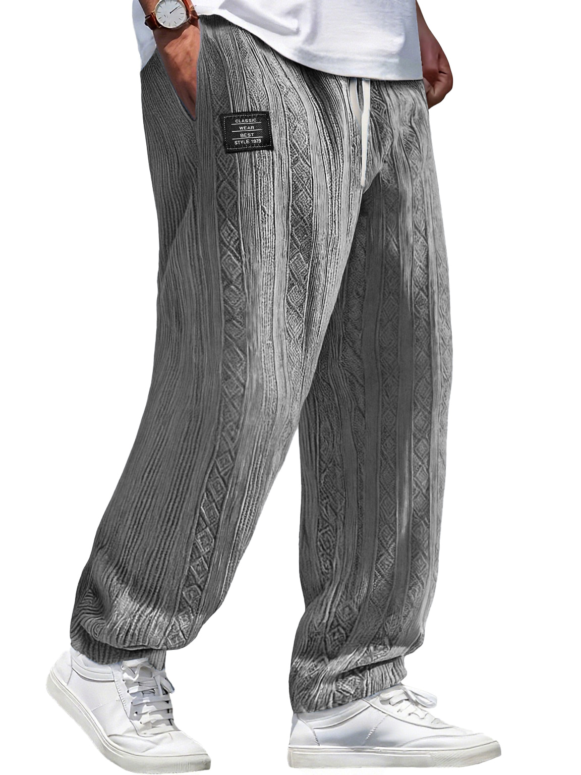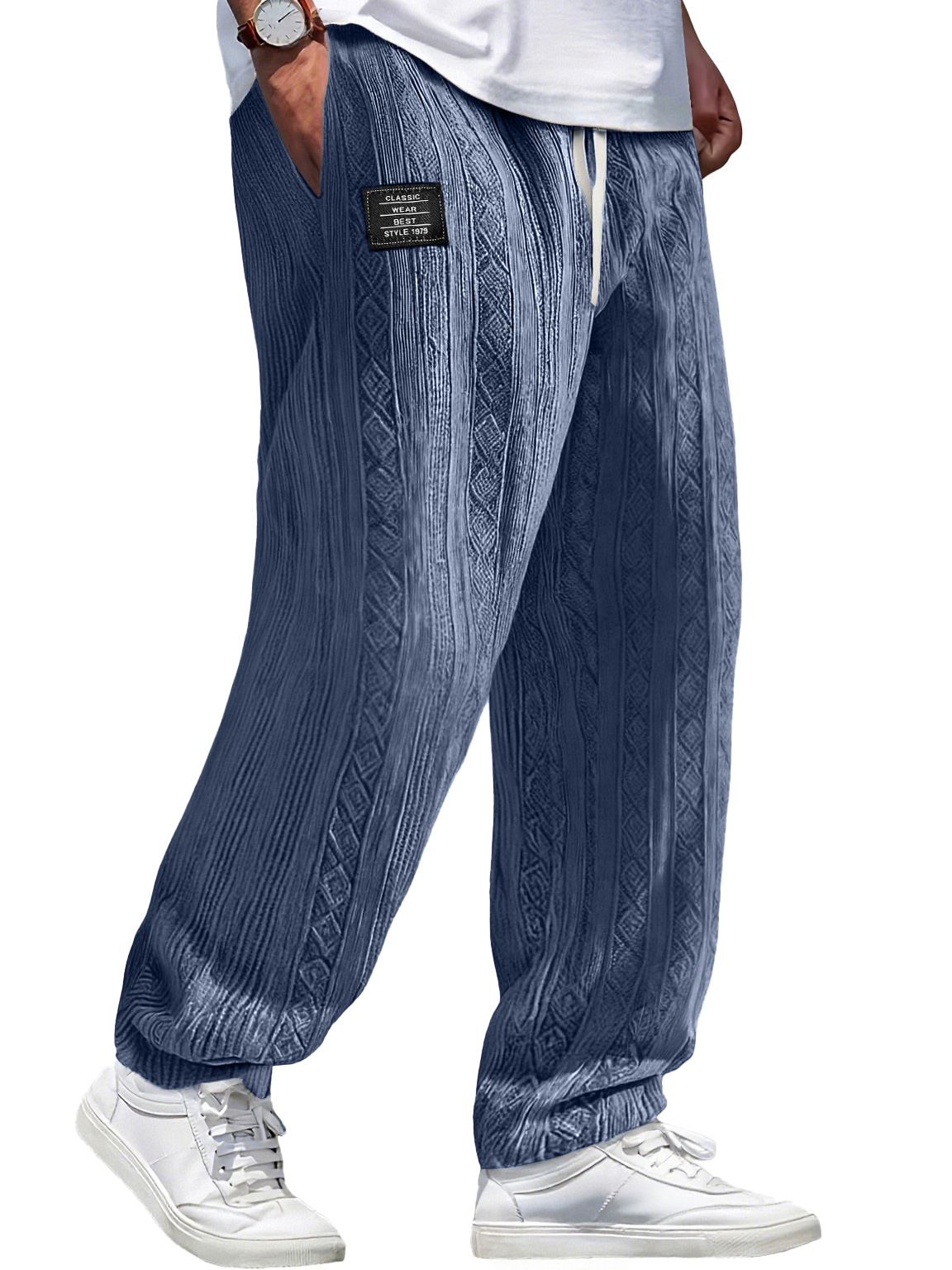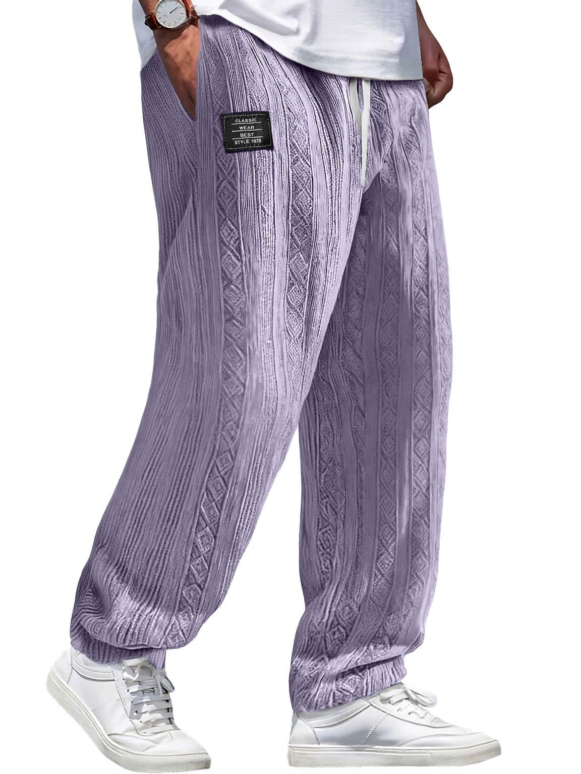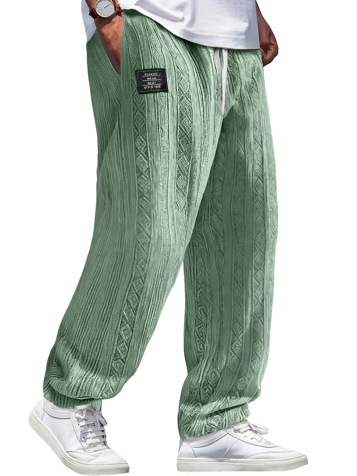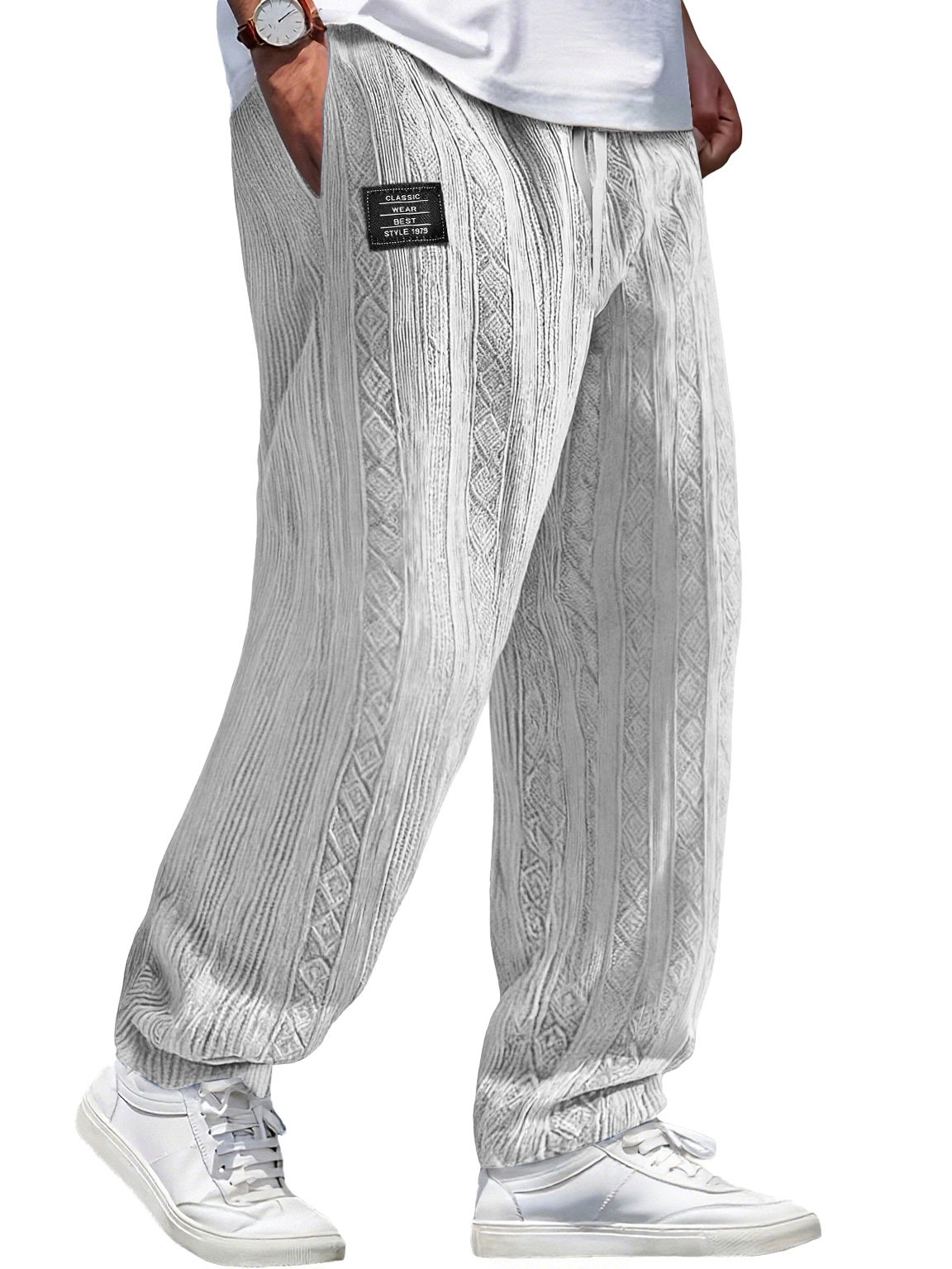 Men's Everyday Casual Waffle Embroidered Logo Loose Solid Color Trousers