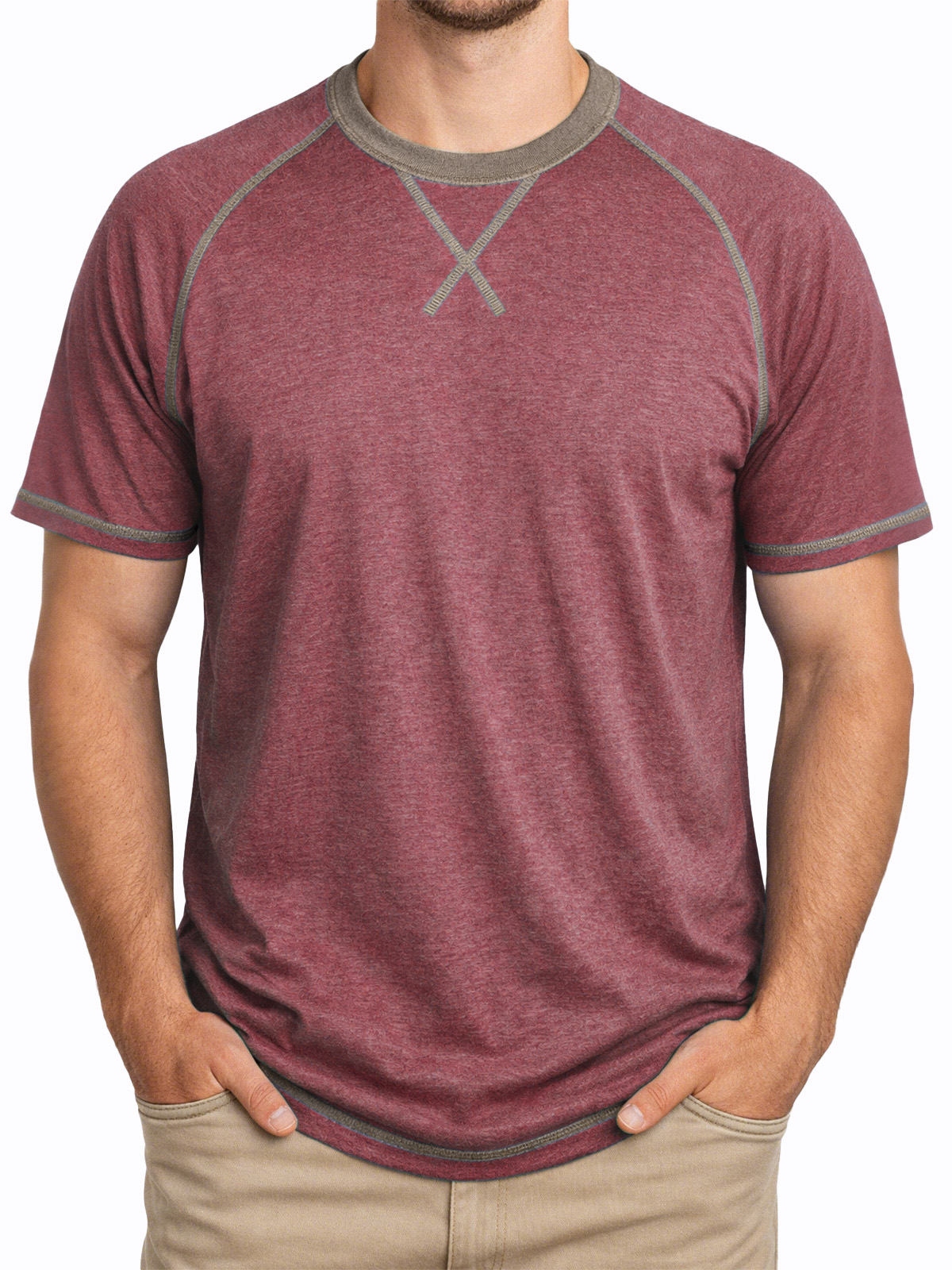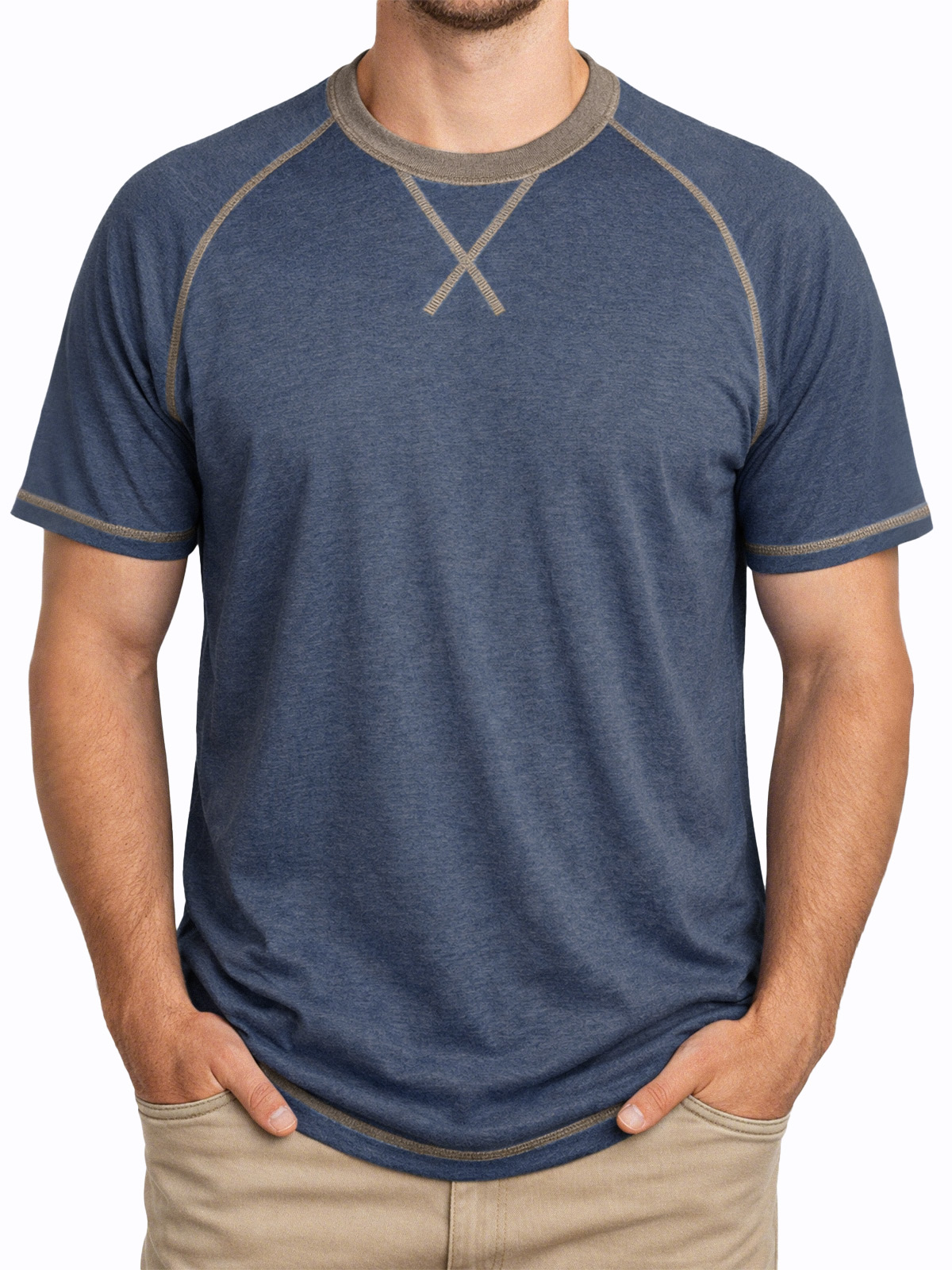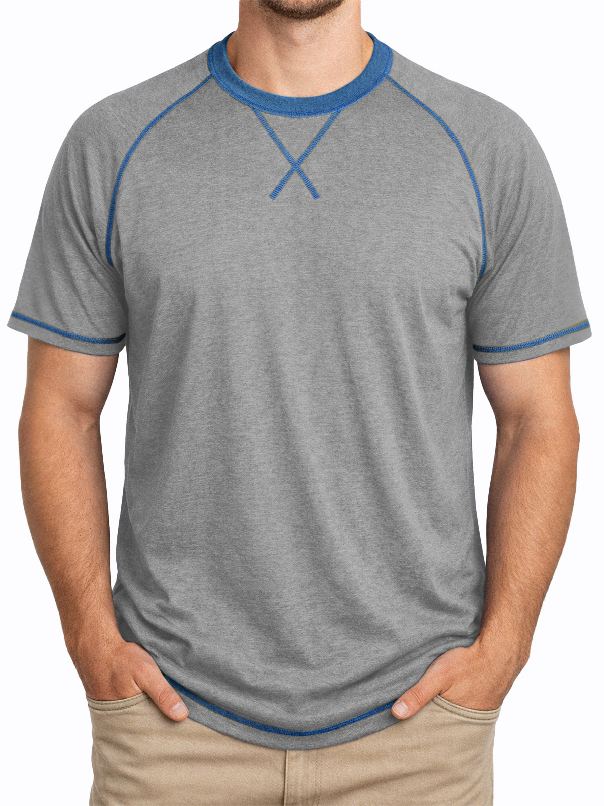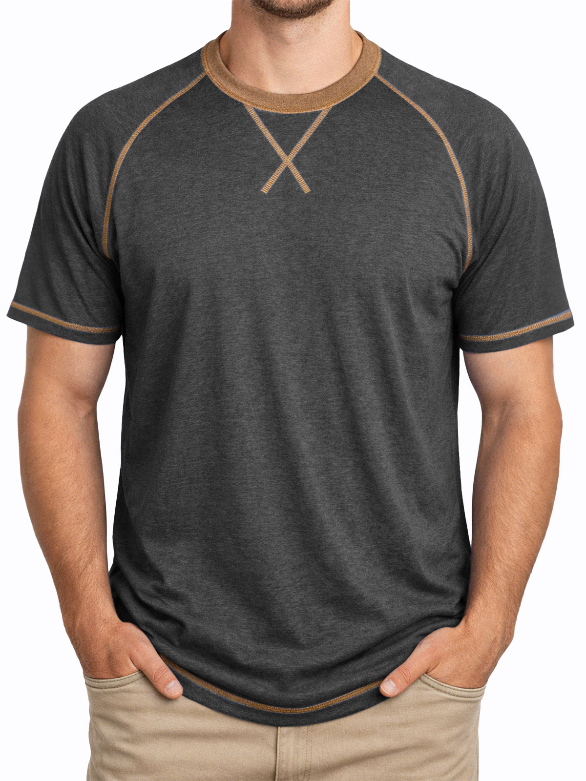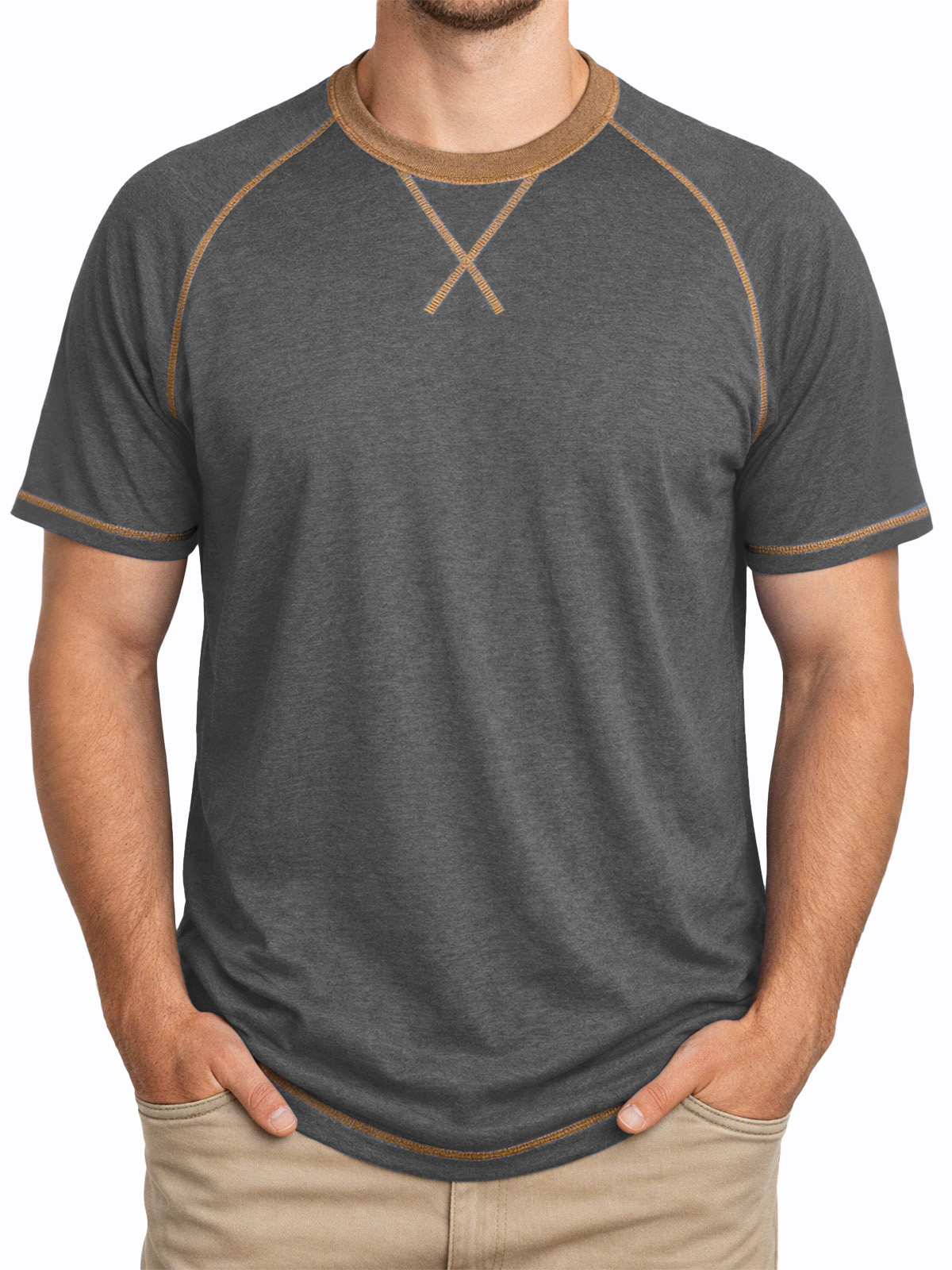 Men's Everyday Comfortable Stitched Panel Crew Neck Short-sleeve T-shirt