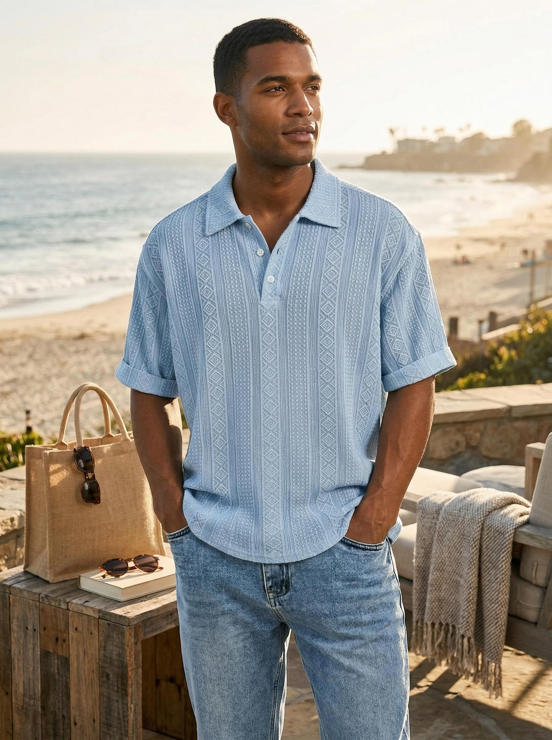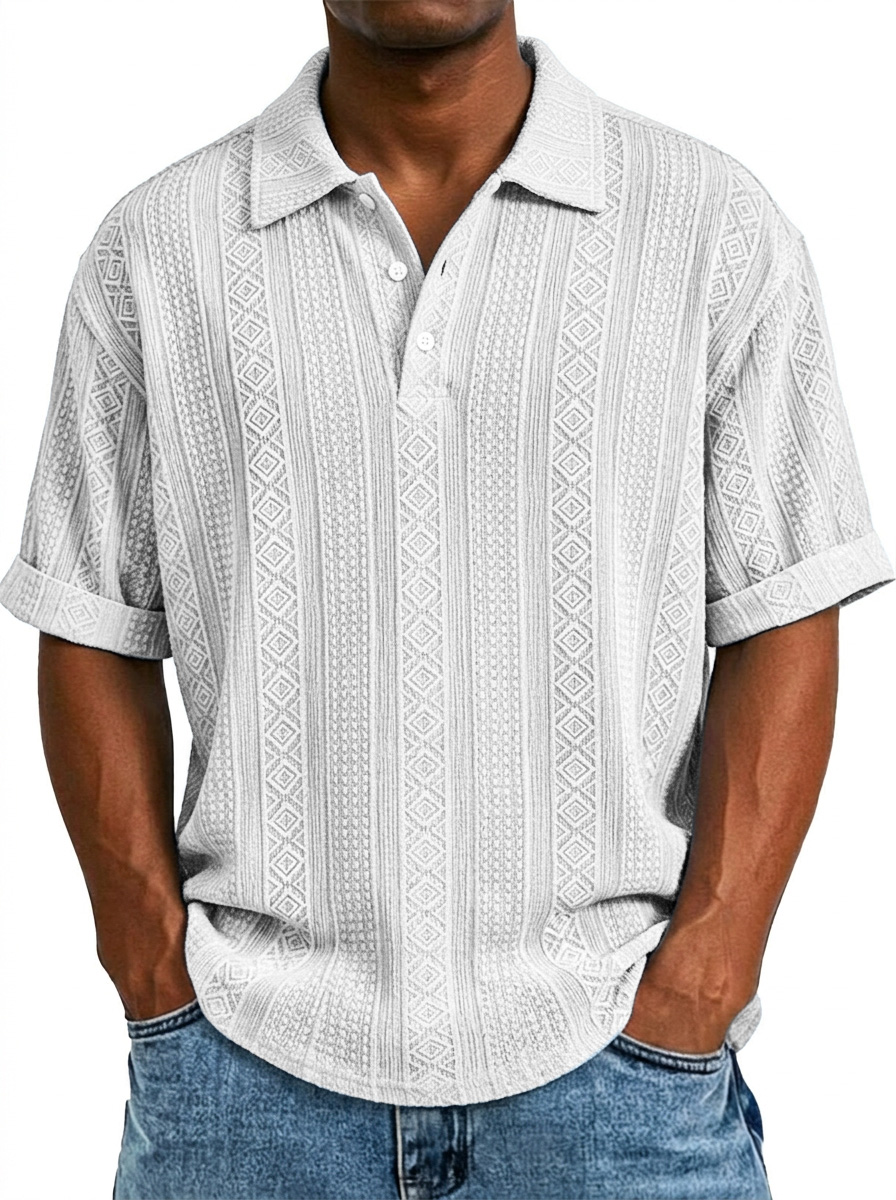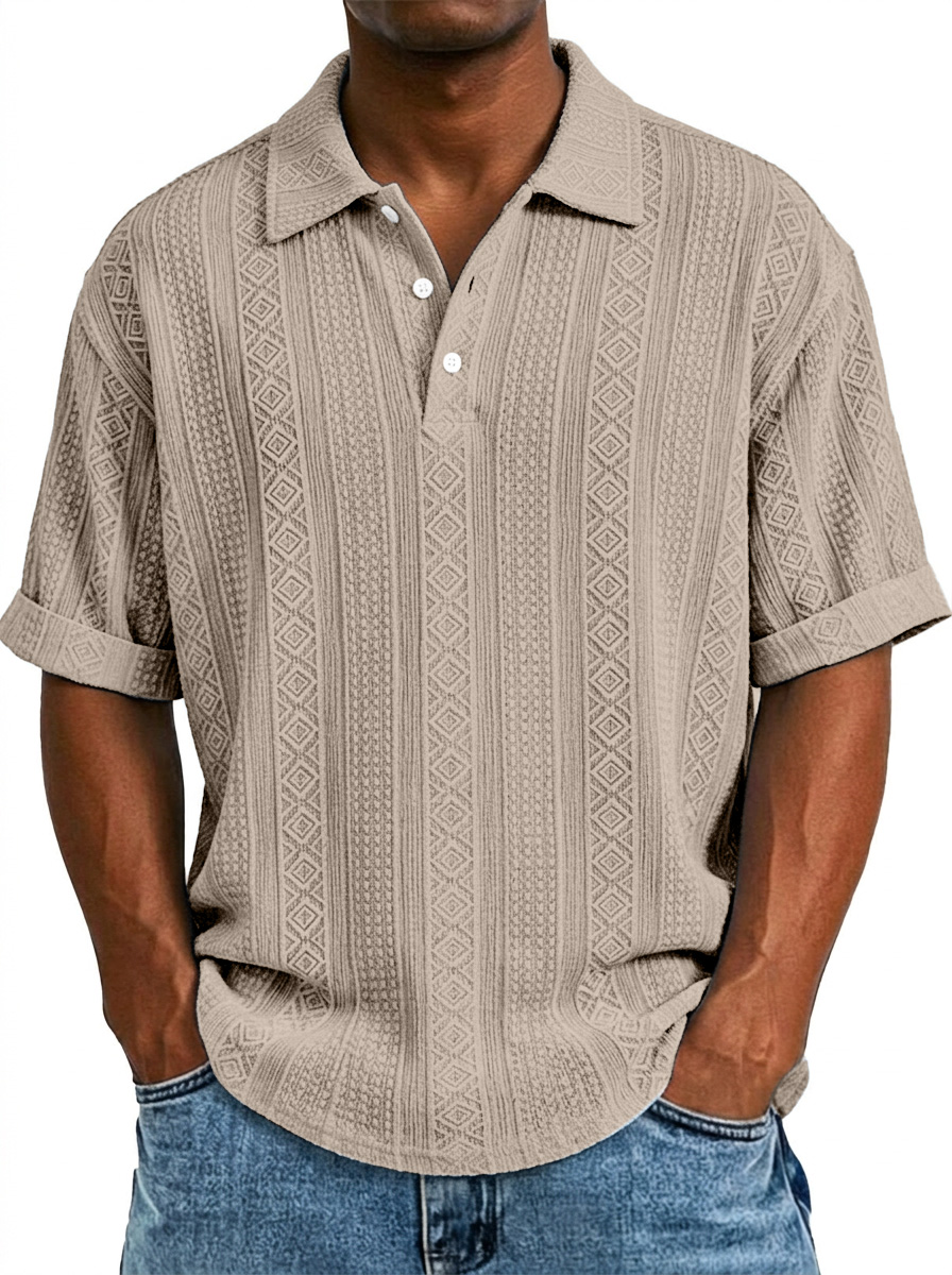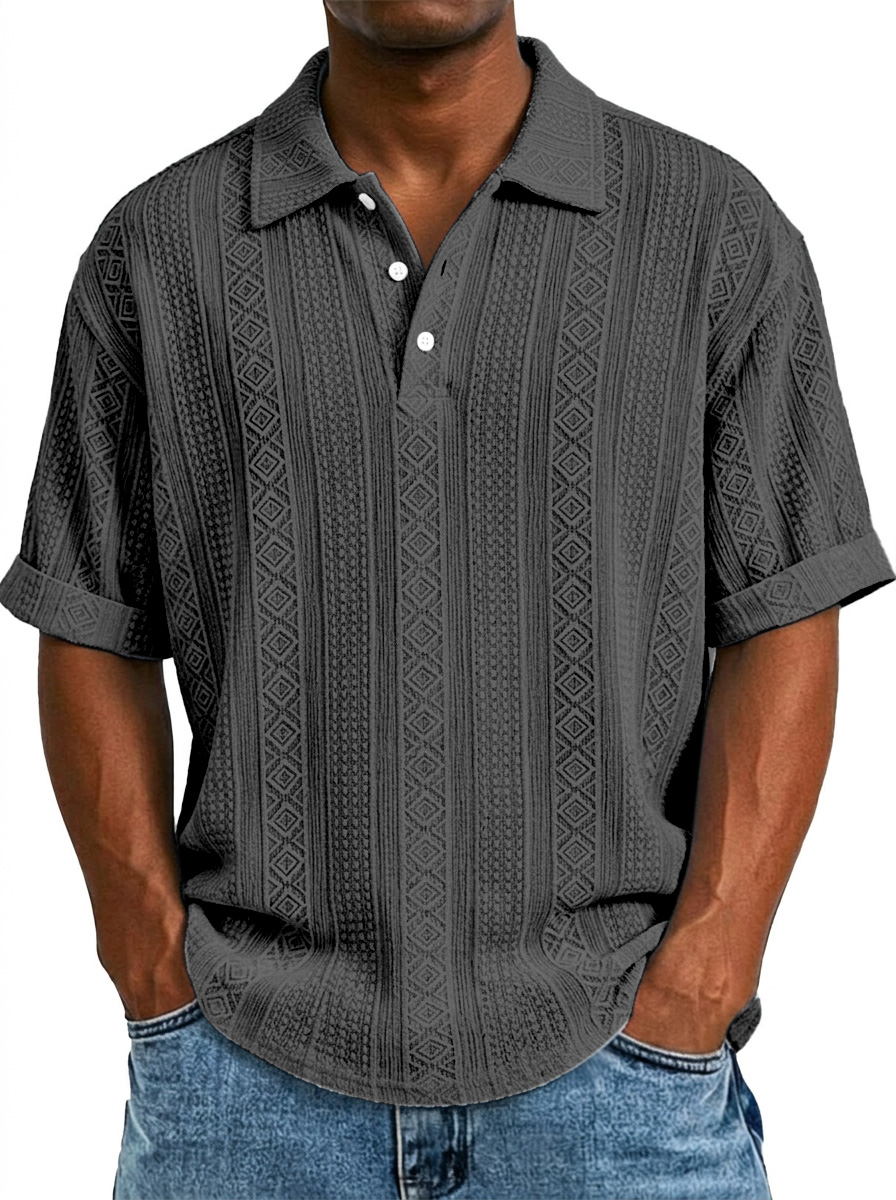 Men's Everyday Solid Color Textured Button Lapel Short Sleeve Polo Shirt