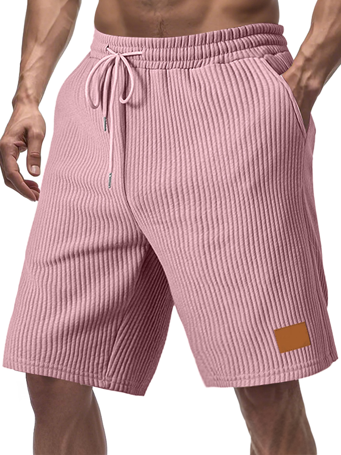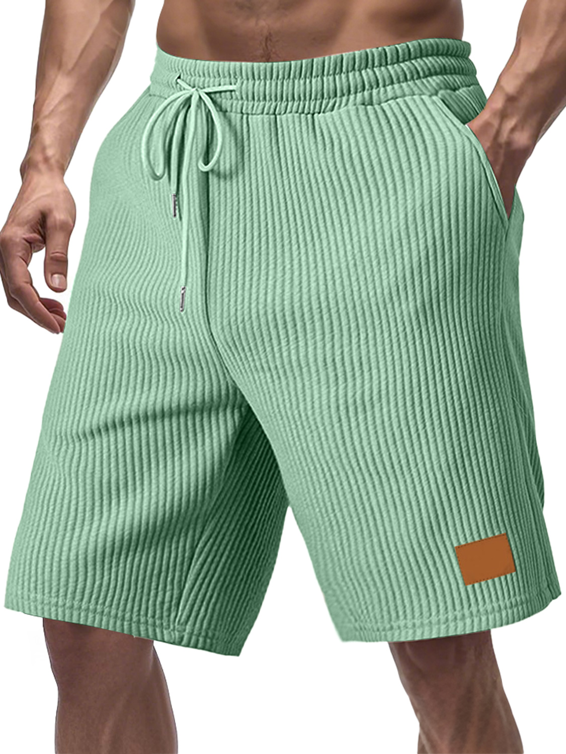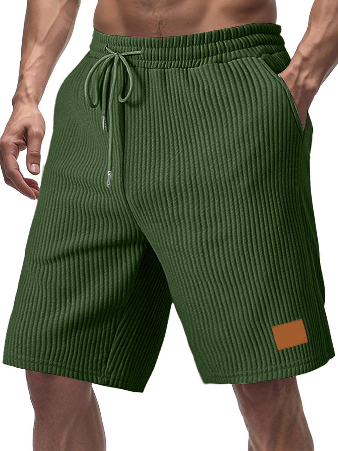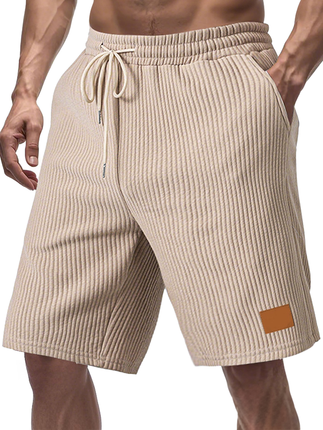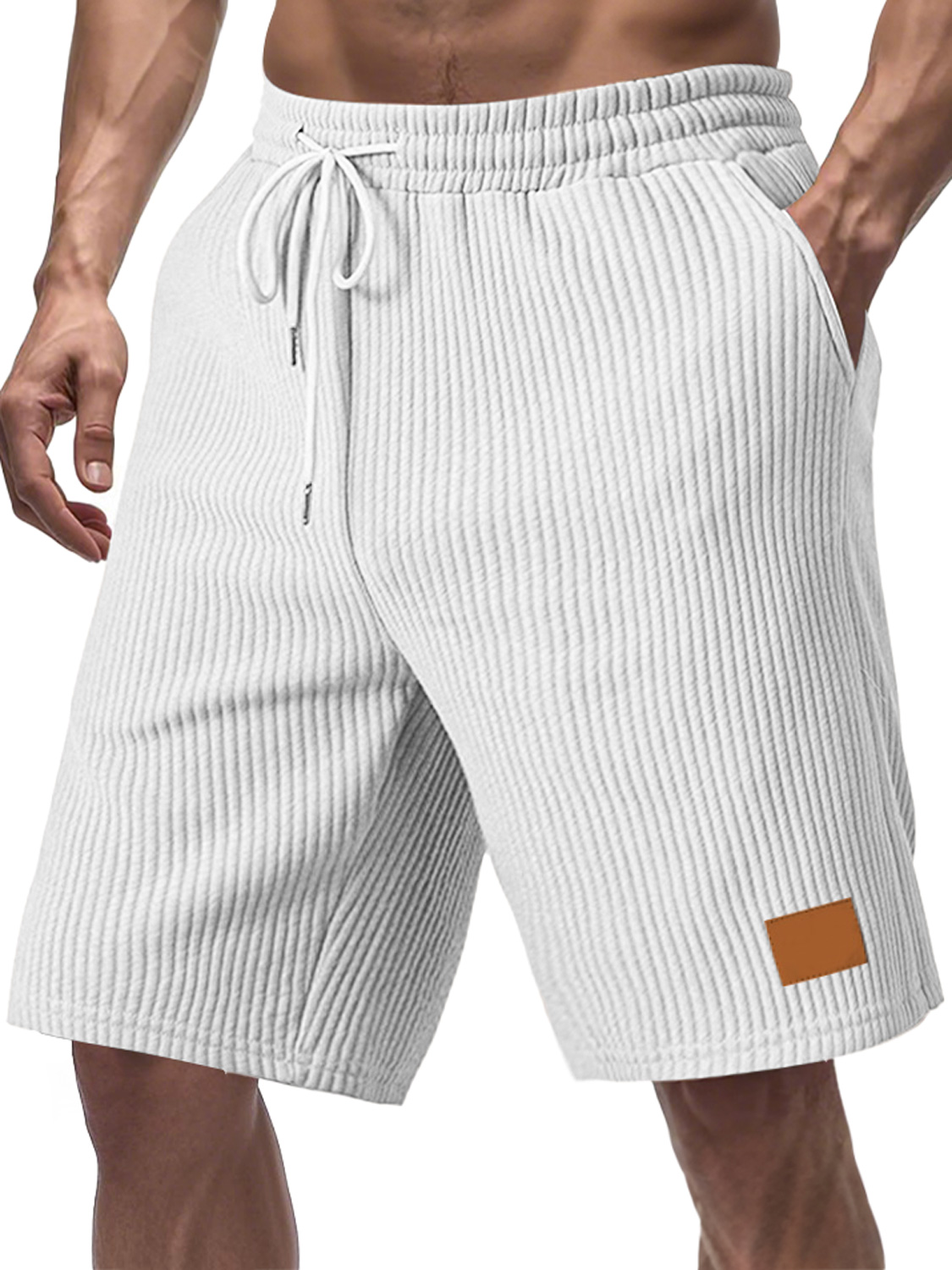 Men's Everyday Striped Embroidered Logo Drawstring Casual Shorts