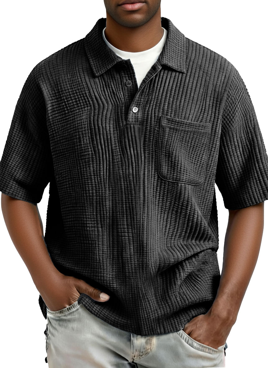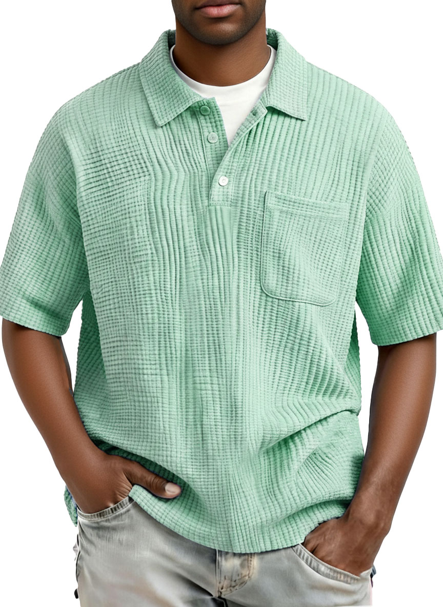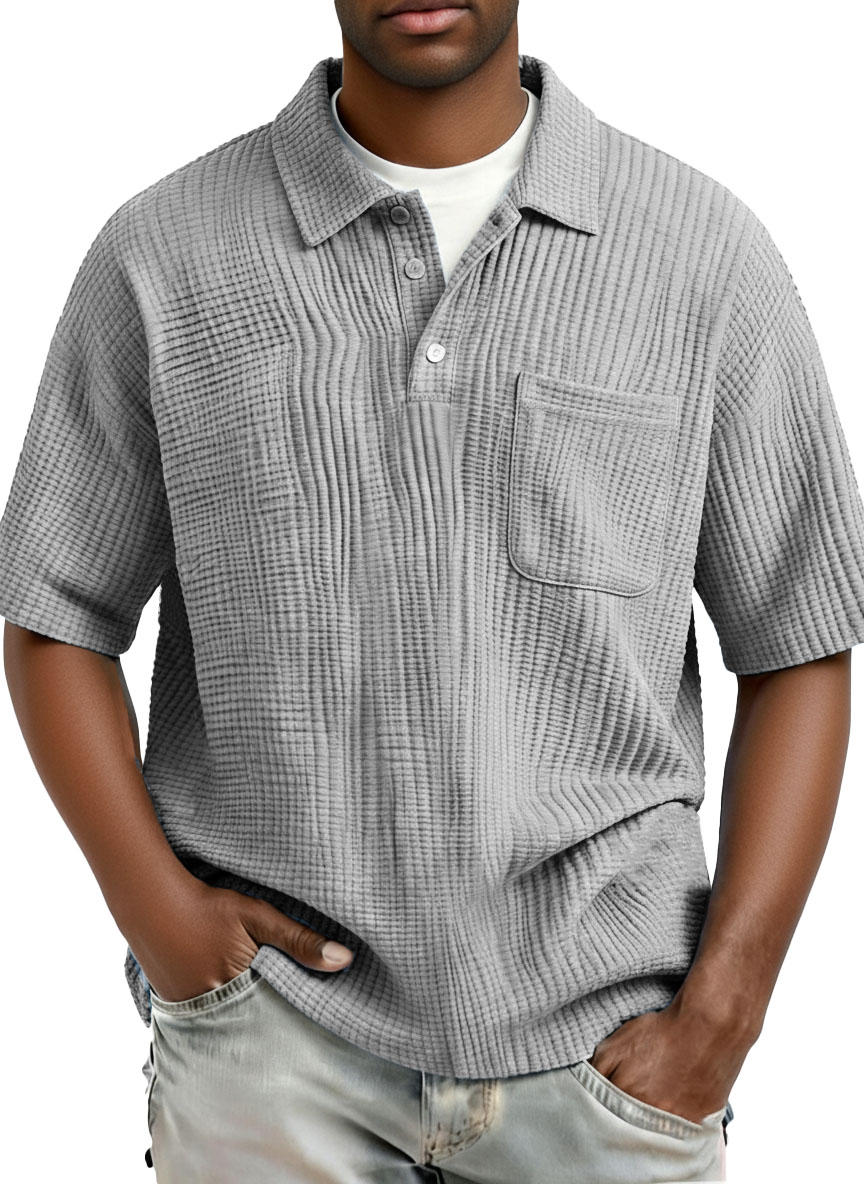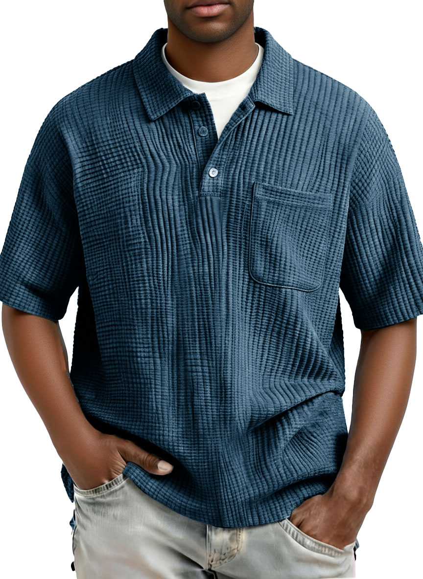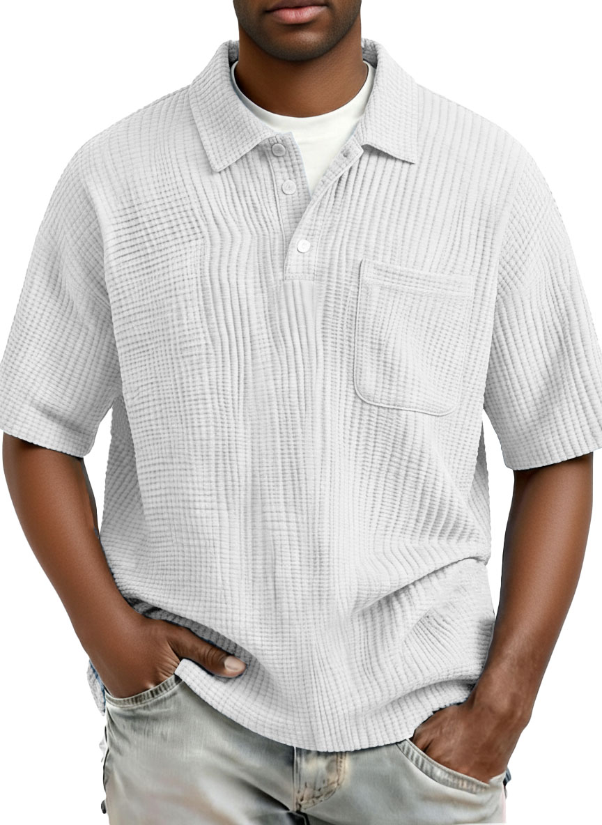 Men's Fashion Casual Pleated Fabric Short-Sleeve Polo Shirt