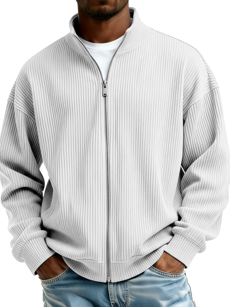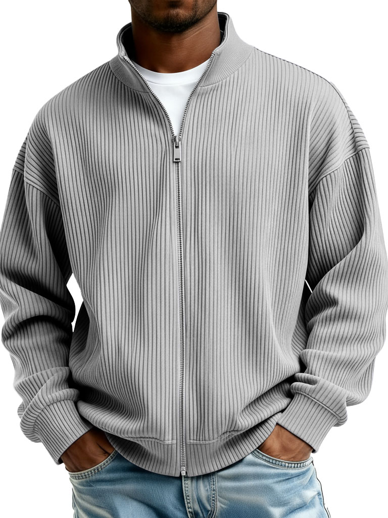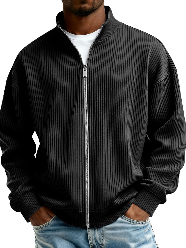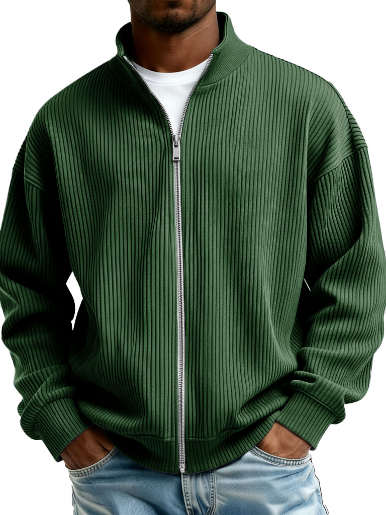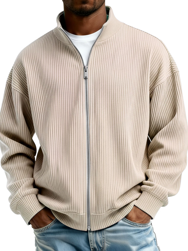 Men's Fashion Casual Stand Collar Ribbed Fabric Long-Sleeve Jacket