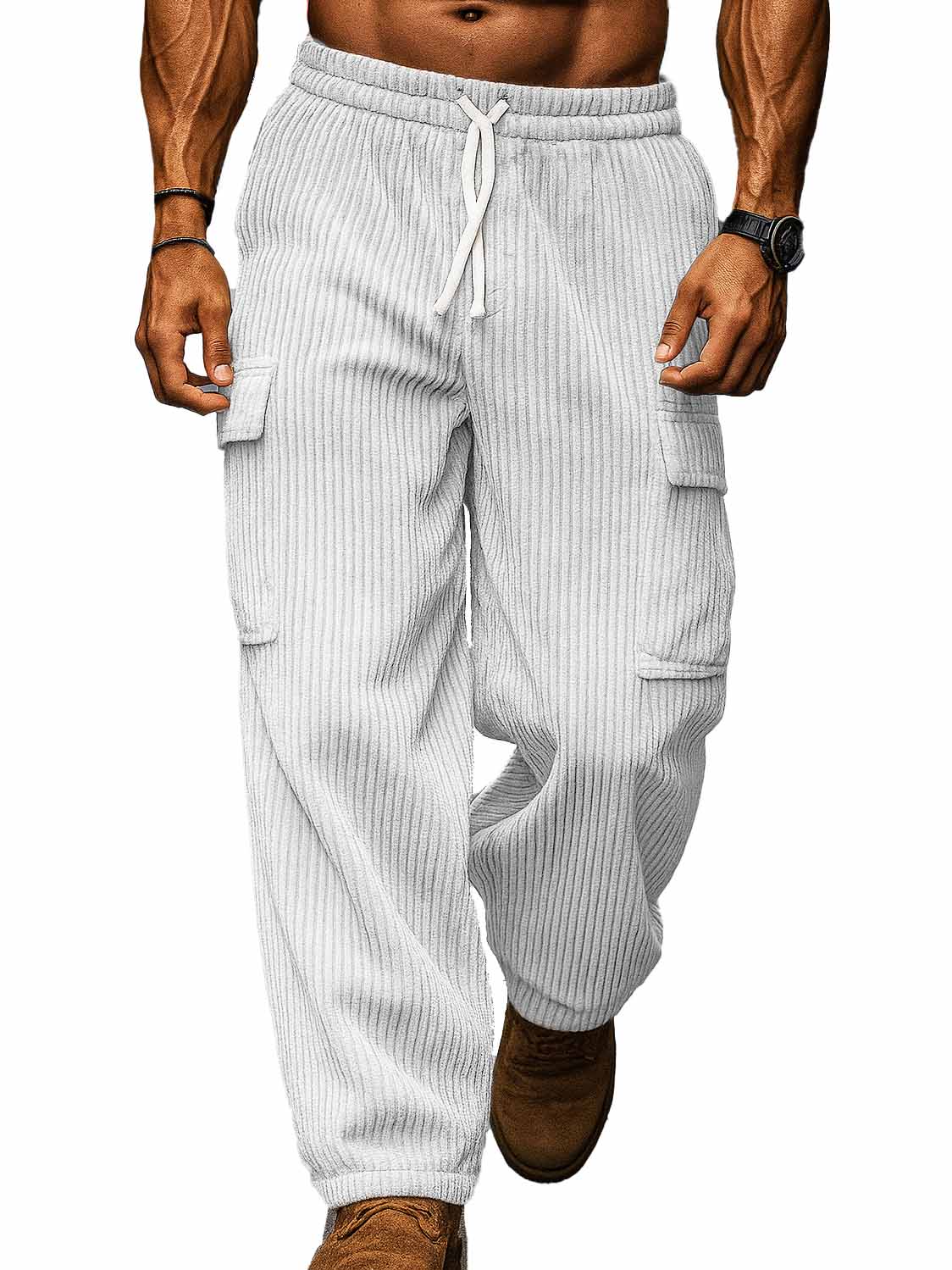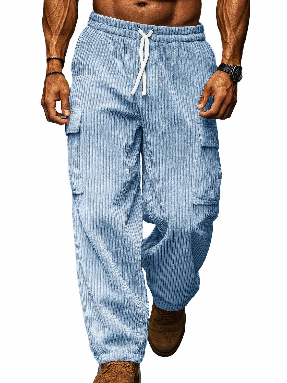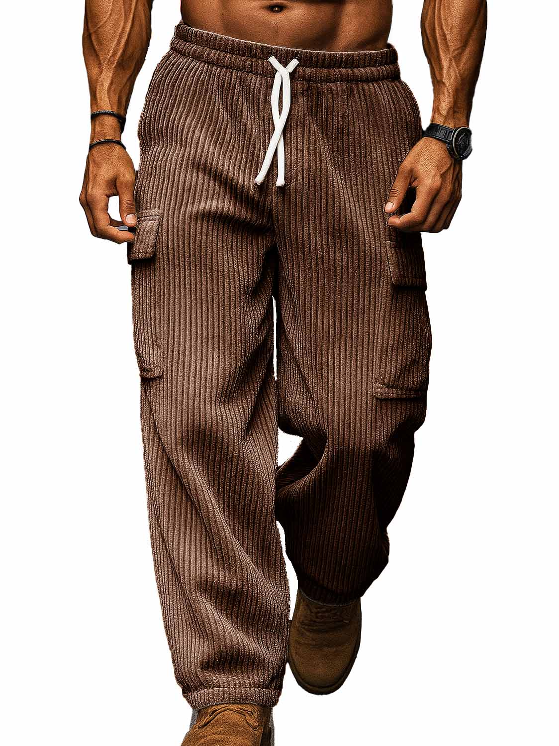 Men's Fashion Casual Workwear Pocket Corduroy Fabric Drawstring Loose Trousers